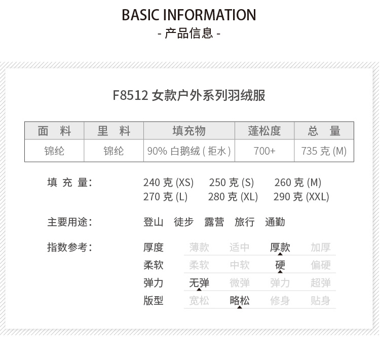 Black Ice Tian Shu Plus down Jacket for Men and Women Tian Xuan F8512 Thickened White Goose down Warm down Jacket Ultra-Light F8509