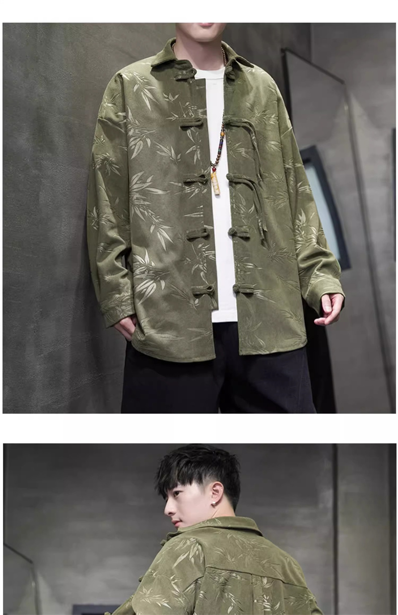 Aymelon New Chinese Style Trendy Corduroy Shirt for Men, Spring and Autumn Loose Fit, Large Size, Cool and Stylish Shirt Jacket
