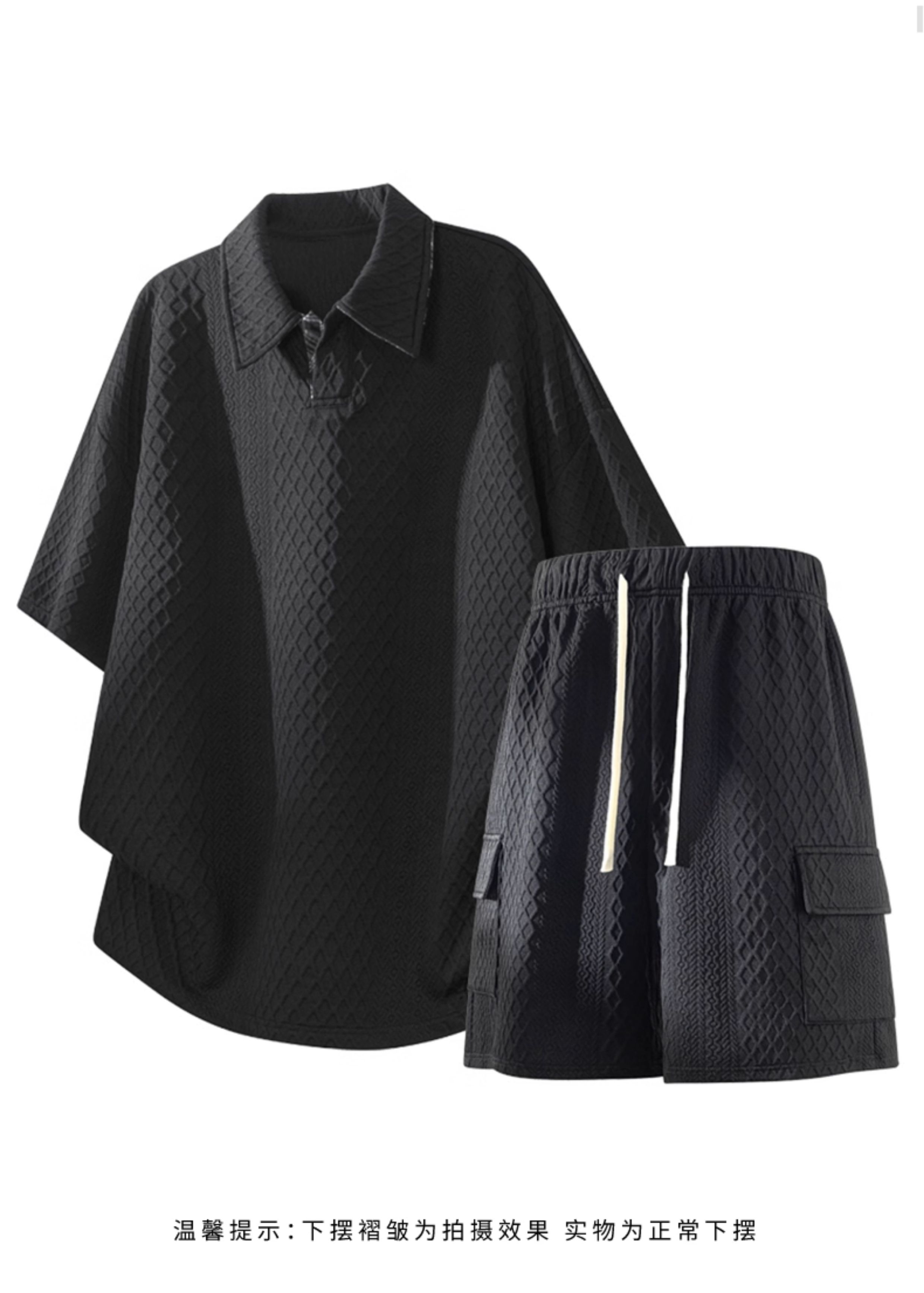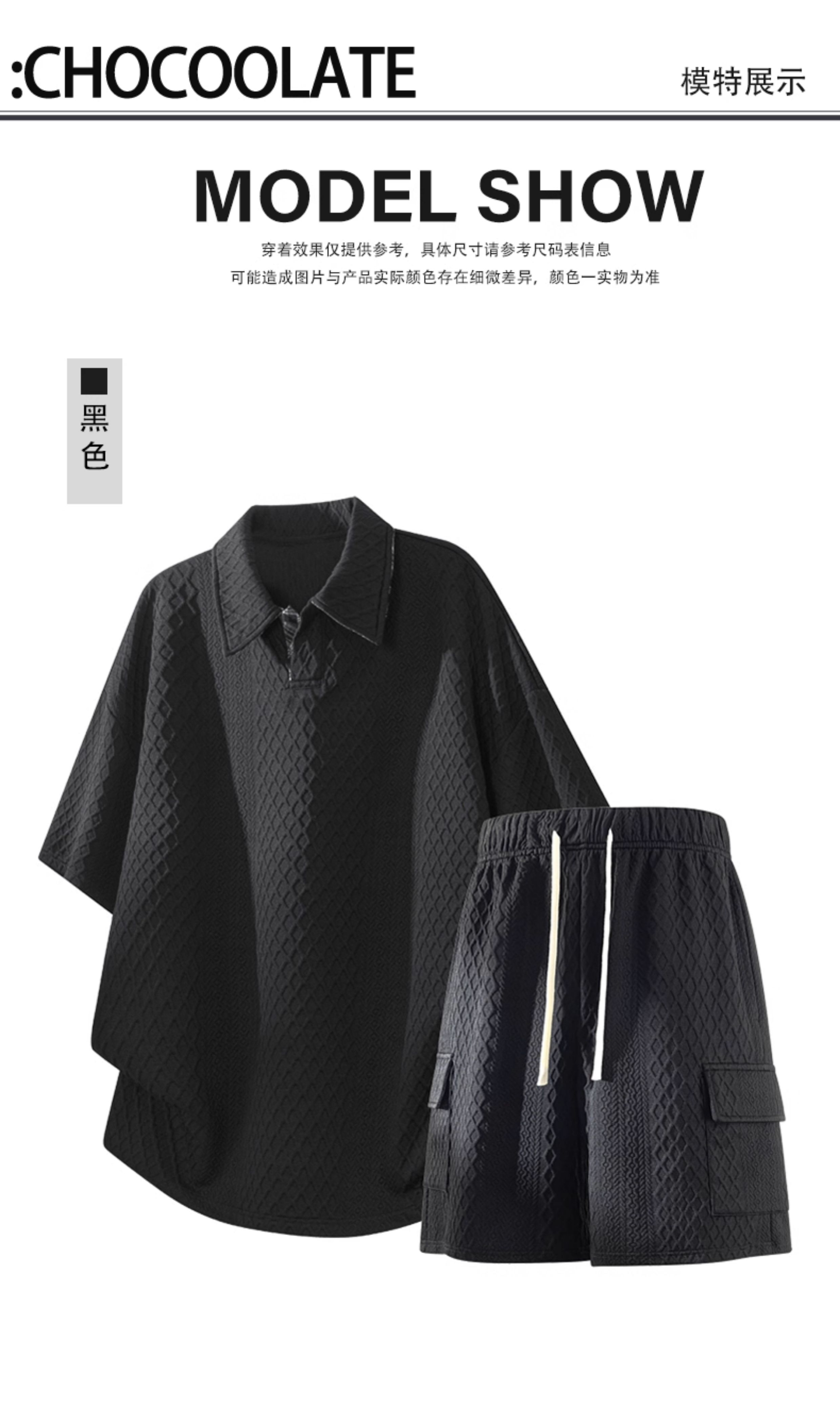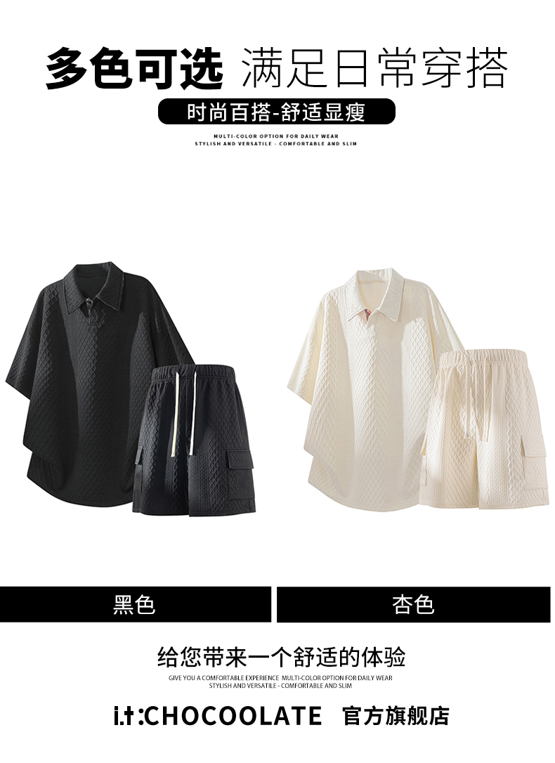 It:Chocoolate Waffle Short-Sleeved Shorts Set Men's Summer Sports and Leisure Men's Clothing Polo Shirt T-Shirt