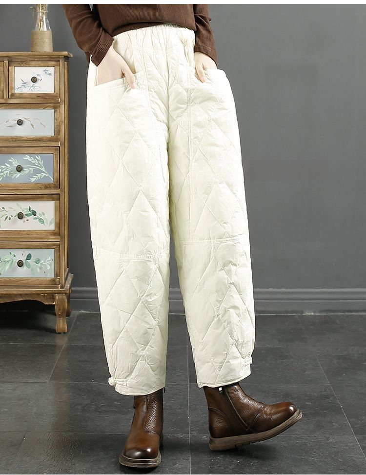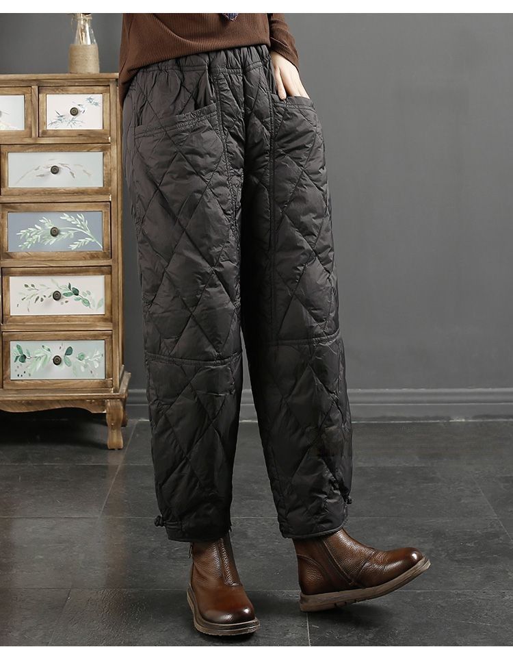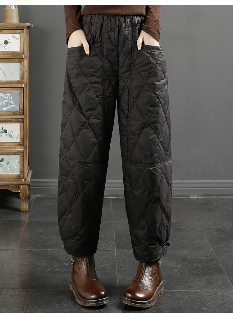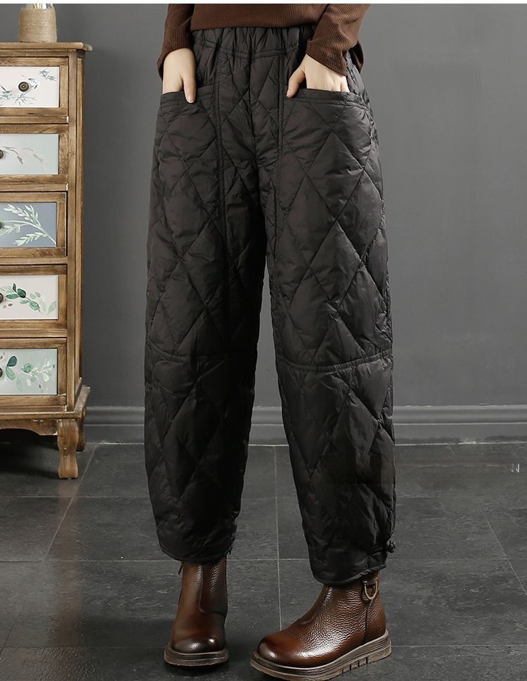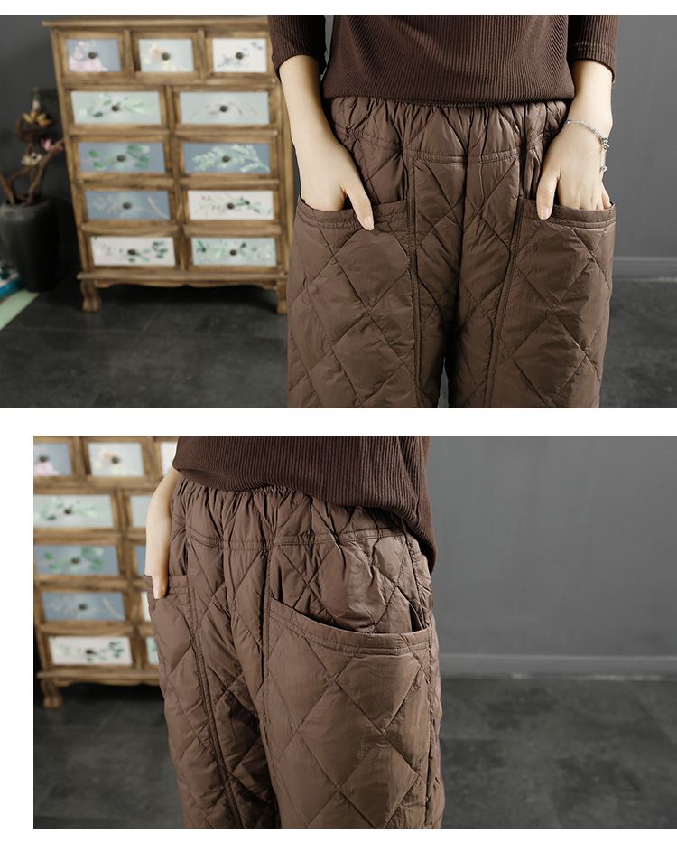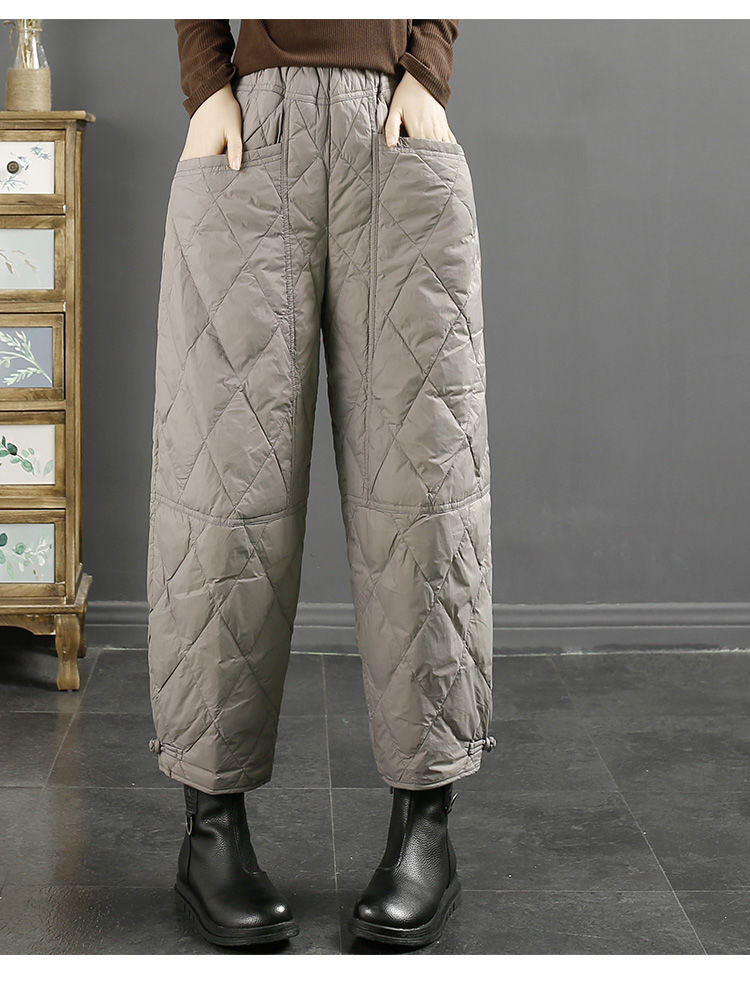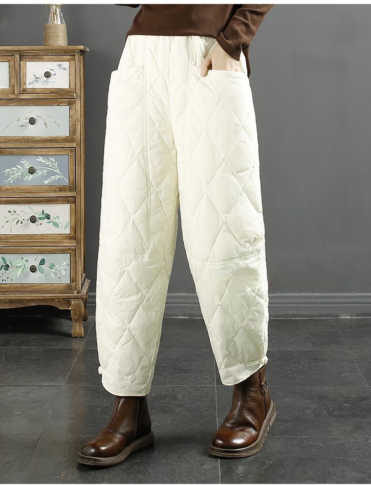 2025 Winter New Artistic Retro Solid Color Quilted Fashion Cotton Pants Windproof Warm Thickened Loose Casual Pants for Women