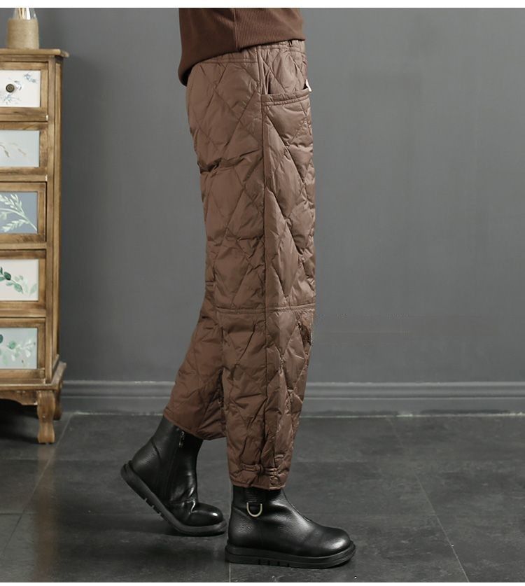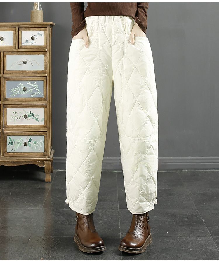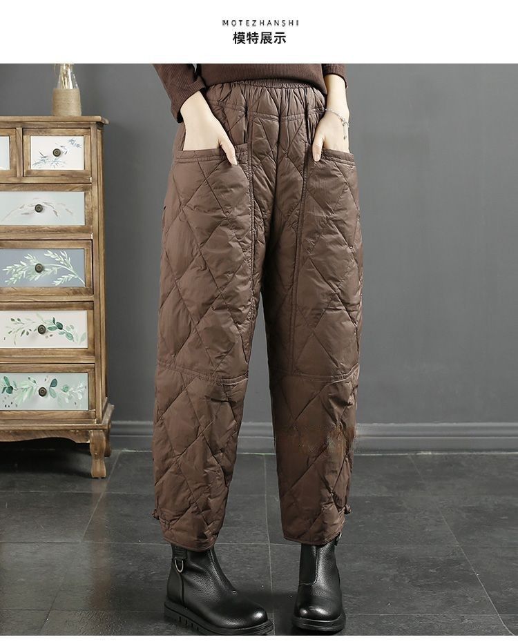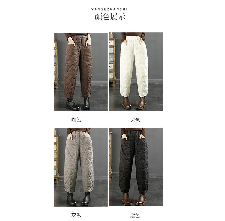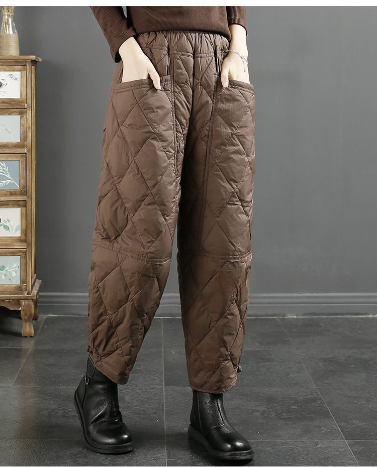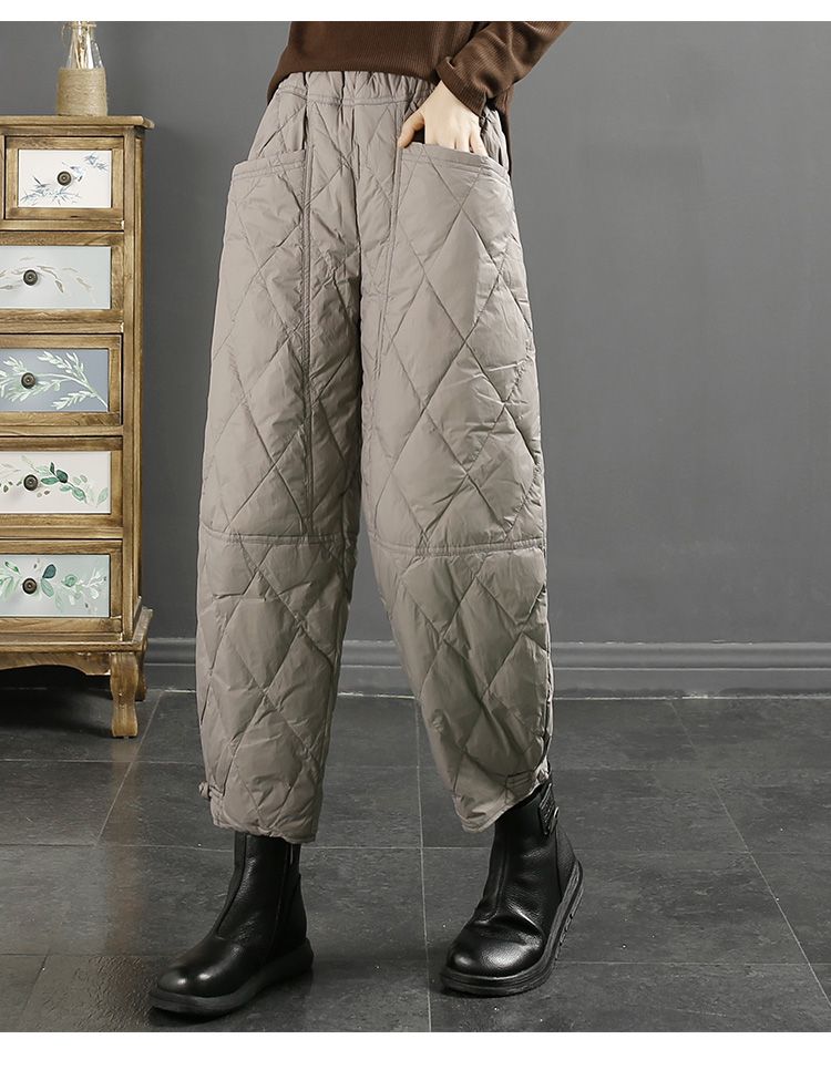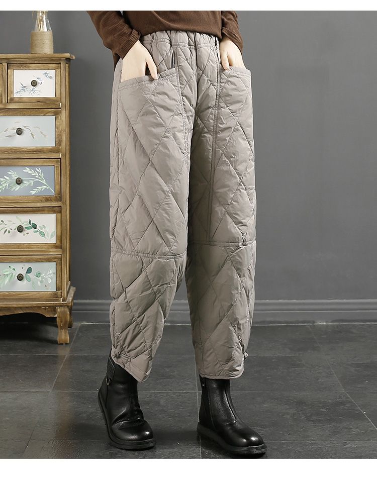 2025 Winter New Artistic Retro Solid Color Quilted Fashion Cotton Pants Windproof Warm Thickened Loose Casual Pants for Women