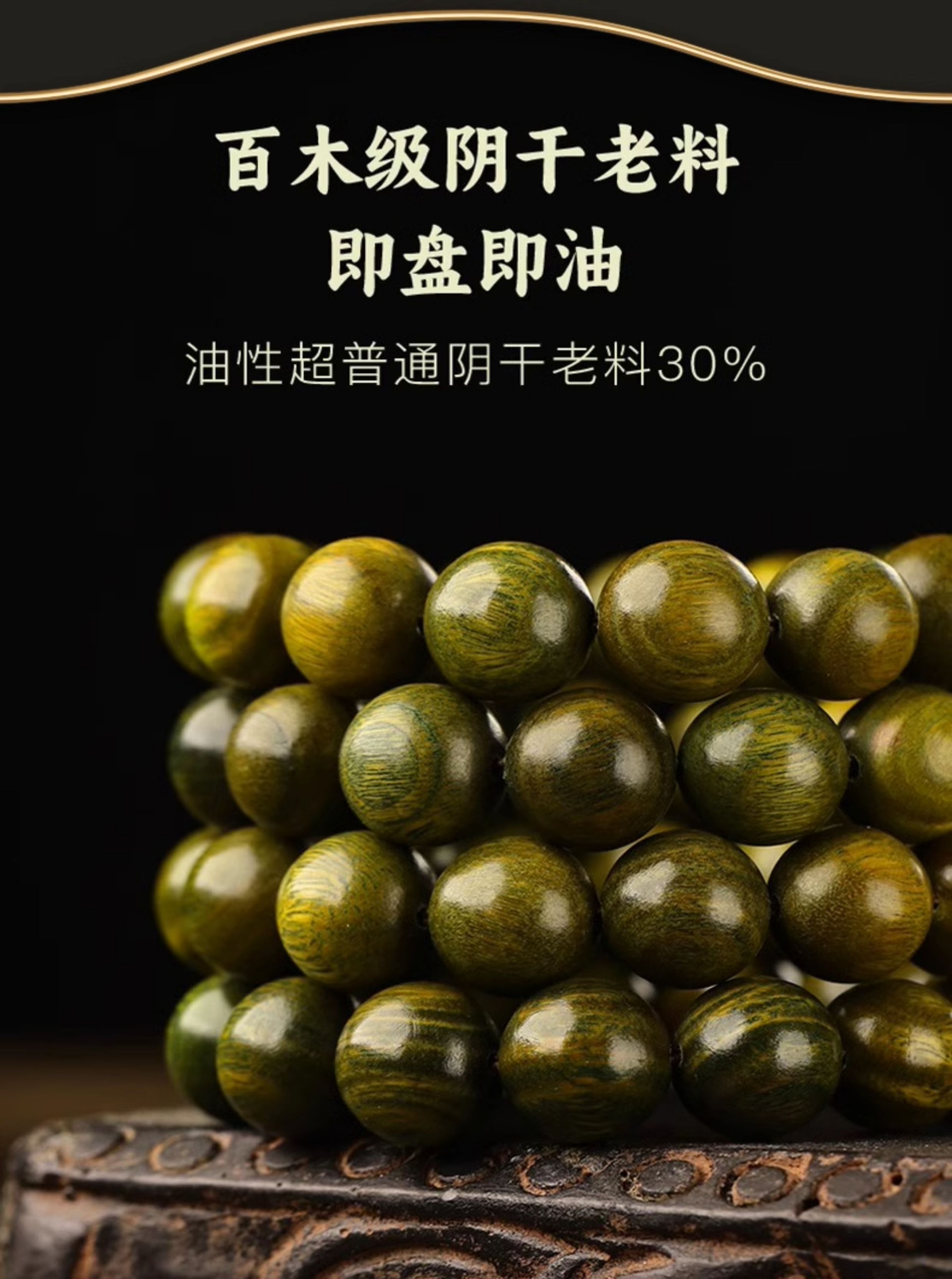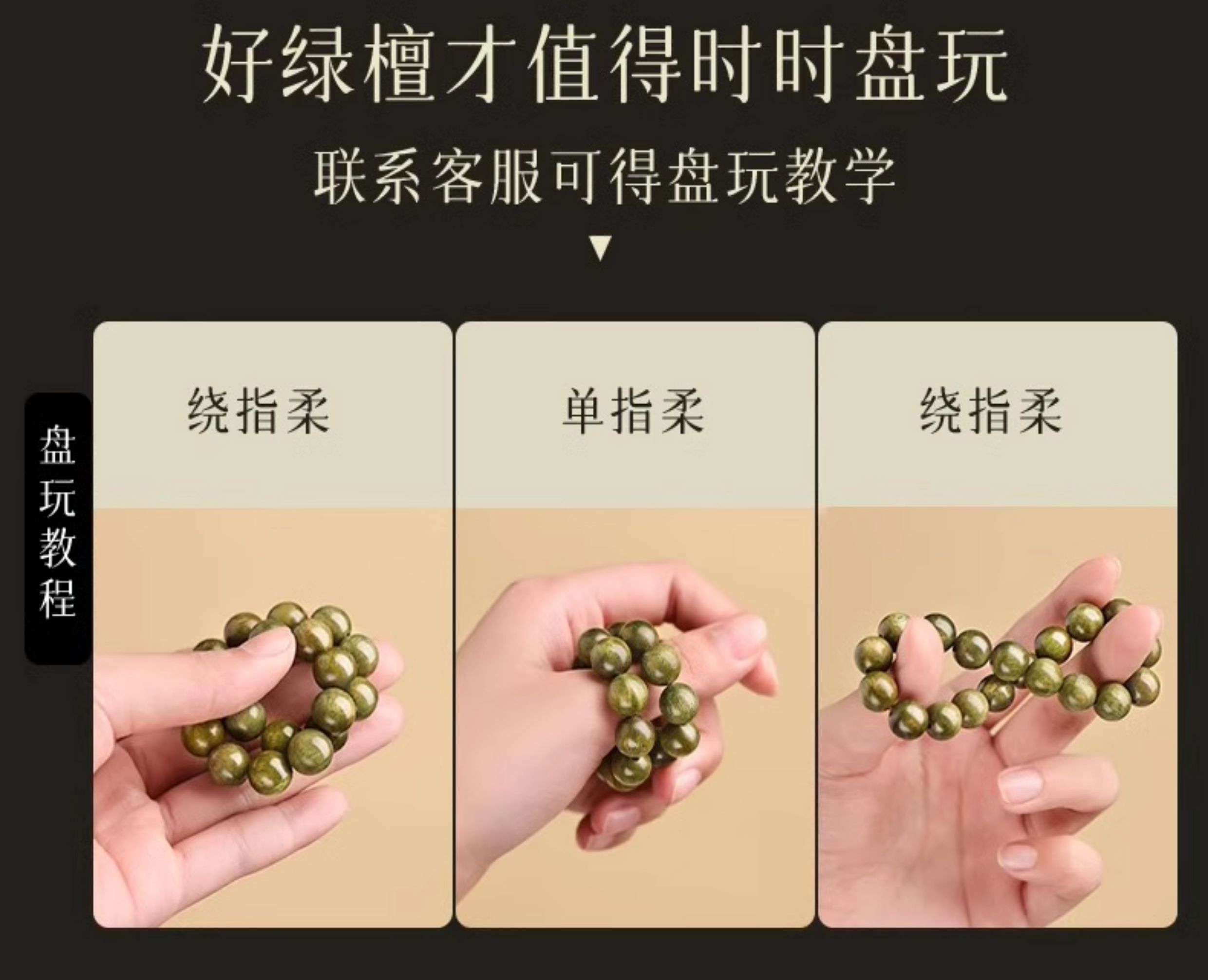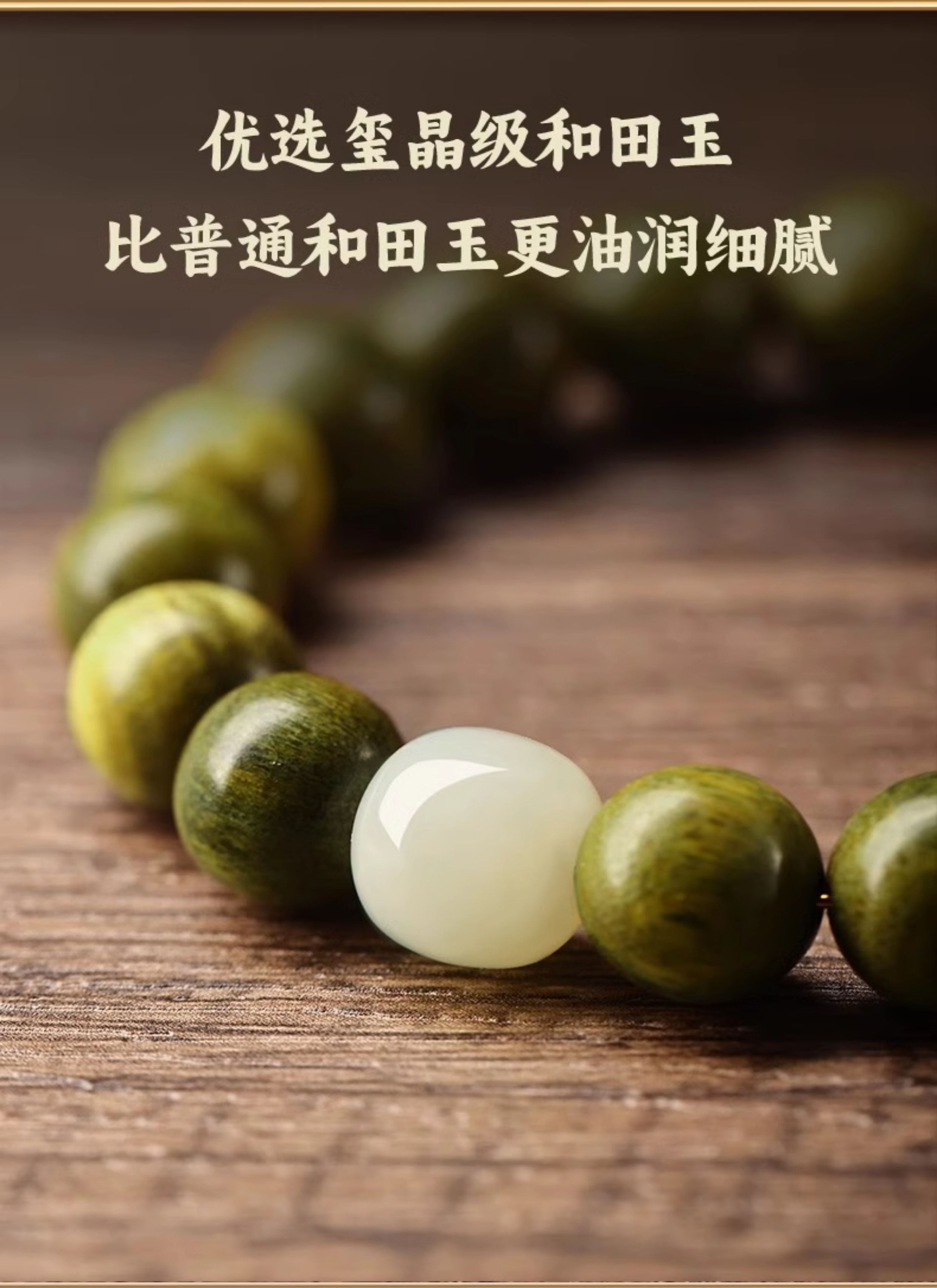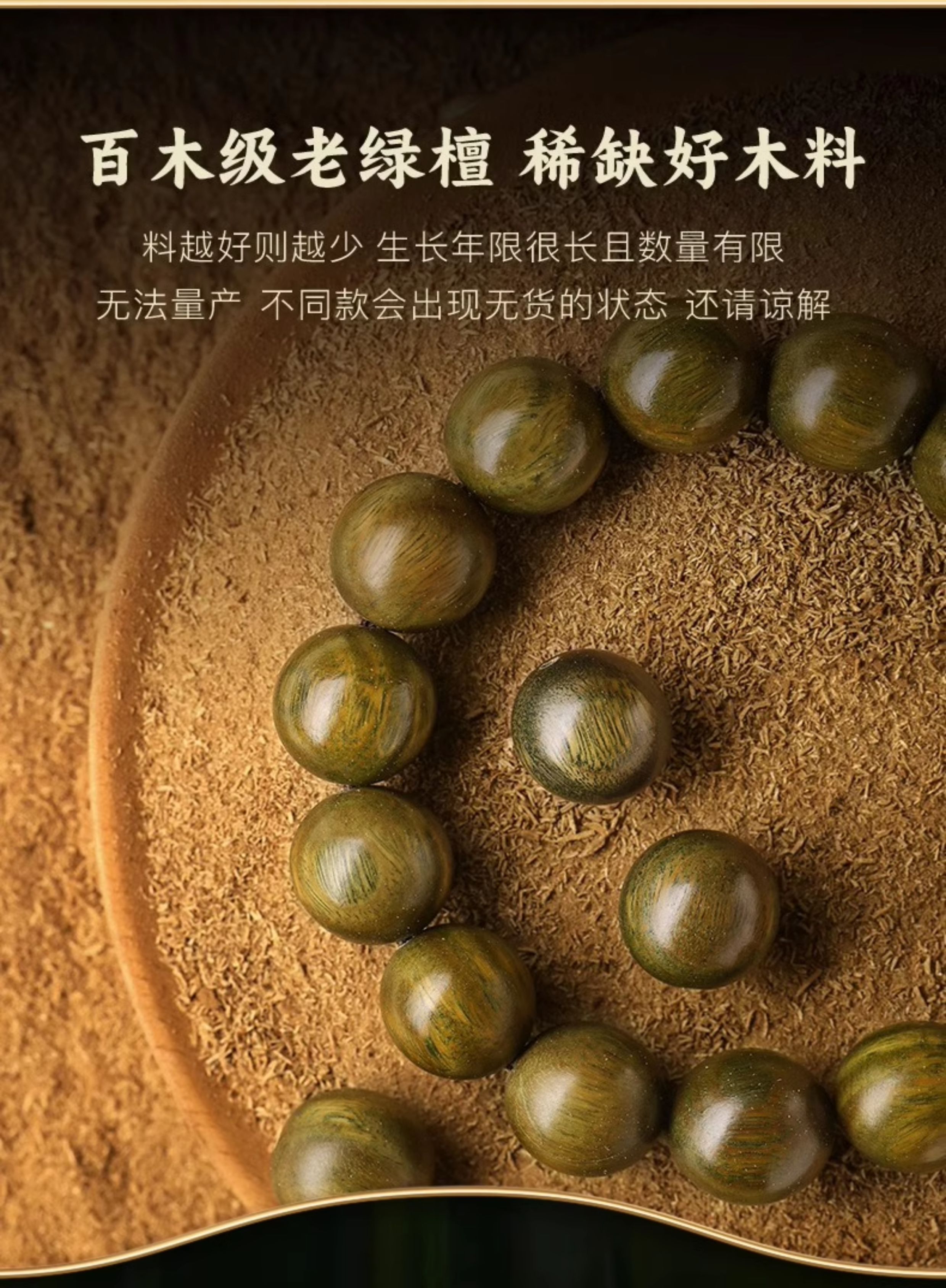 Putuo Mountain Natural Green Sandalwood Bracelet for Women, Sandalwood Beads for Play, Buddhist Prayer Beads, New Chinese Style National Poetry