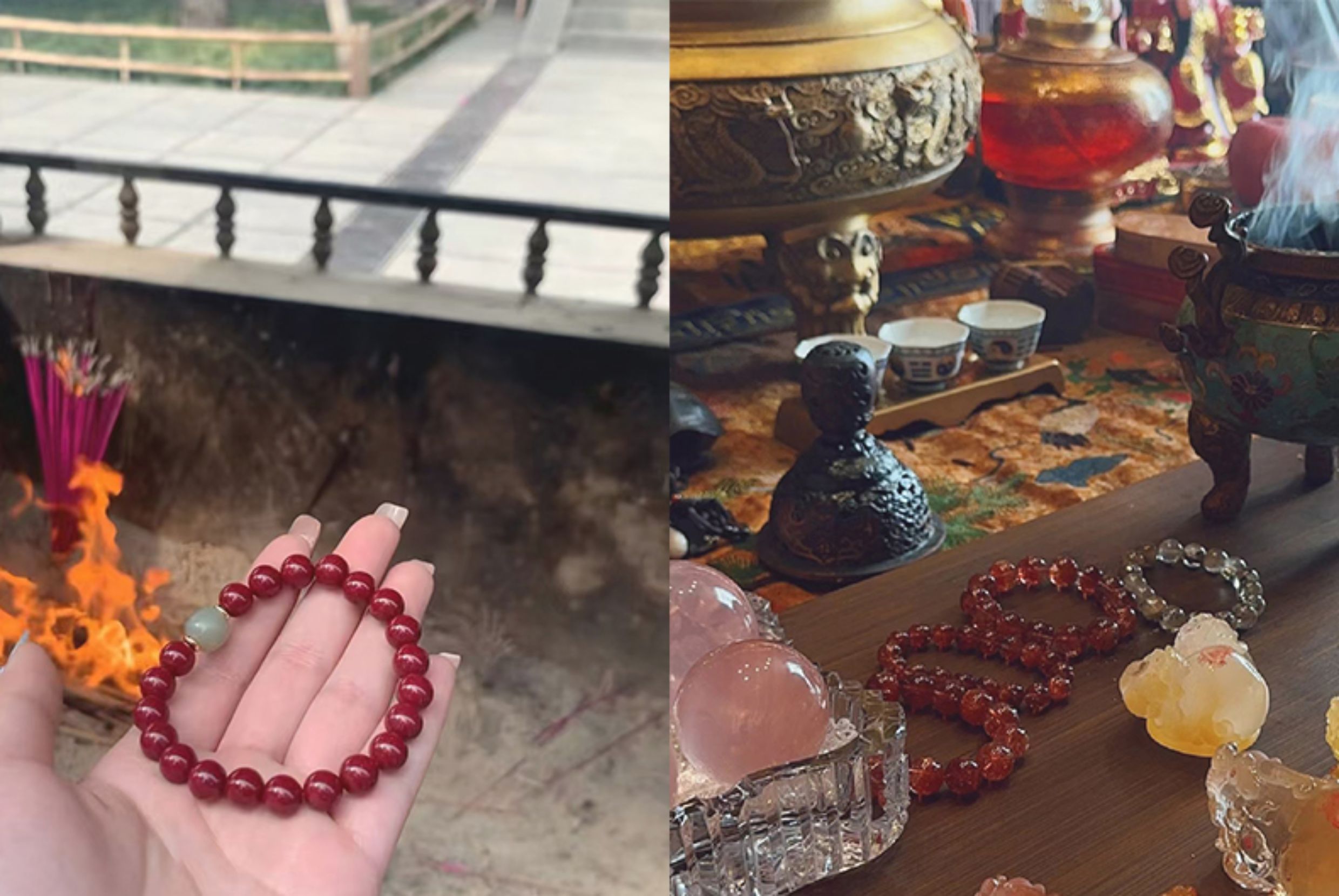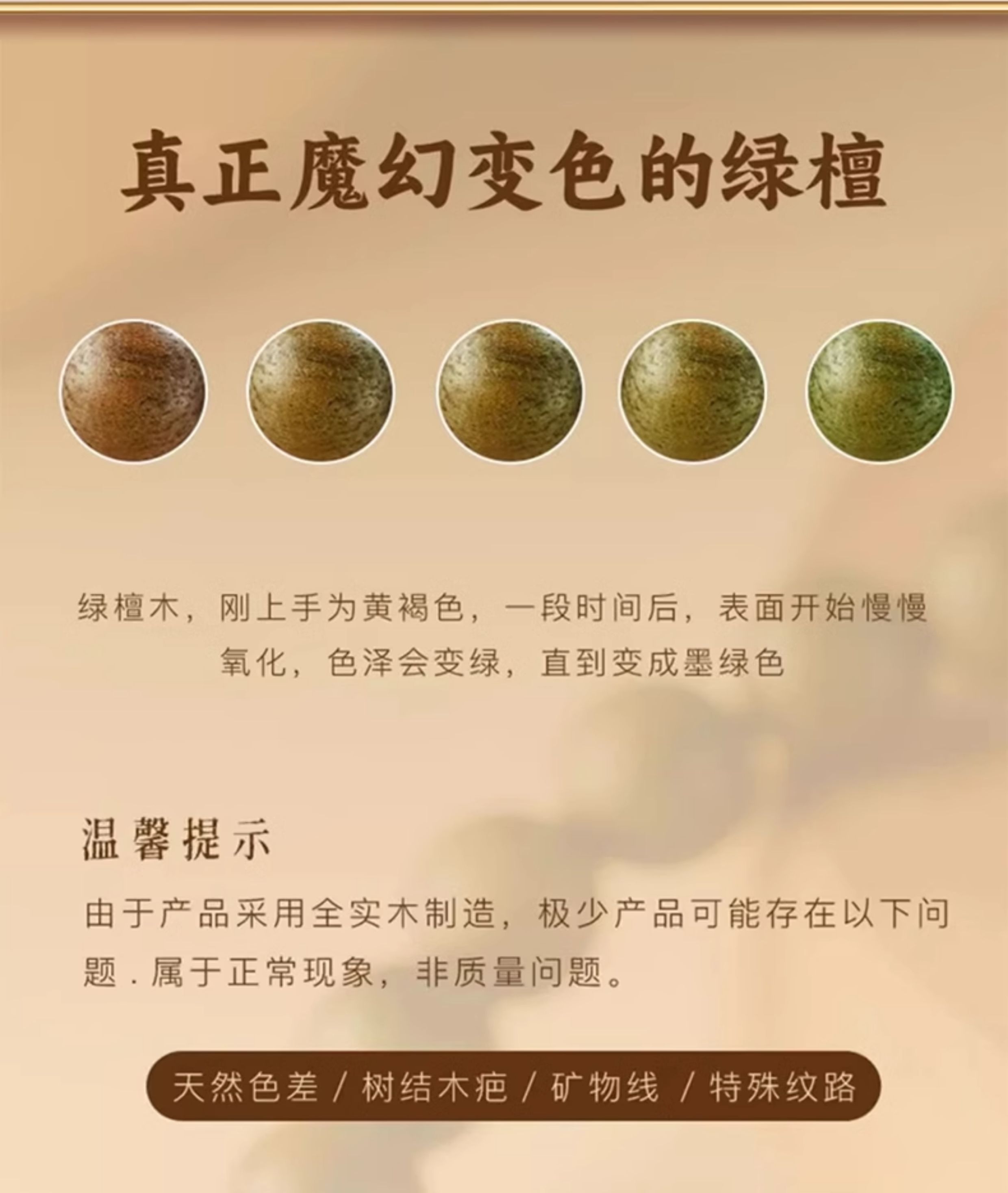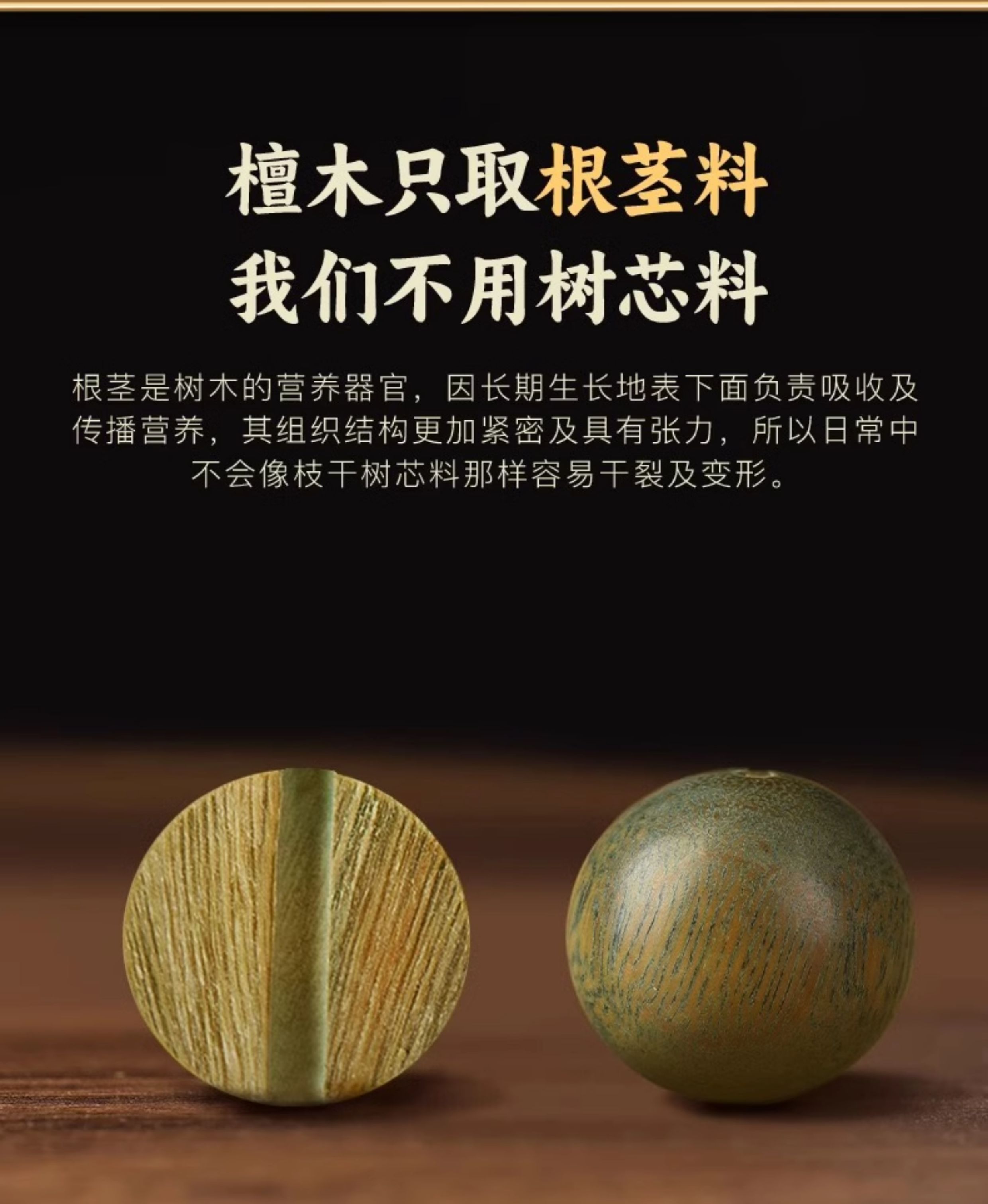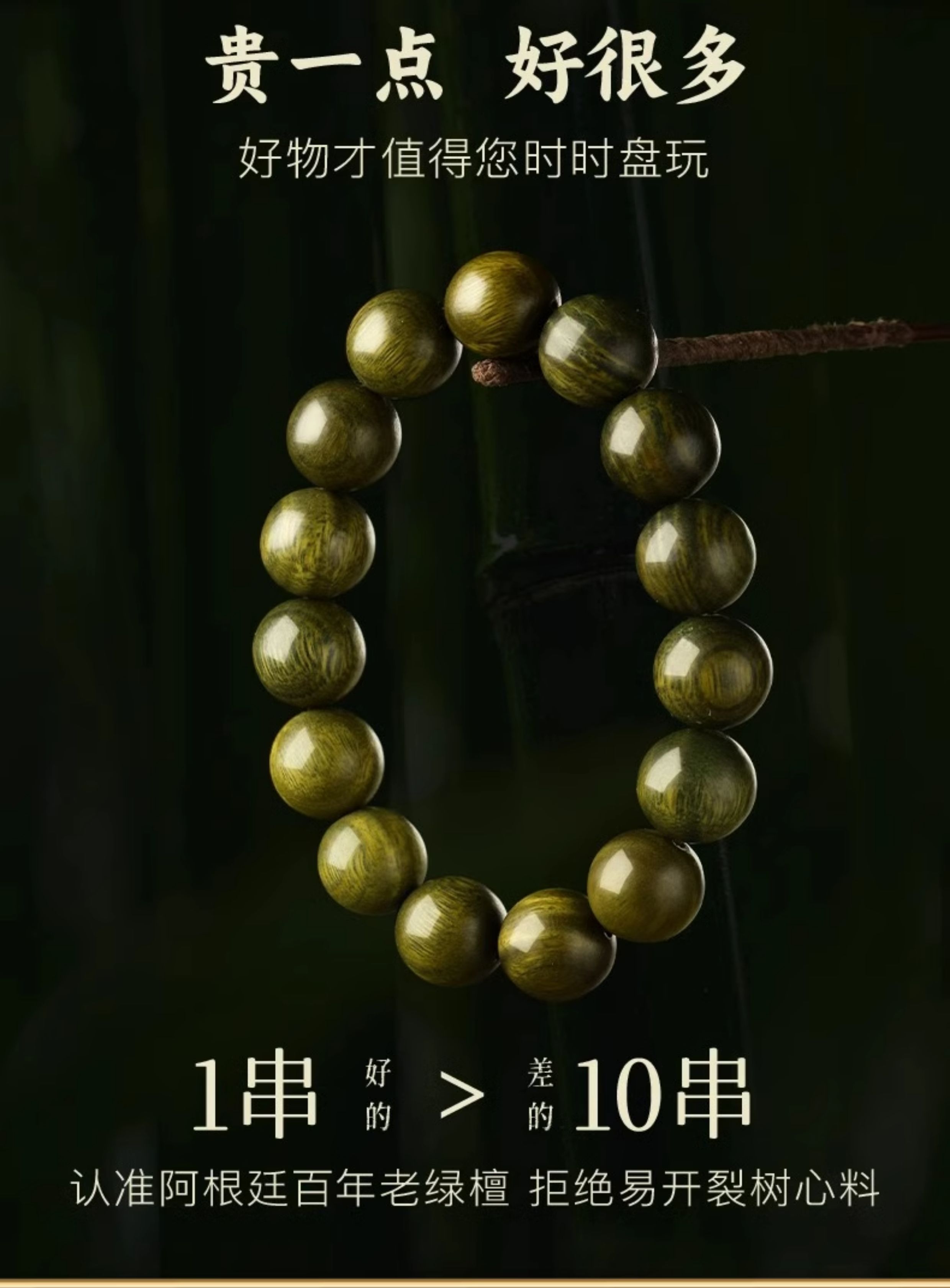 Putuo Mountain Natural Green Sandalwood Bracelet for Women, Sandalwood Beads for Play, Buddhist Prayer Beads, New Chinese Style National Poetry
