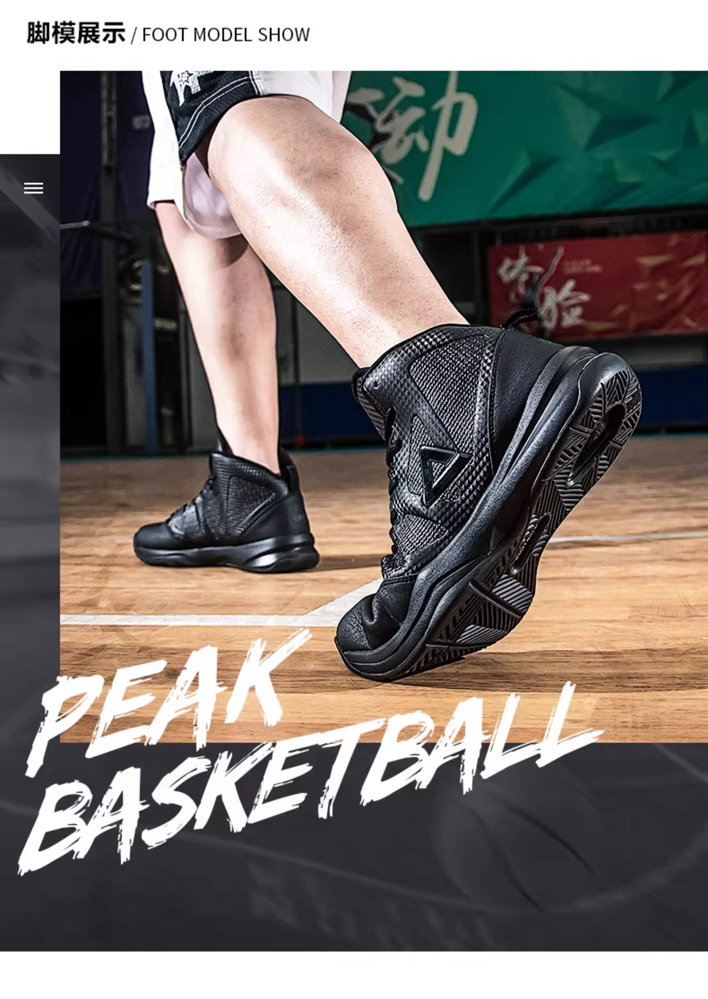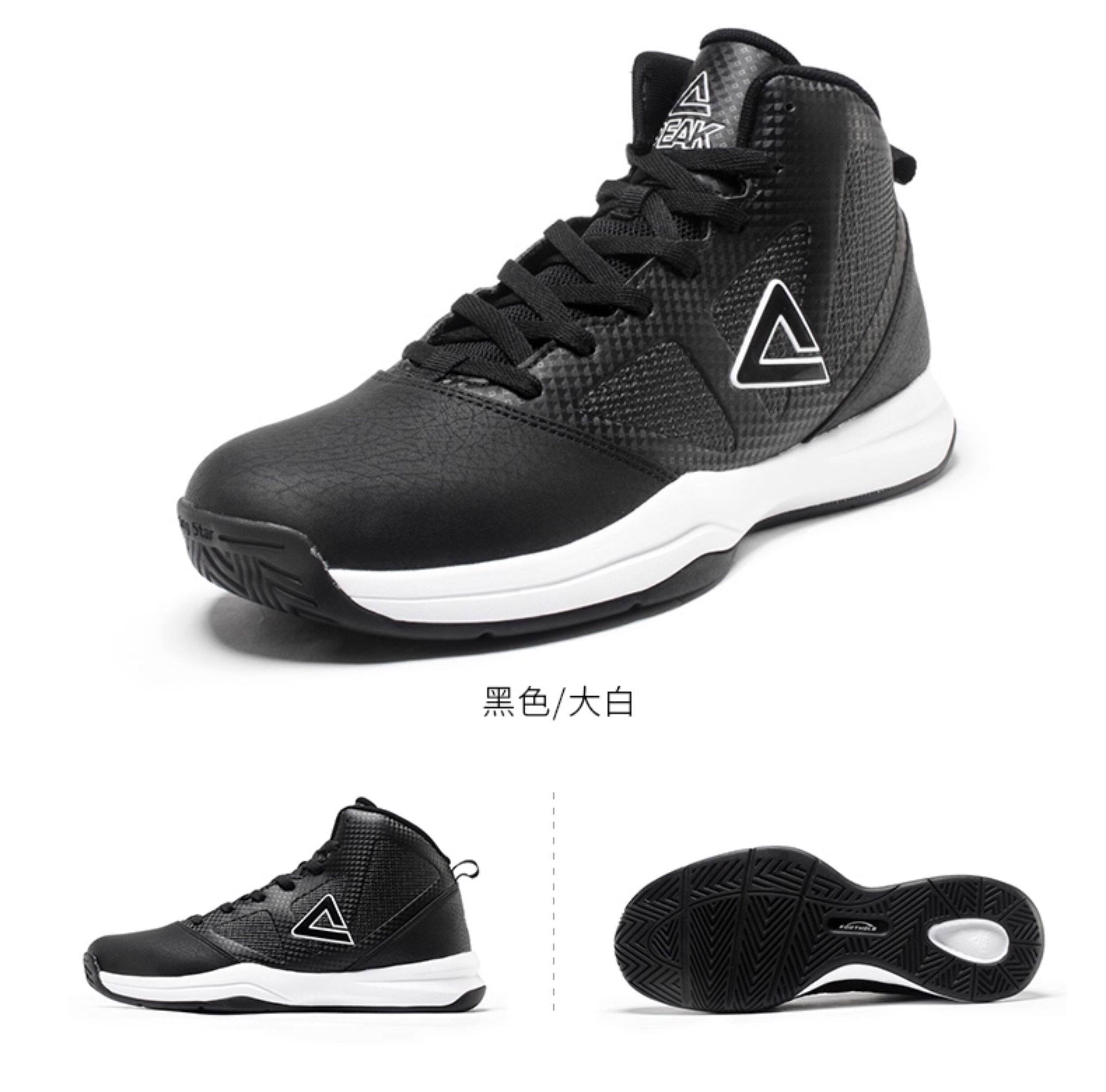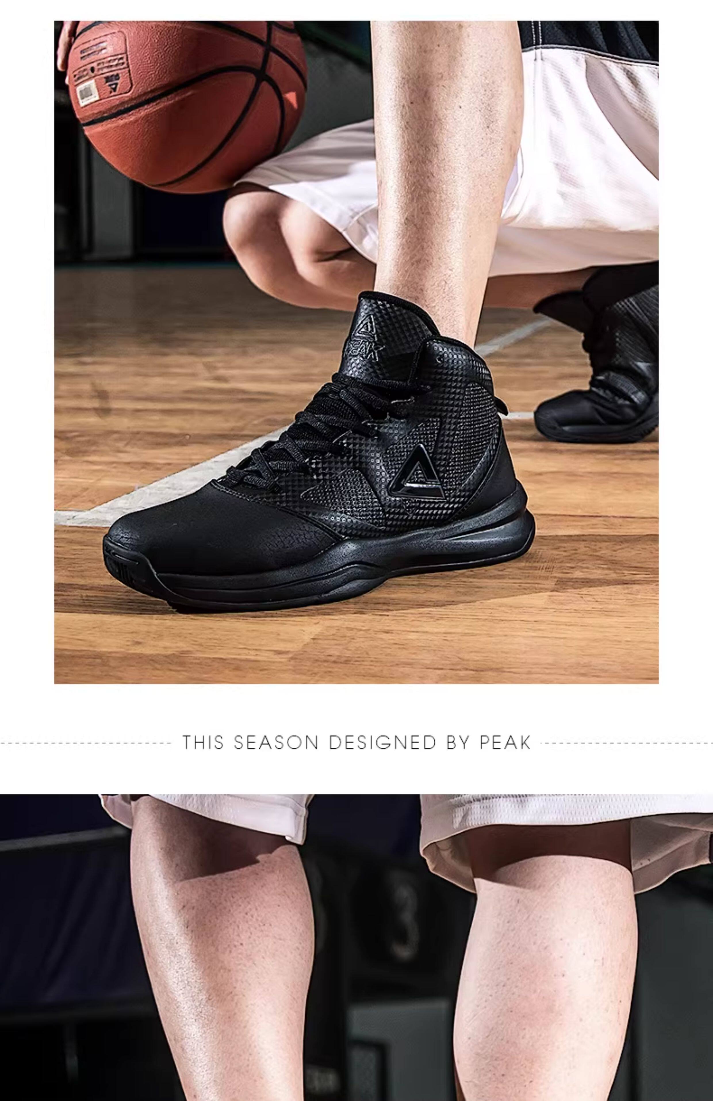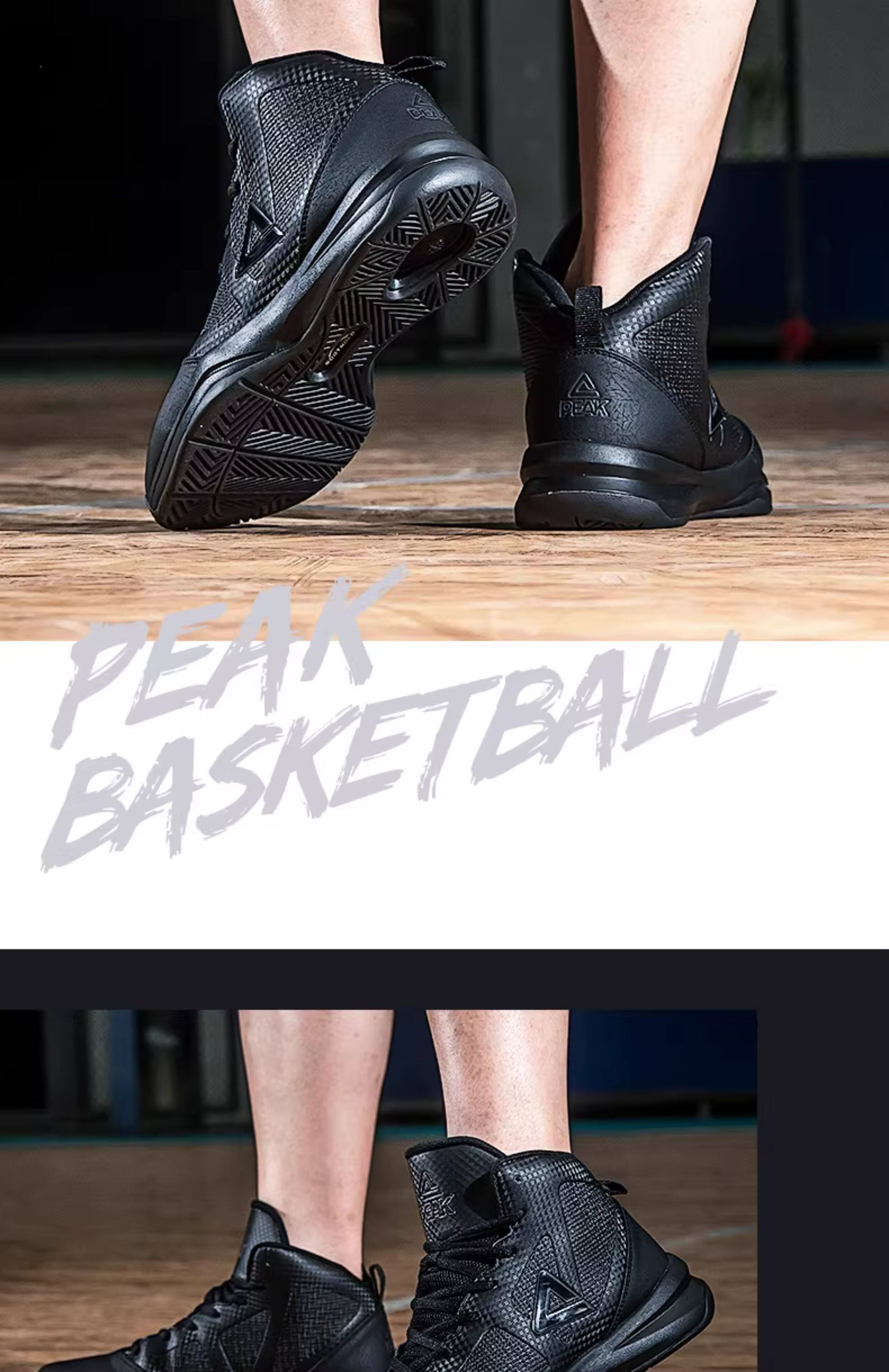 Peak Basketball Shoes Men's Official Flagship Black Leather High-Top Wear-Resistant Sneakers Outdoor Actual Combat Sports Shoes for Men