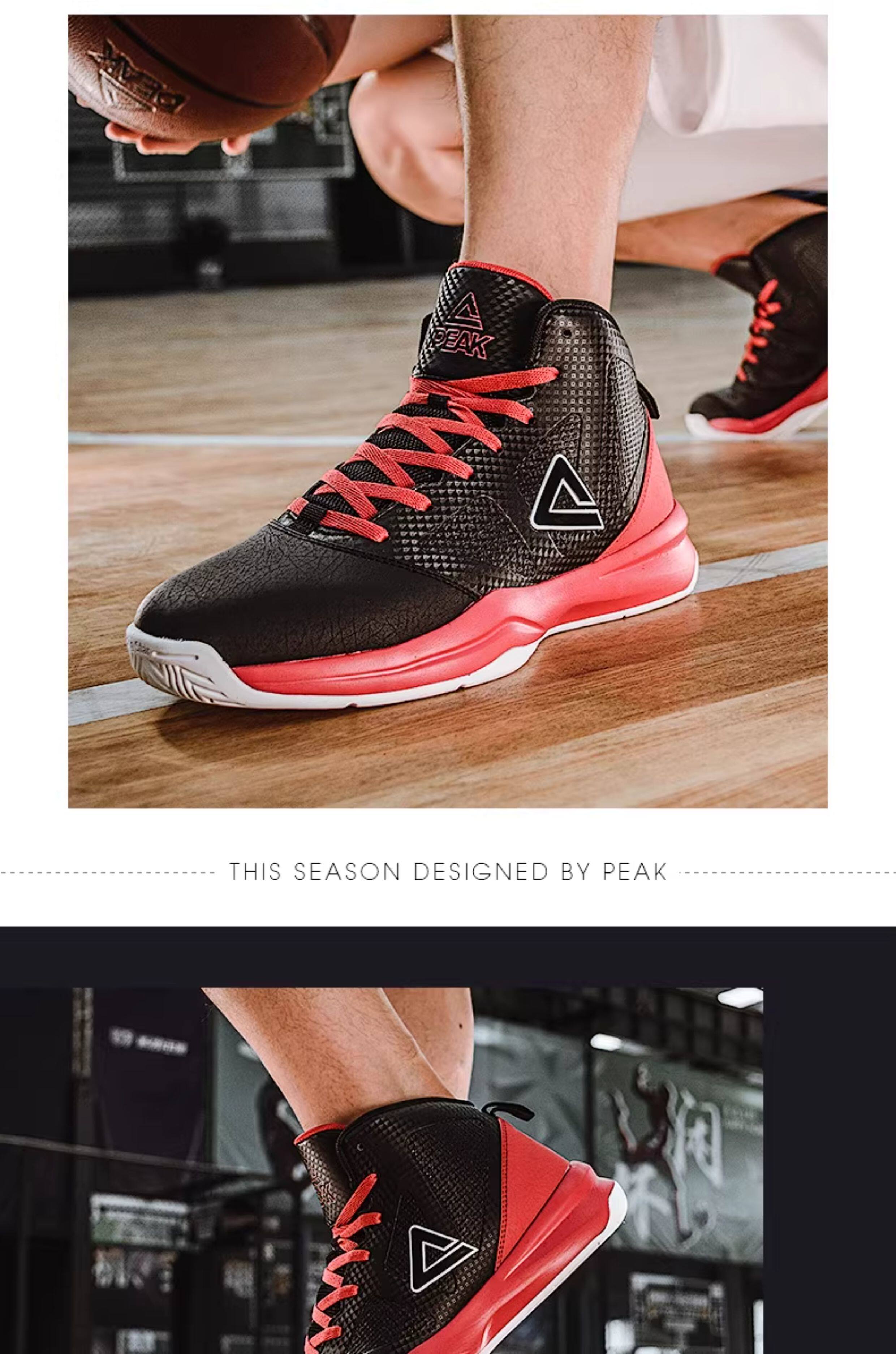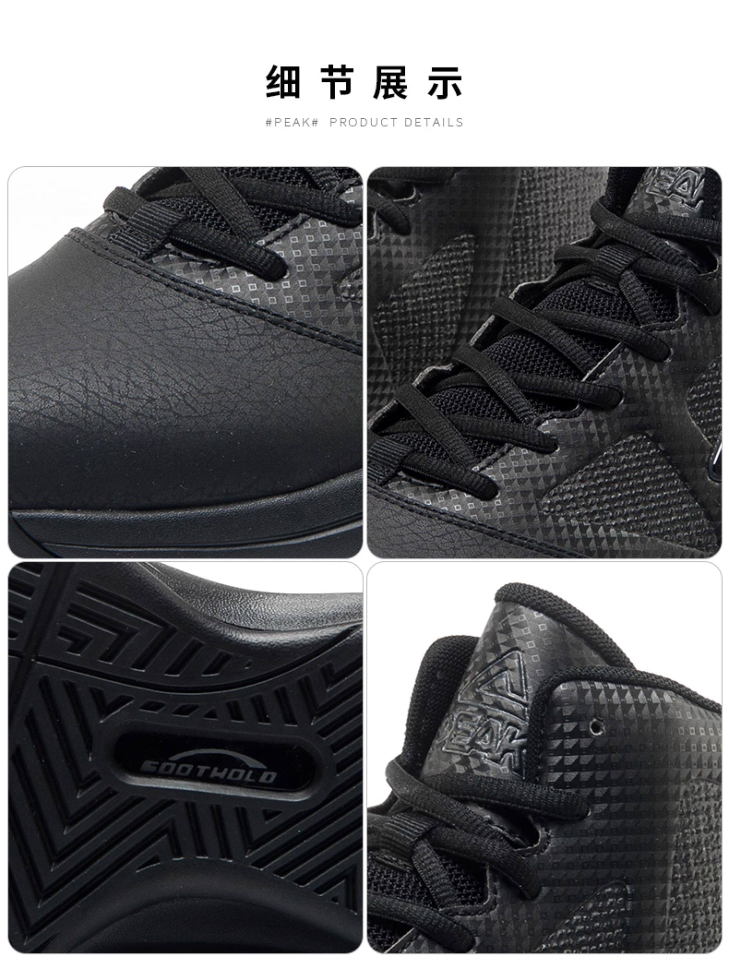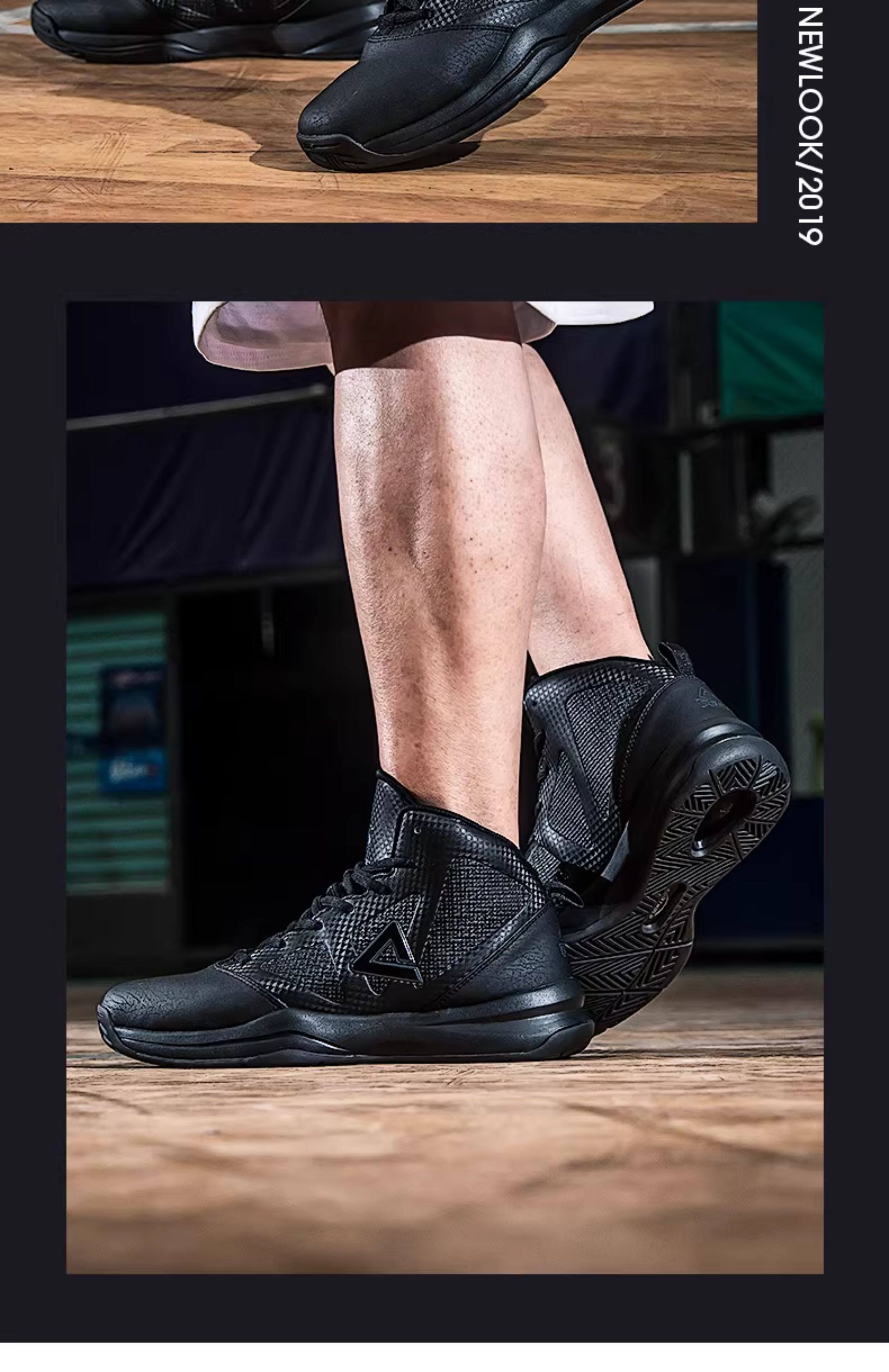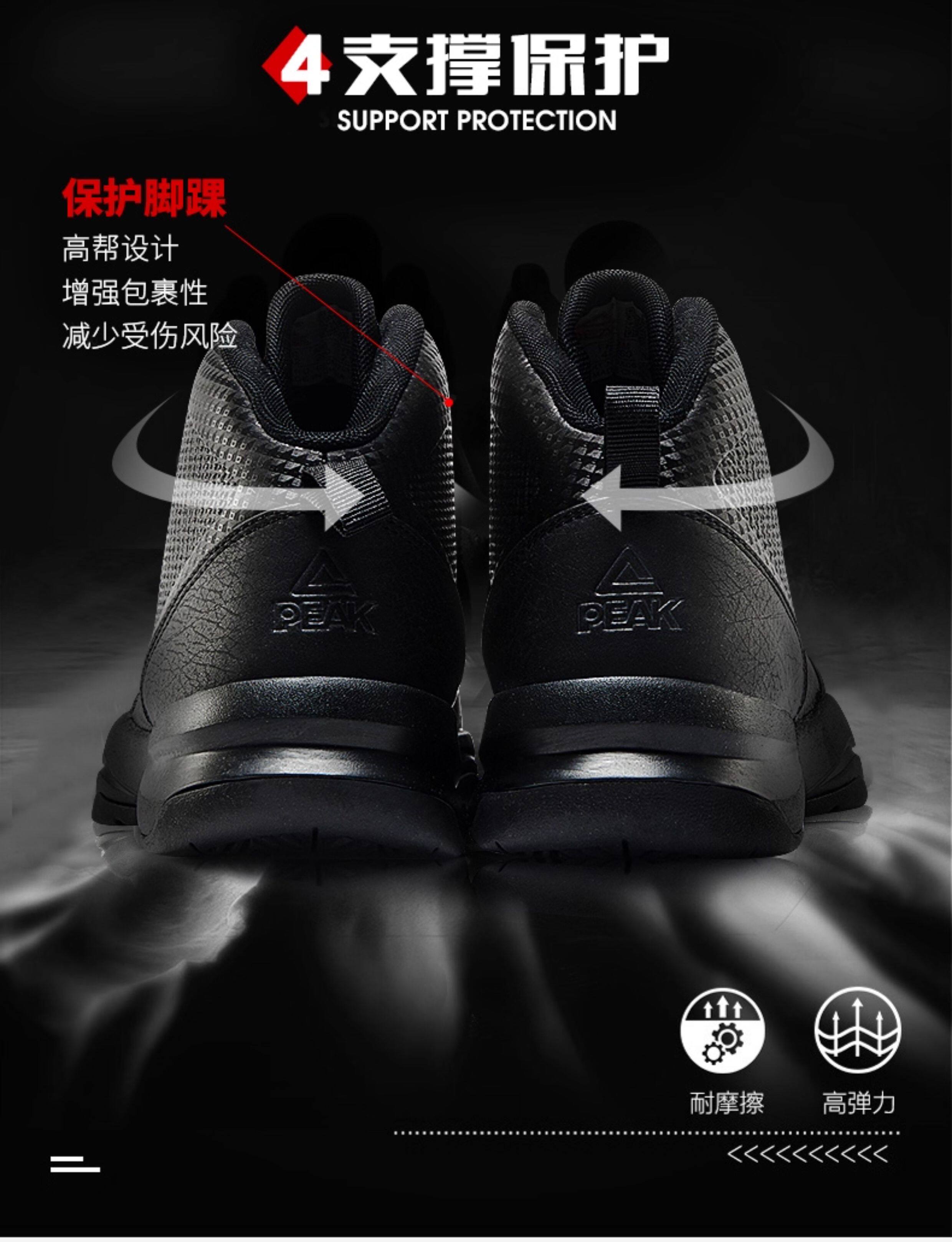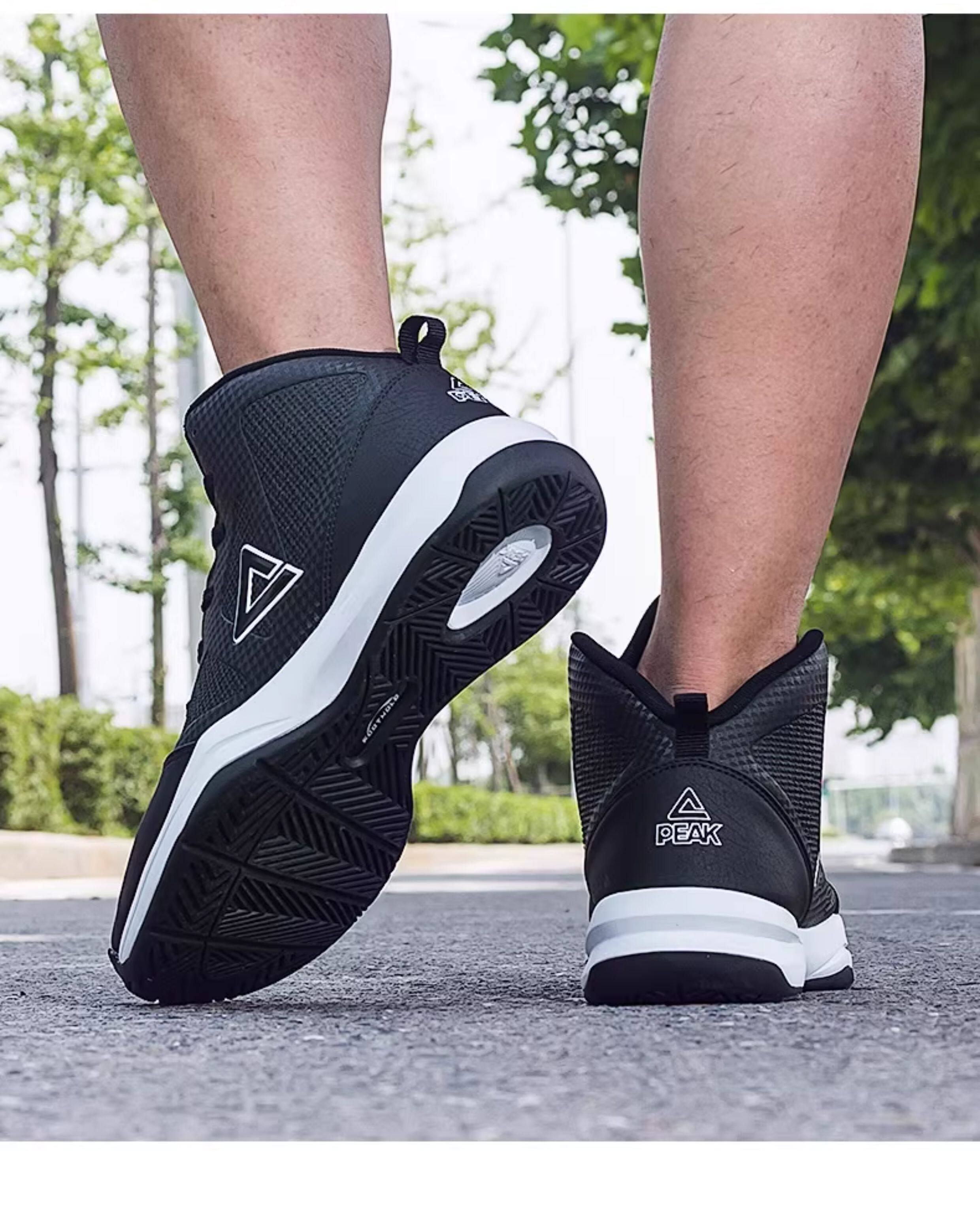 Peak Basketball Shoes Men's Official Flagship Black Leather High-Top Wear-Resistant Sneakers Outdoor Actual Combat Sports Shoes for Men
