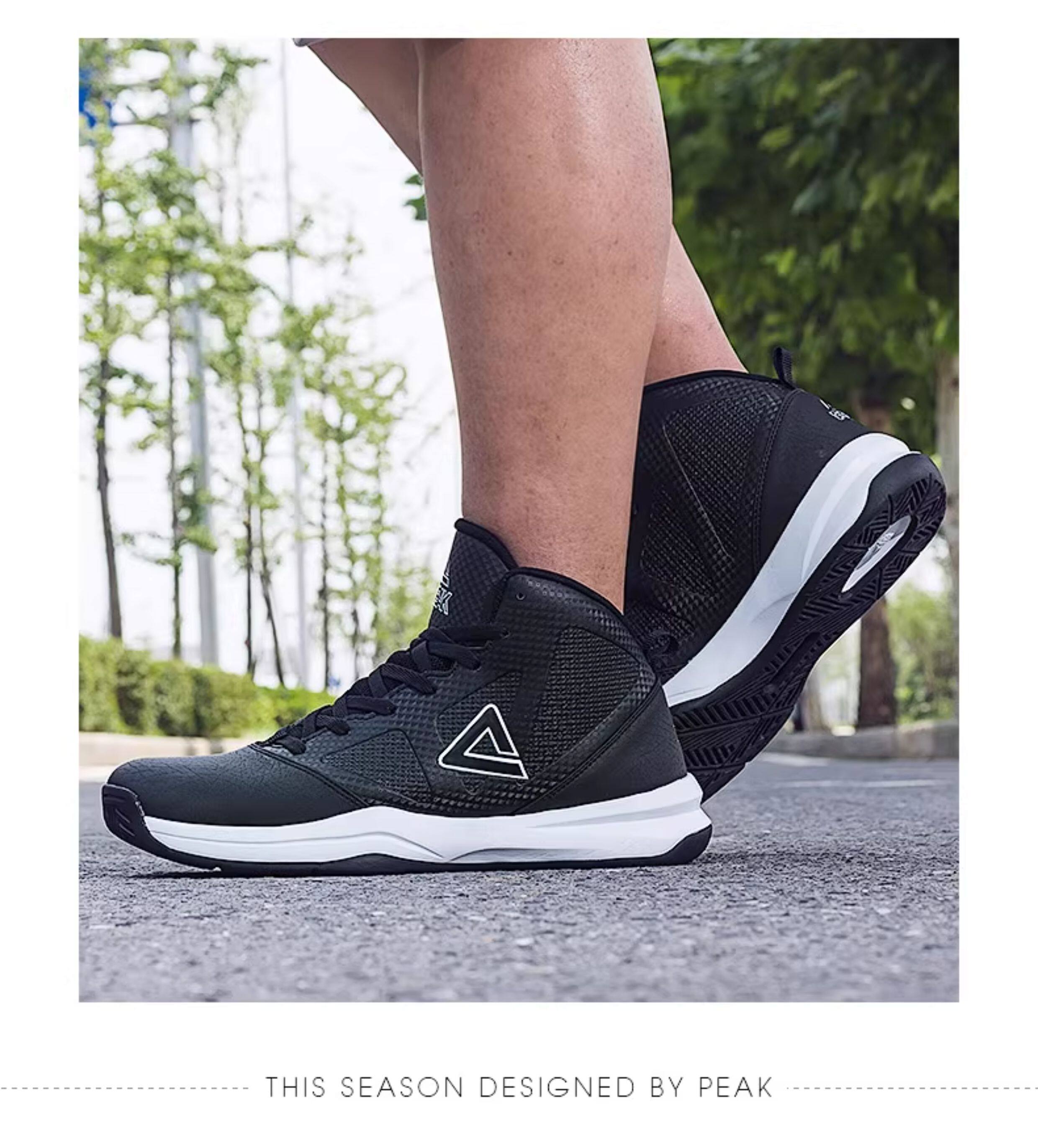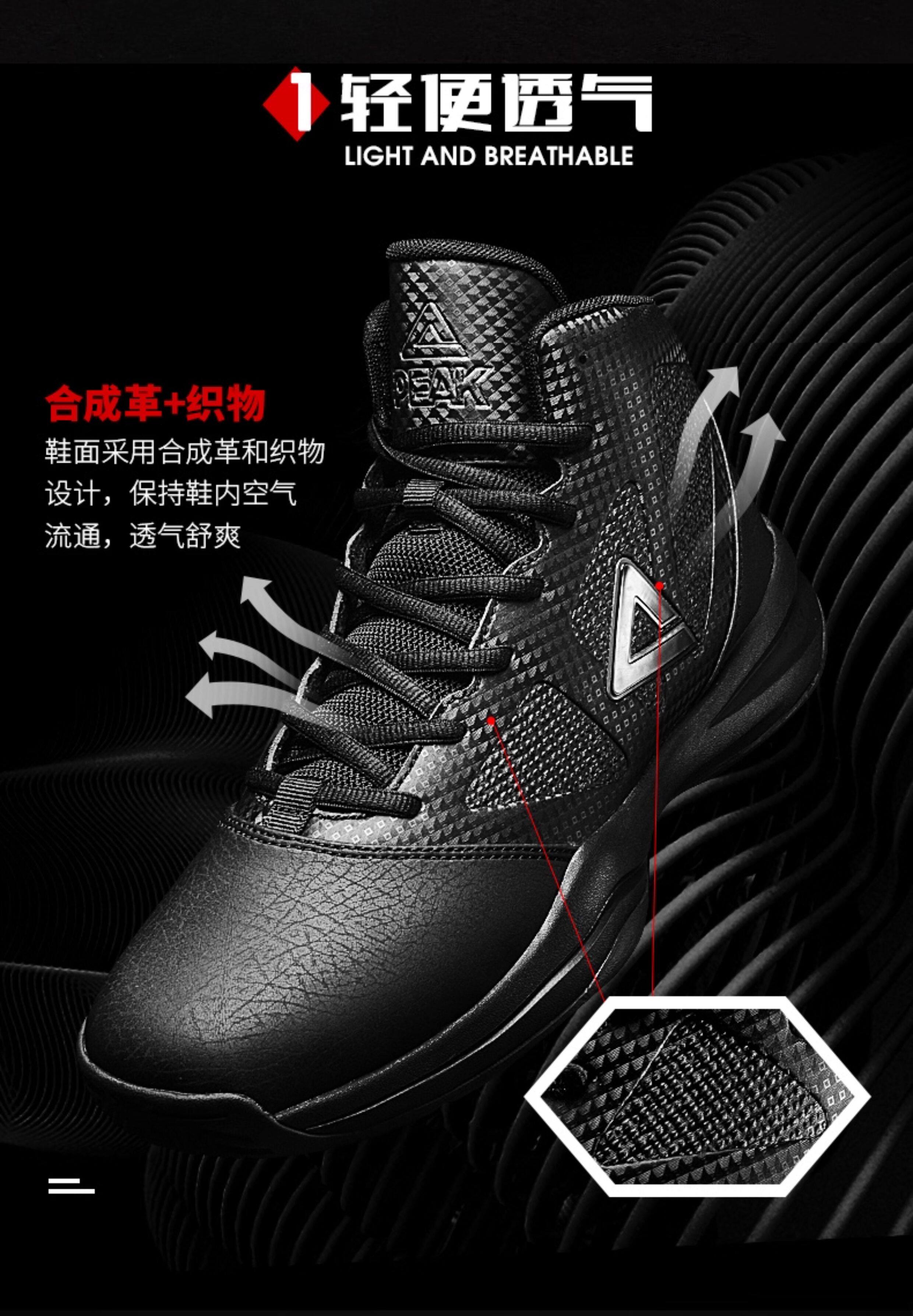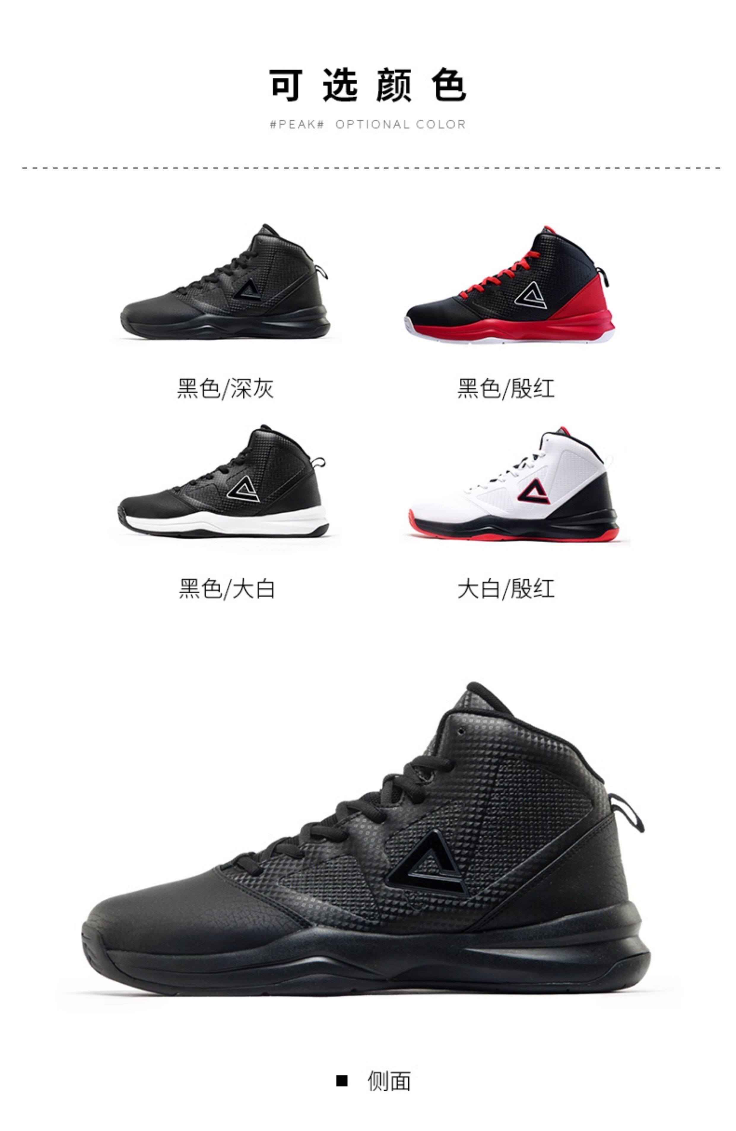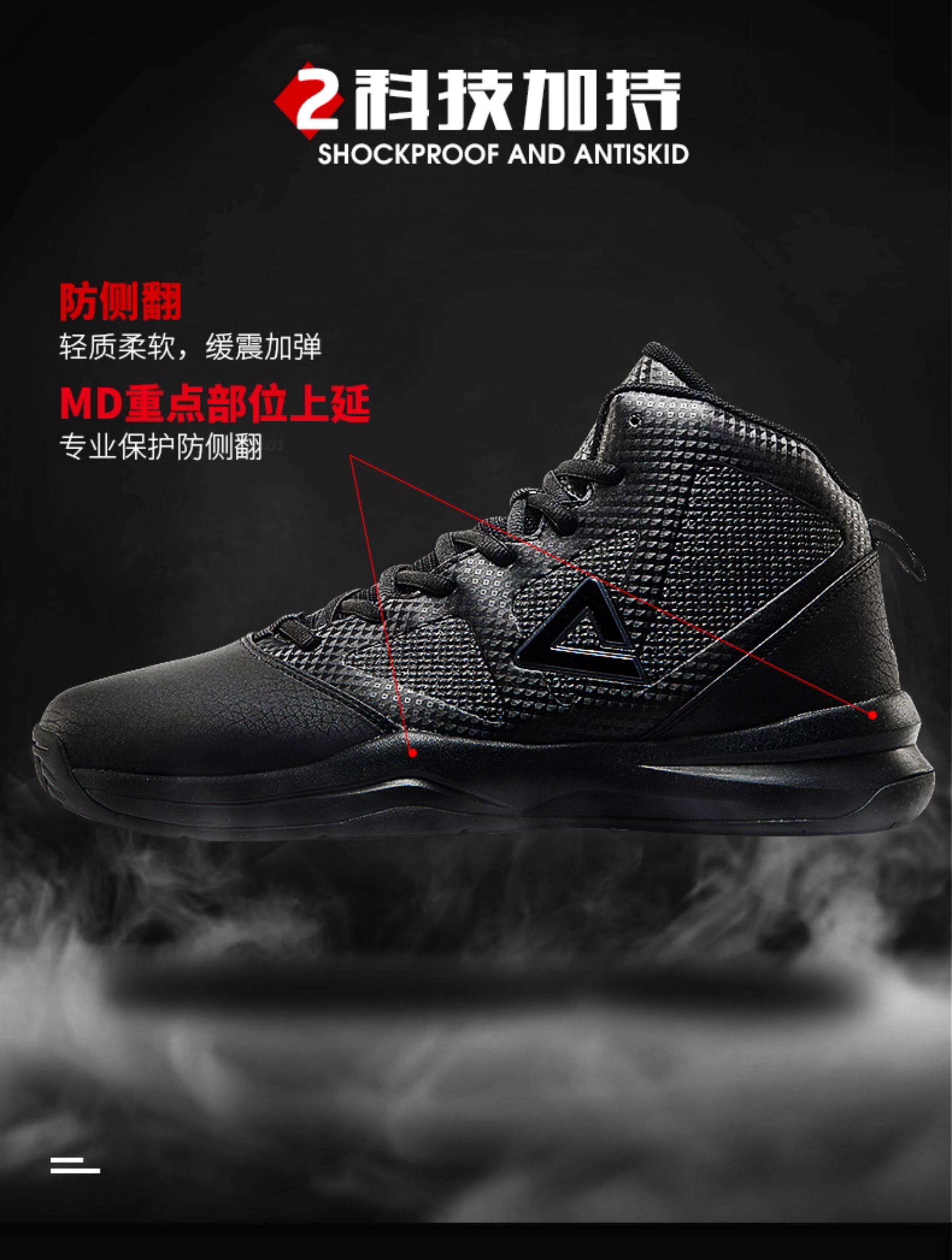 Peak Basketball Shoes Men's Official Flagship Black Leather High-Top Wear-Resistant Sneakers Outdoor Actual Combat Sports Shoes for Men
