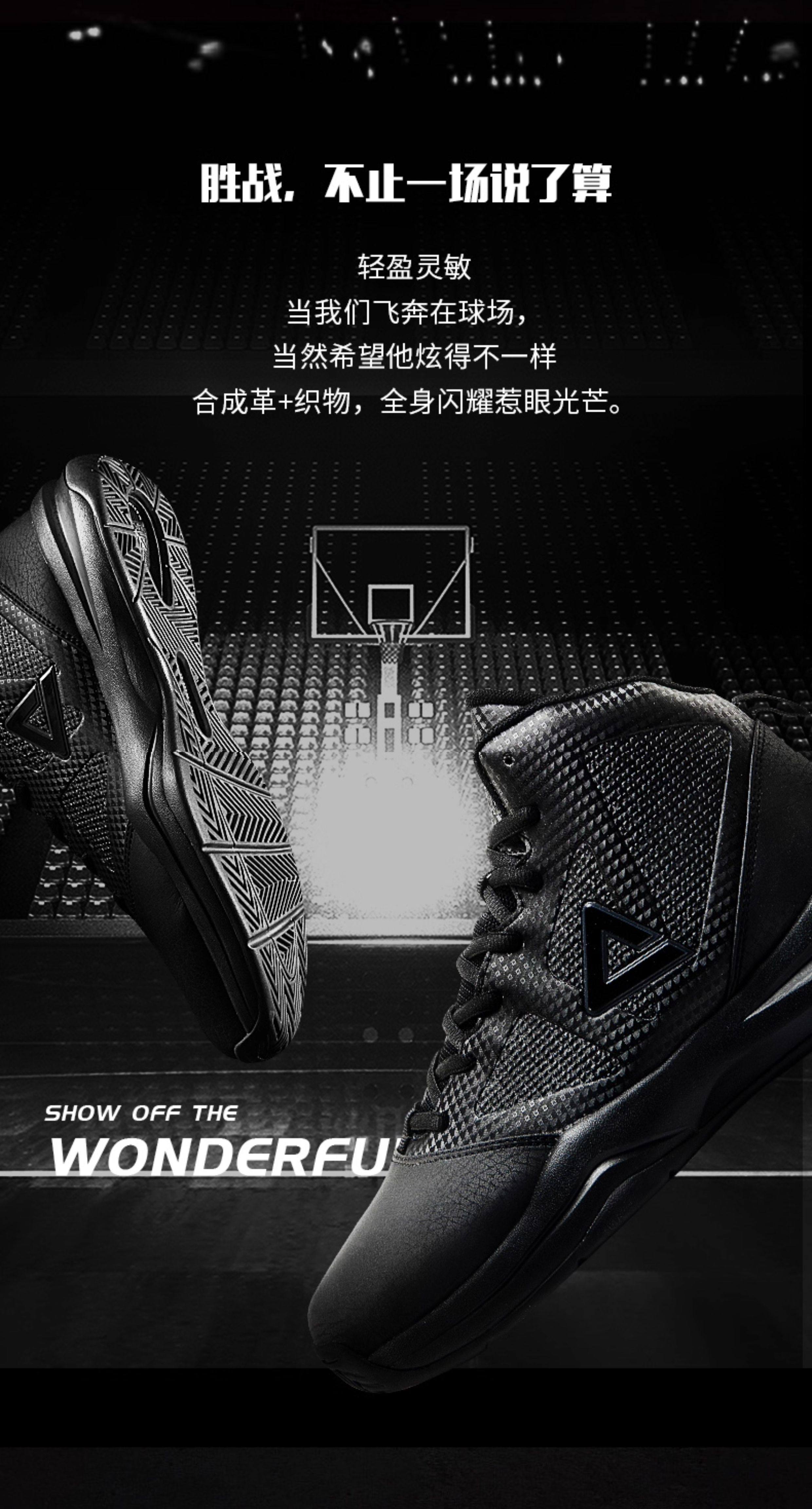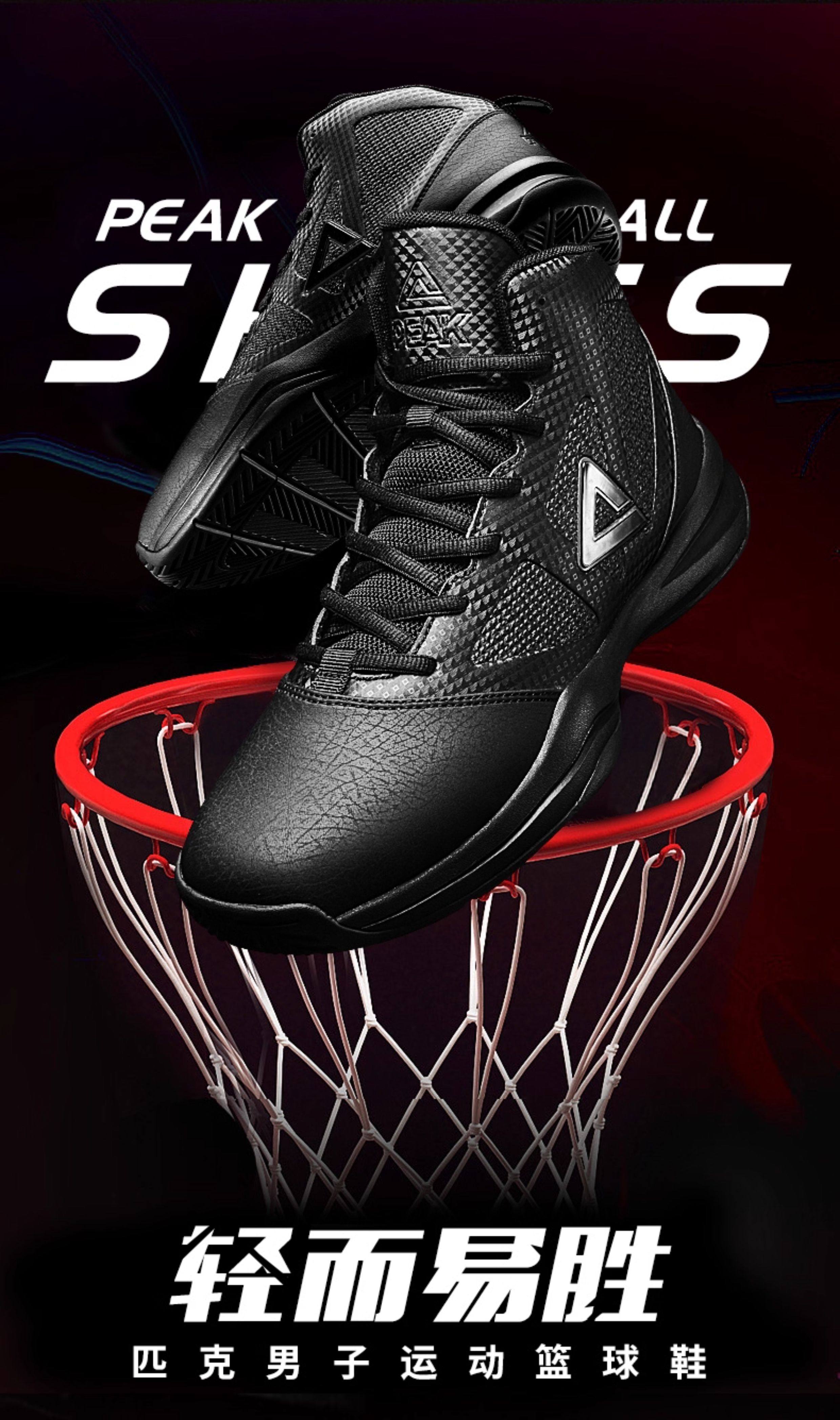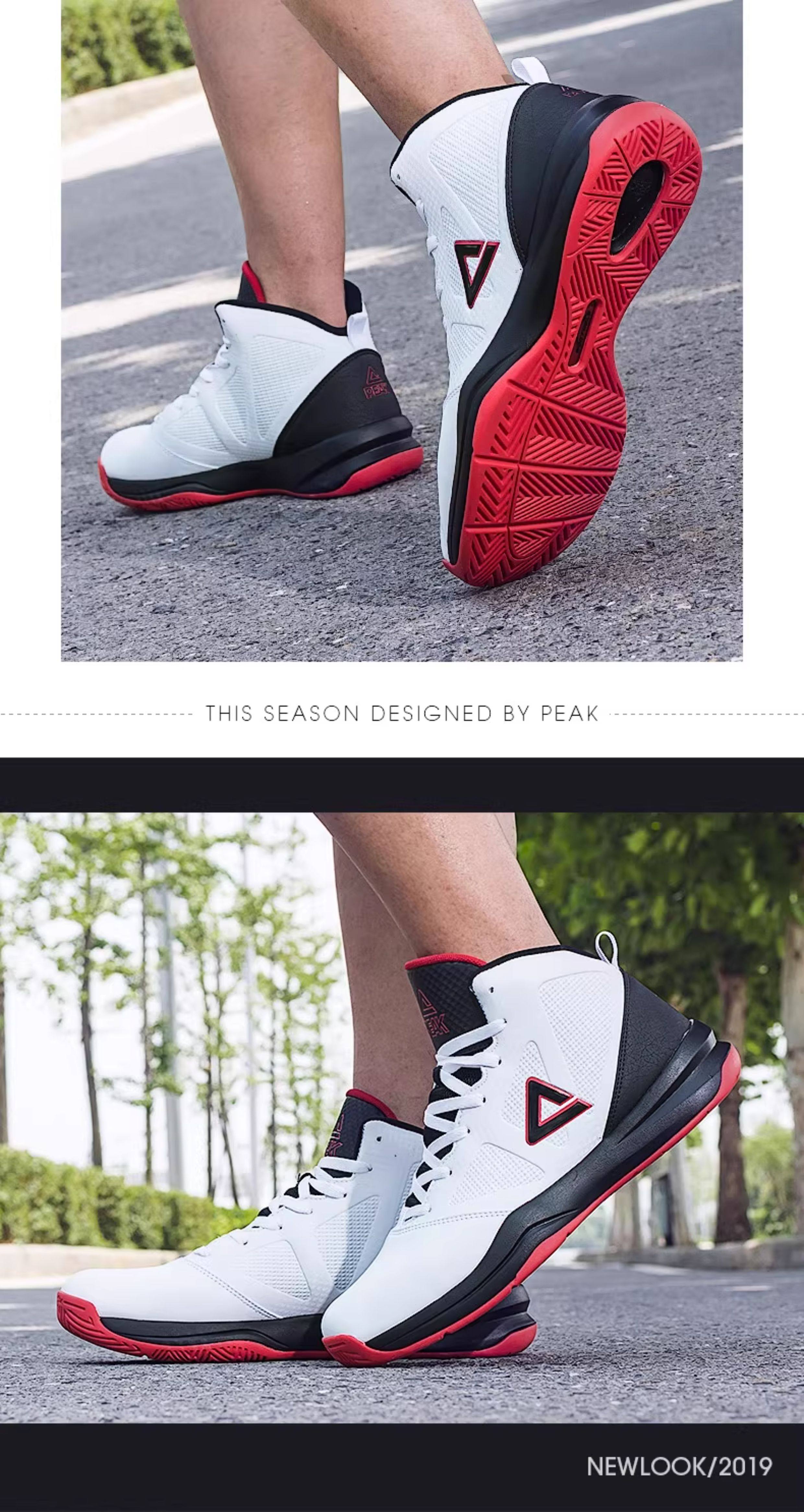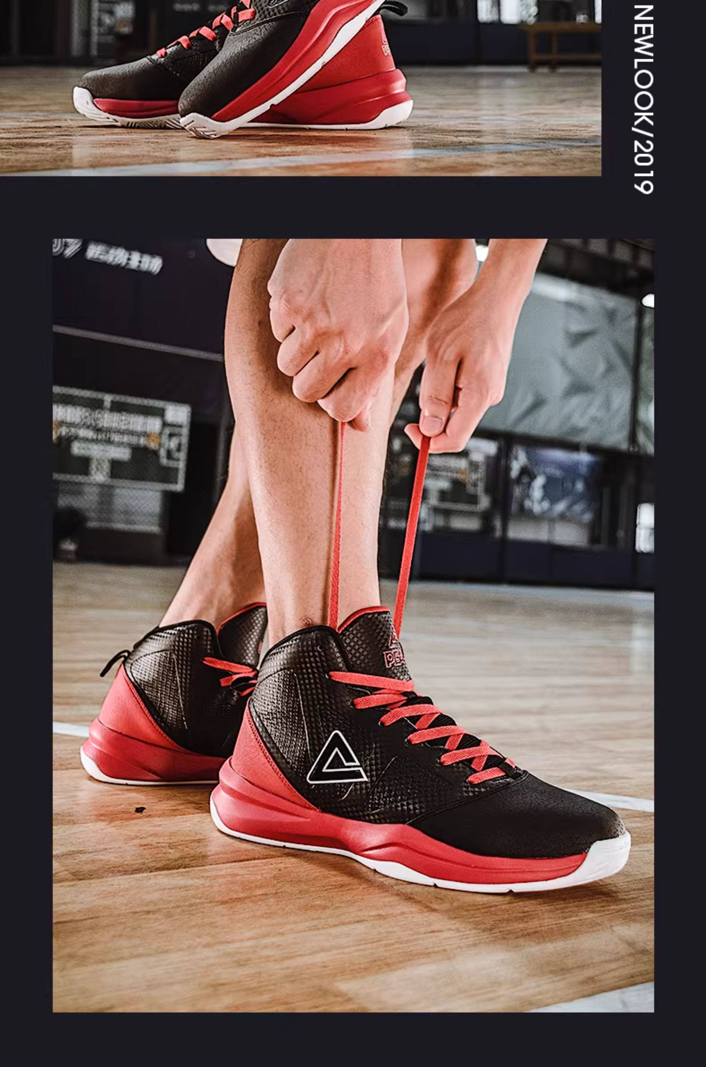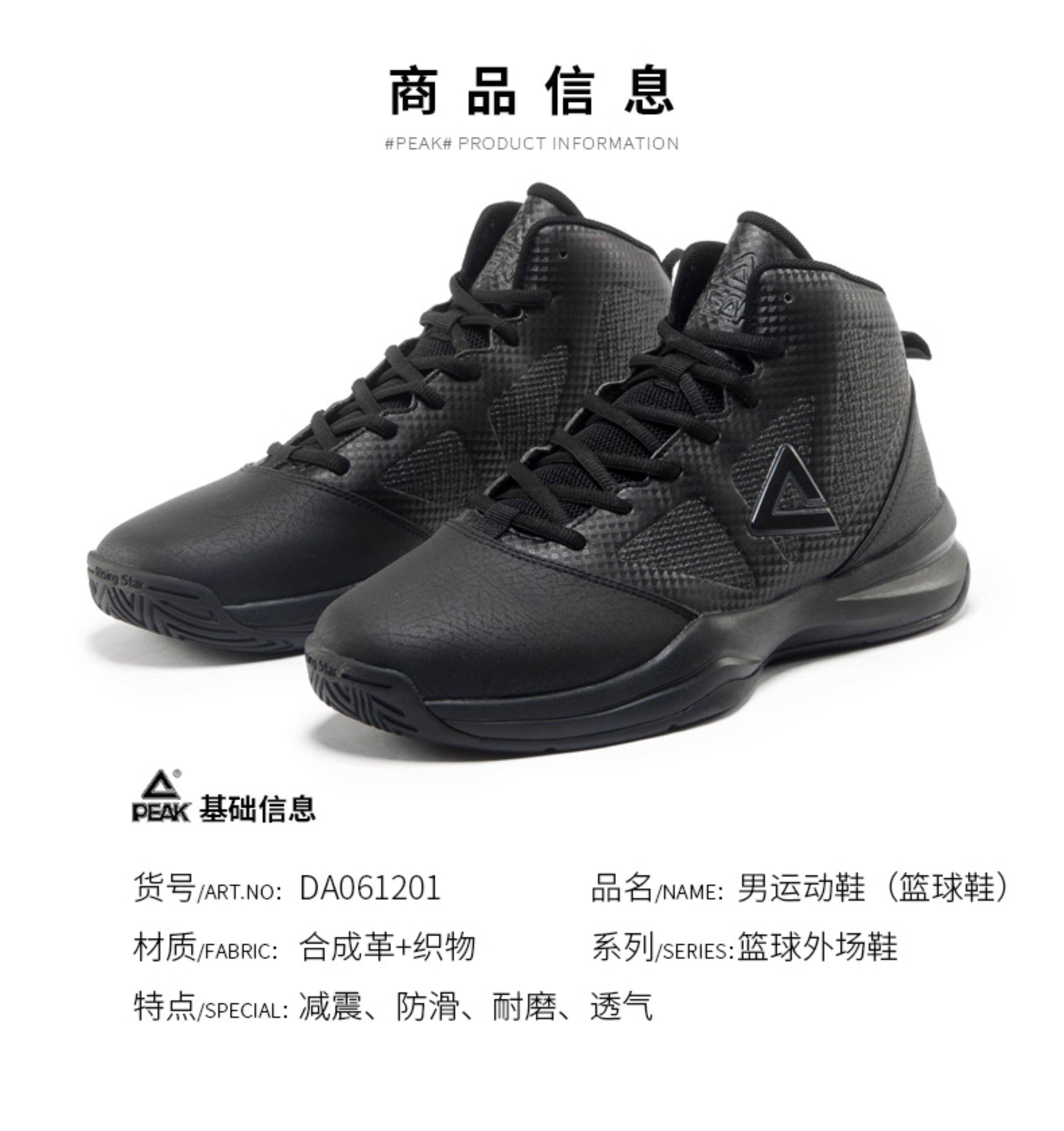 Peak Basketball Shoes Men's Official Flagship Black Leather High-Top Wear-Resistant Sneakers Outdoor Actual Combat Sports Shoes for Men