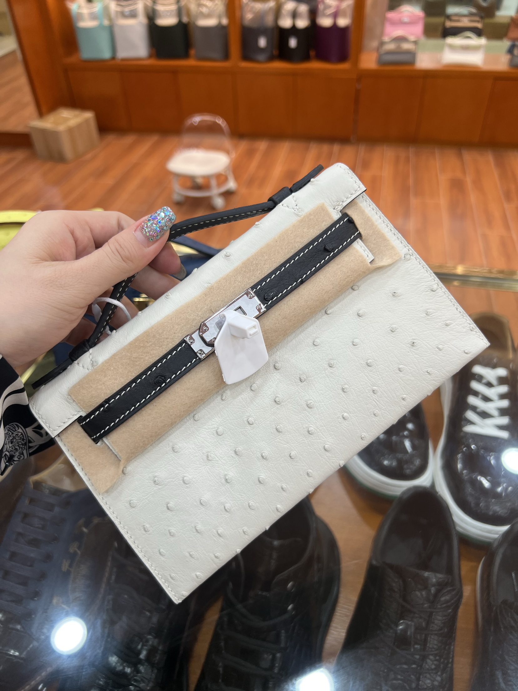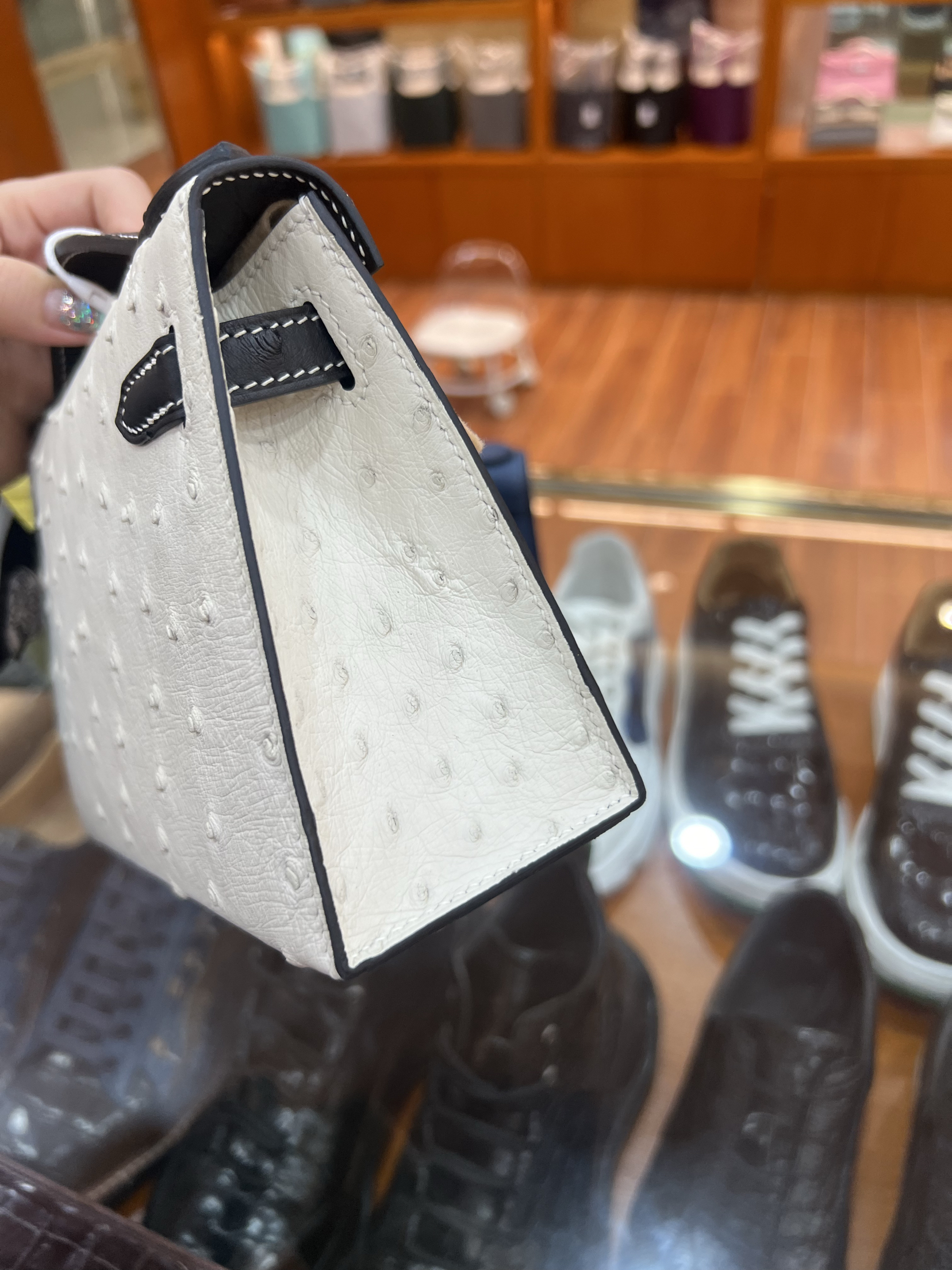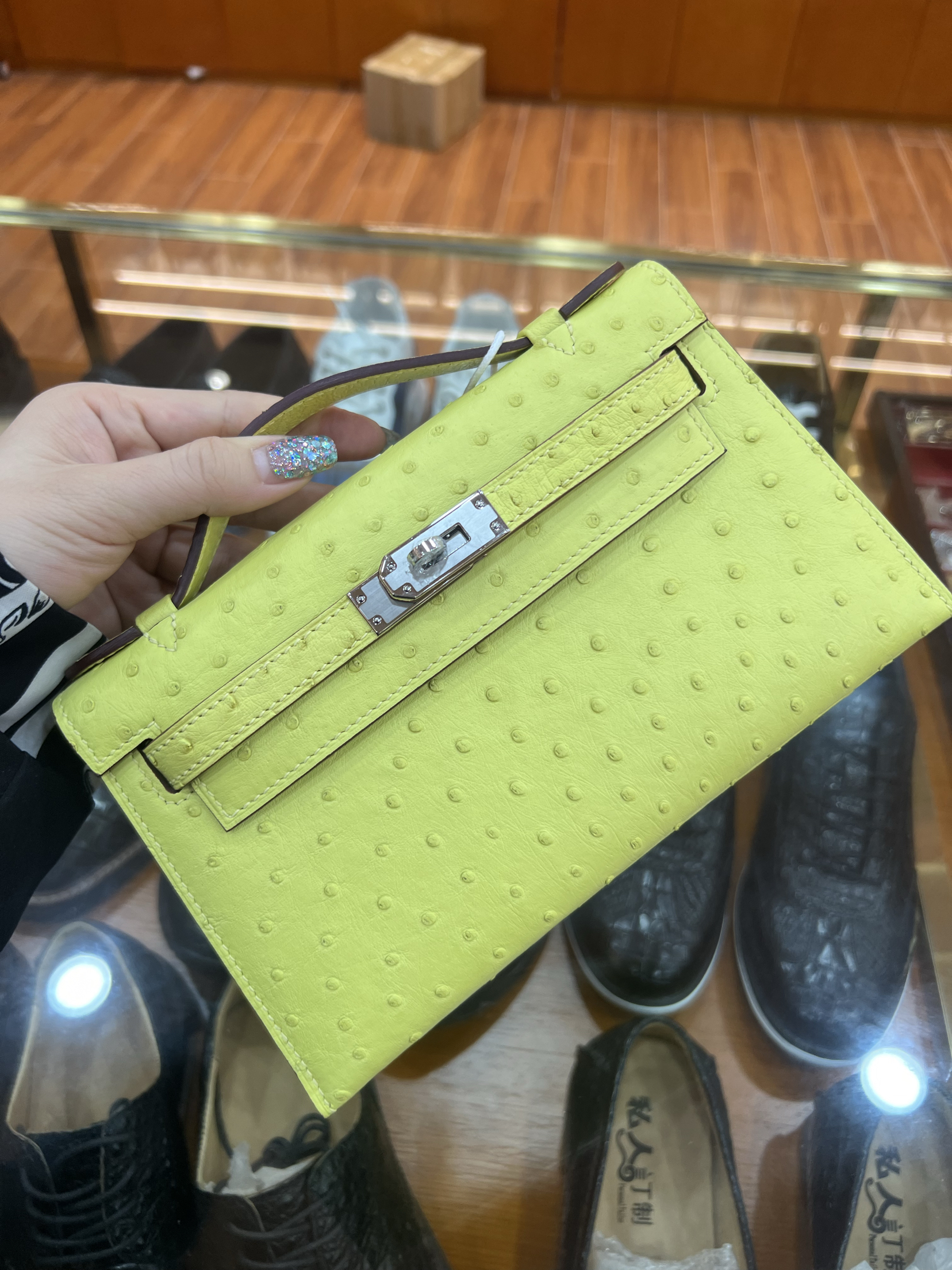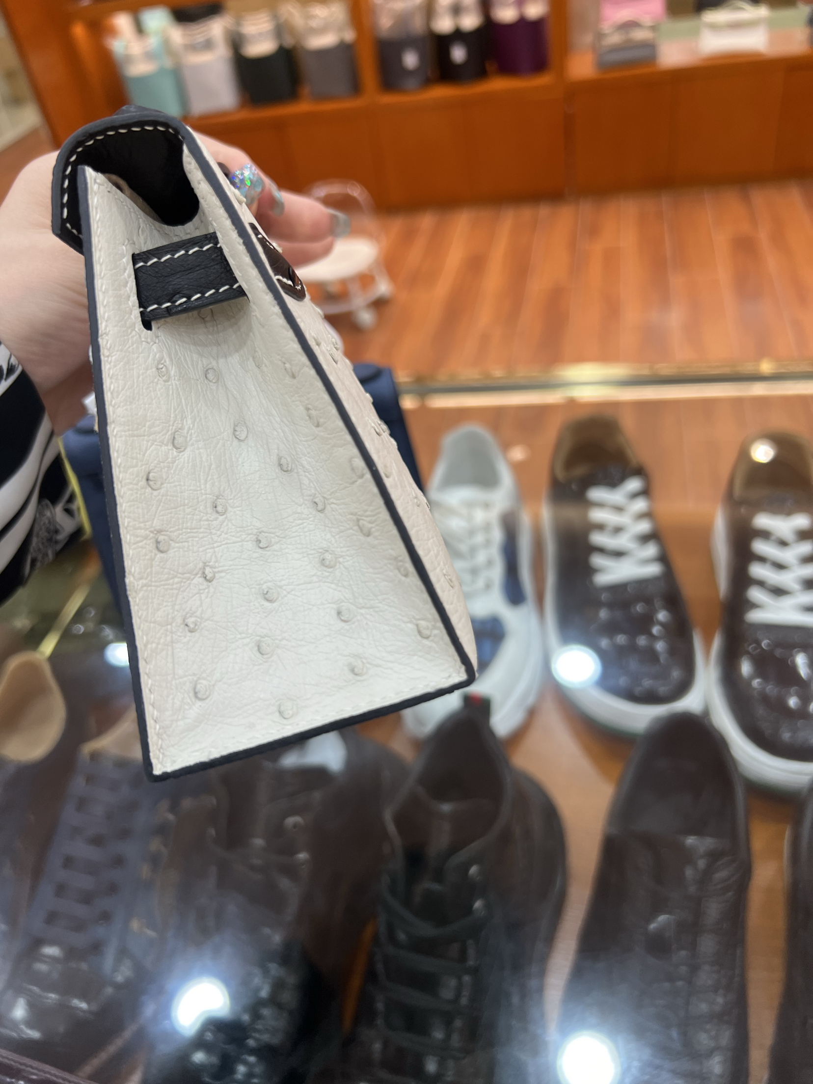 Imported Ostrich Leather Women's Bag, First-Generation Kelly Hand-Stitched Wax Thread Craft Clutch Bag, Shoulder Crossbody Bag, Evening Bag