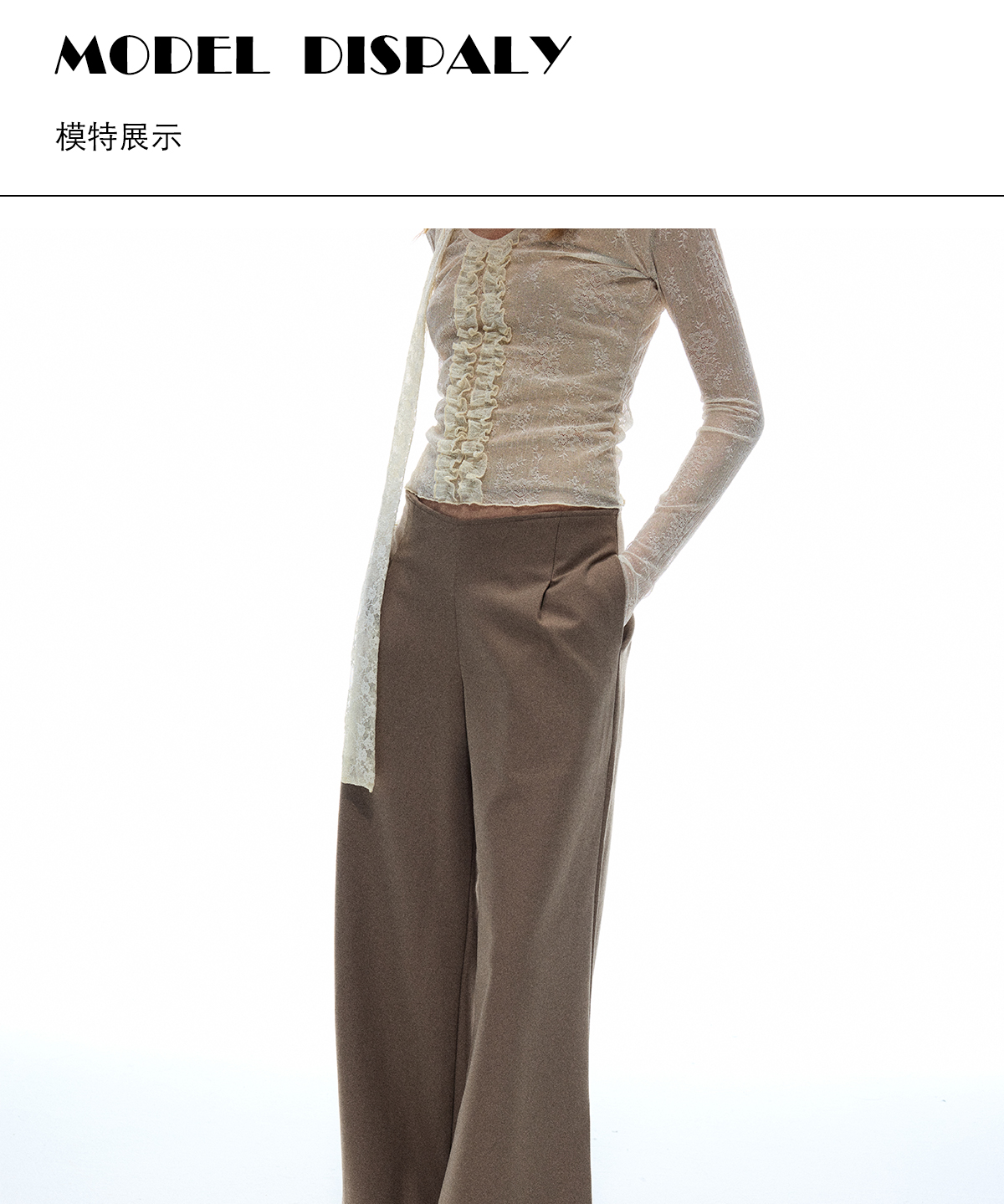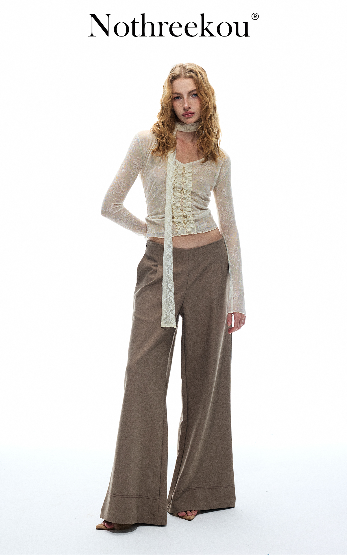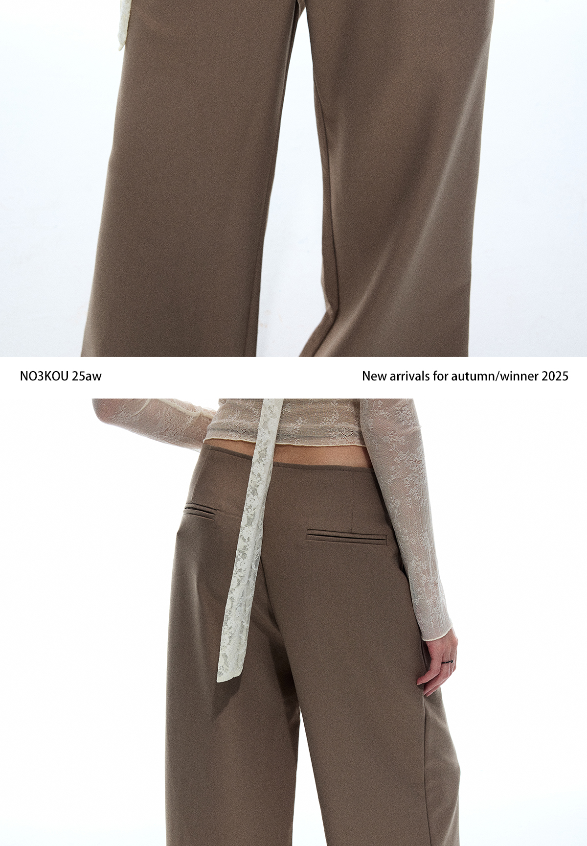 No3Kou Lazy and Elegant Old-Money Style Low-Waisted Floor-Length Commuting V-Waist Drape Suit Pants Loose Wide-Leg Trousers