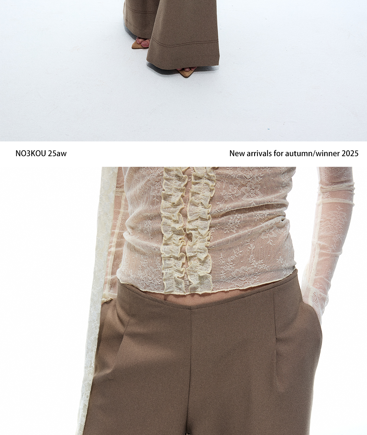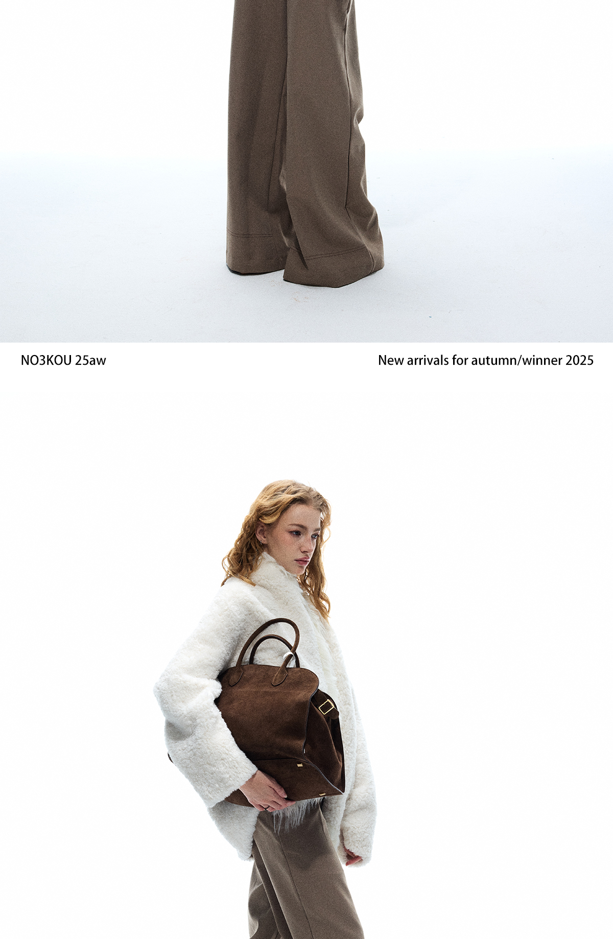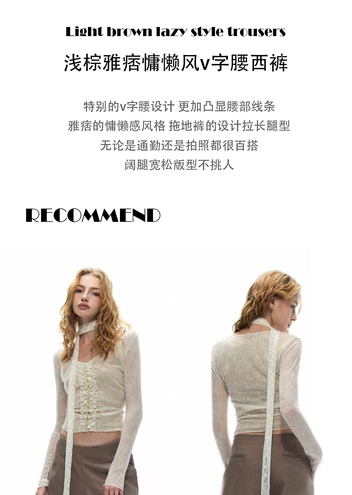 No3Kou Lazy and Elegant Old-Money Style Low-Waisted Floor-Length Commuting V-Waist Drape Suit Pants Loose Wide-Leg Trousers