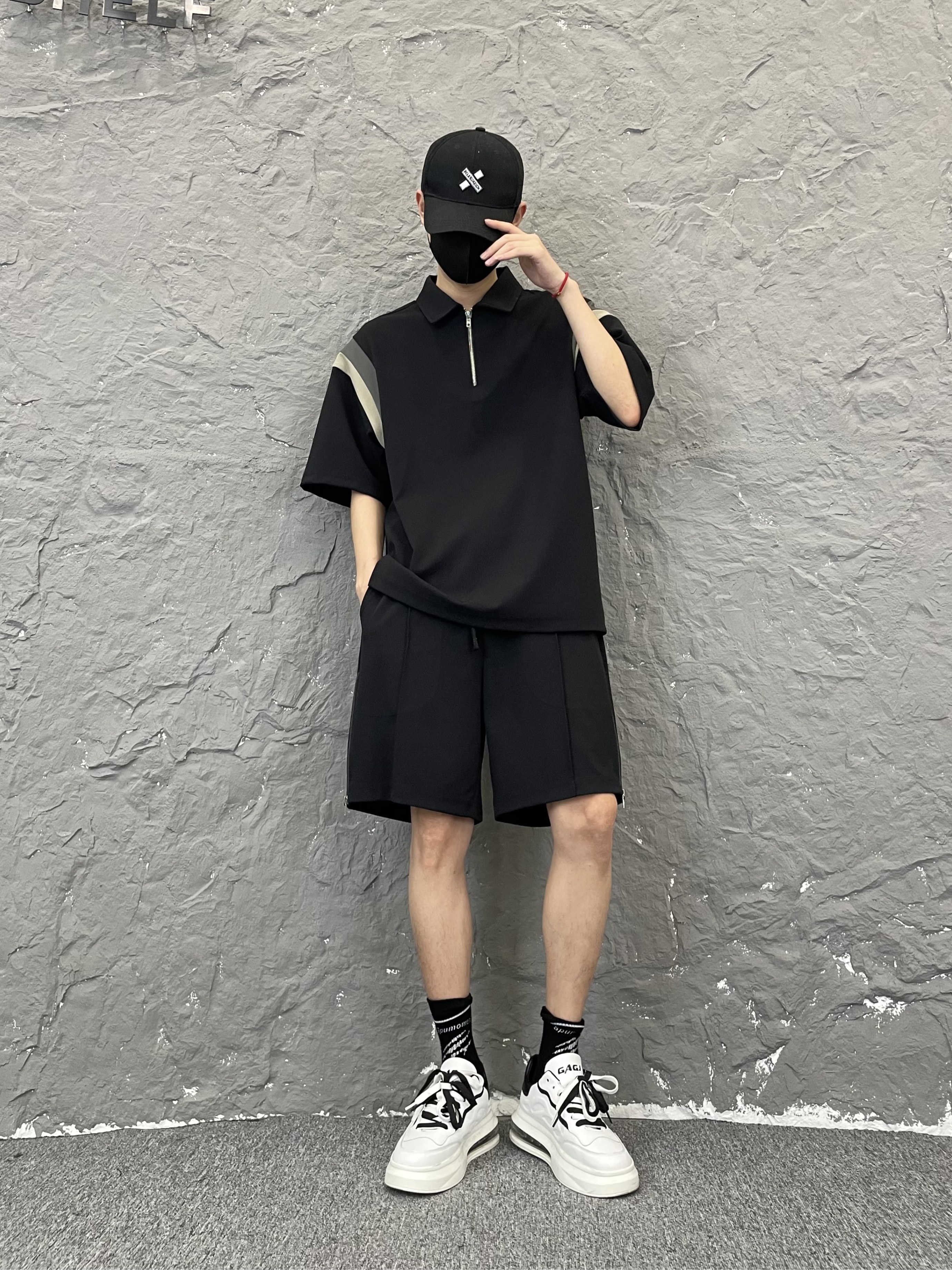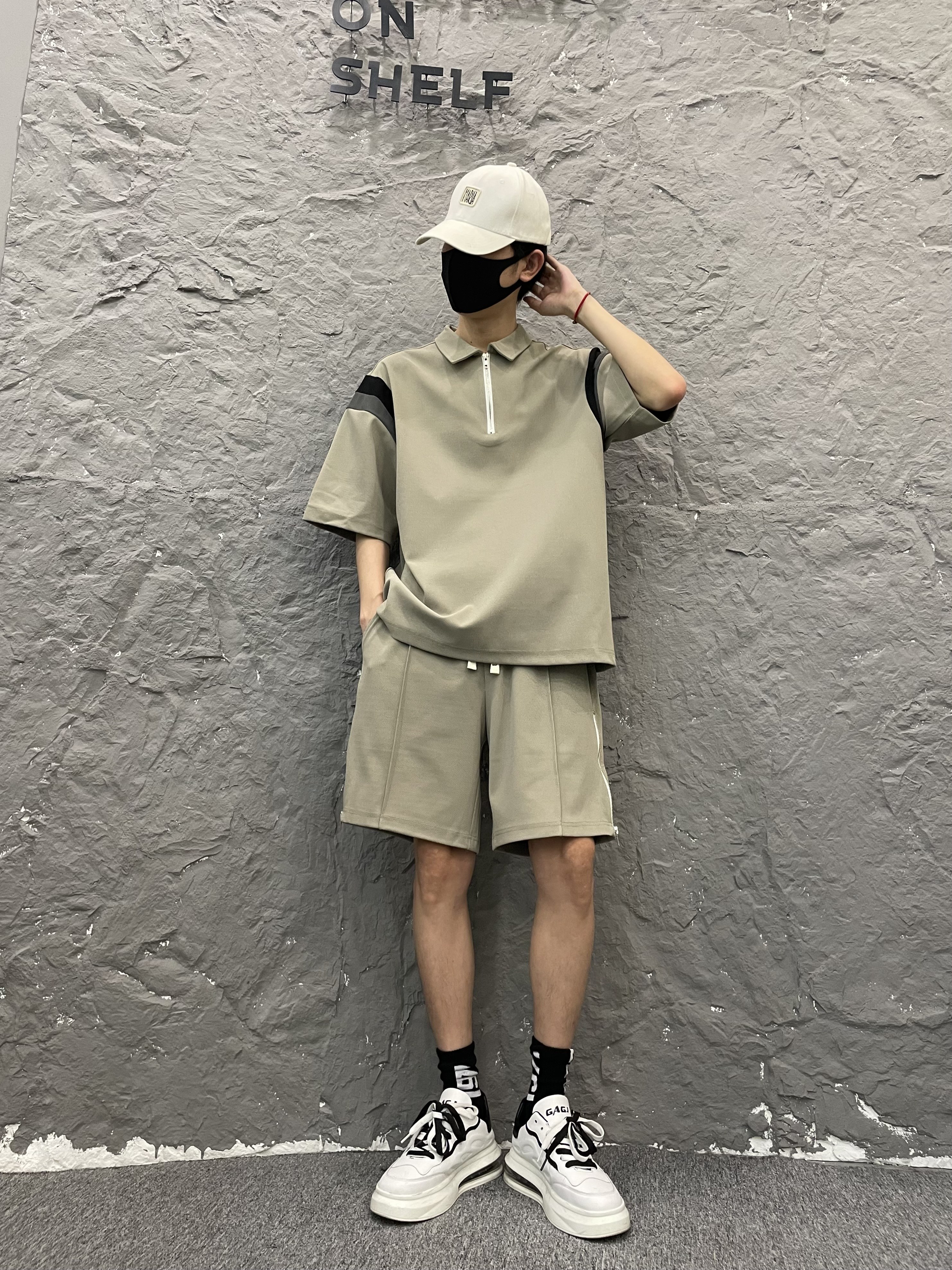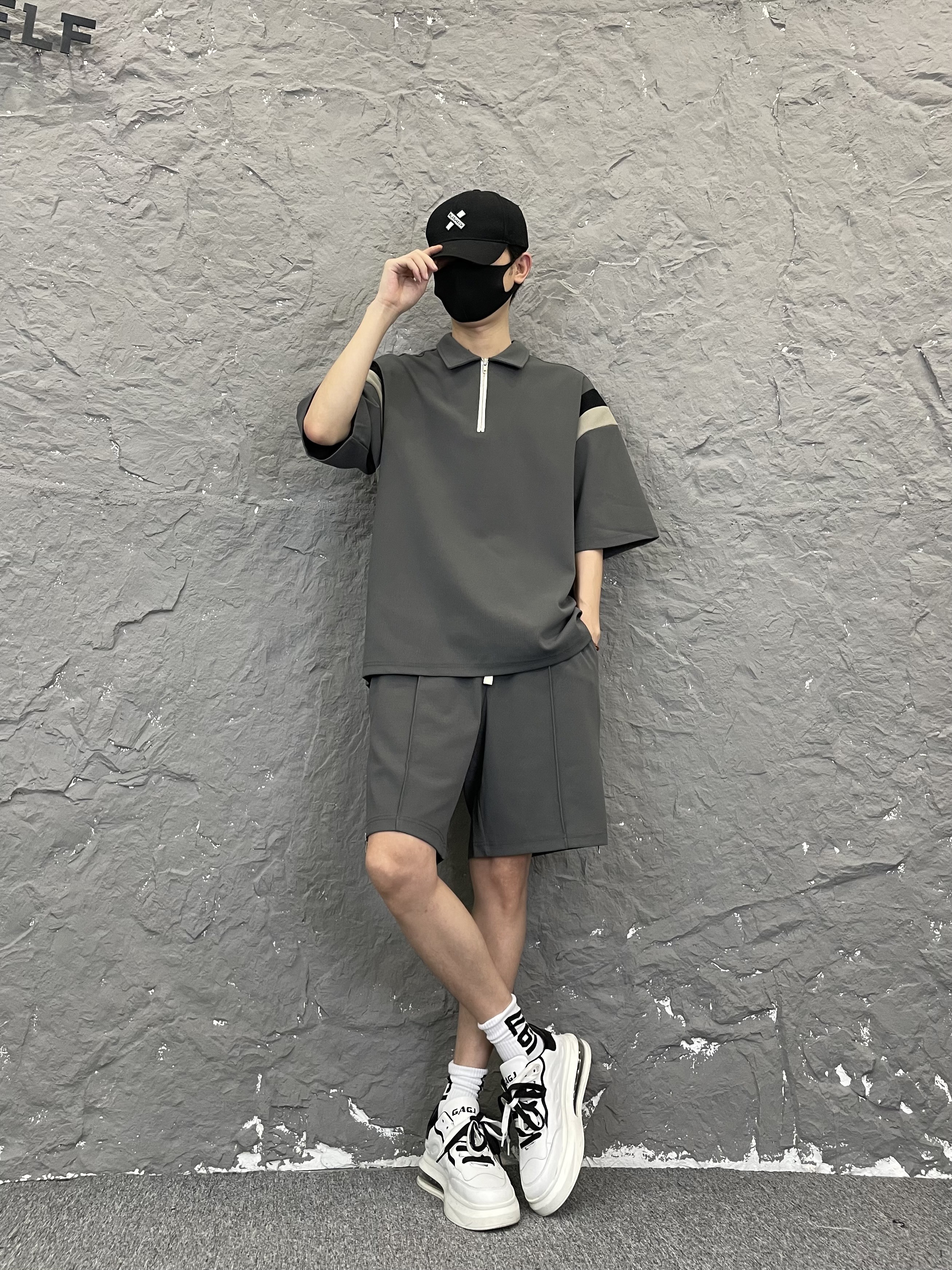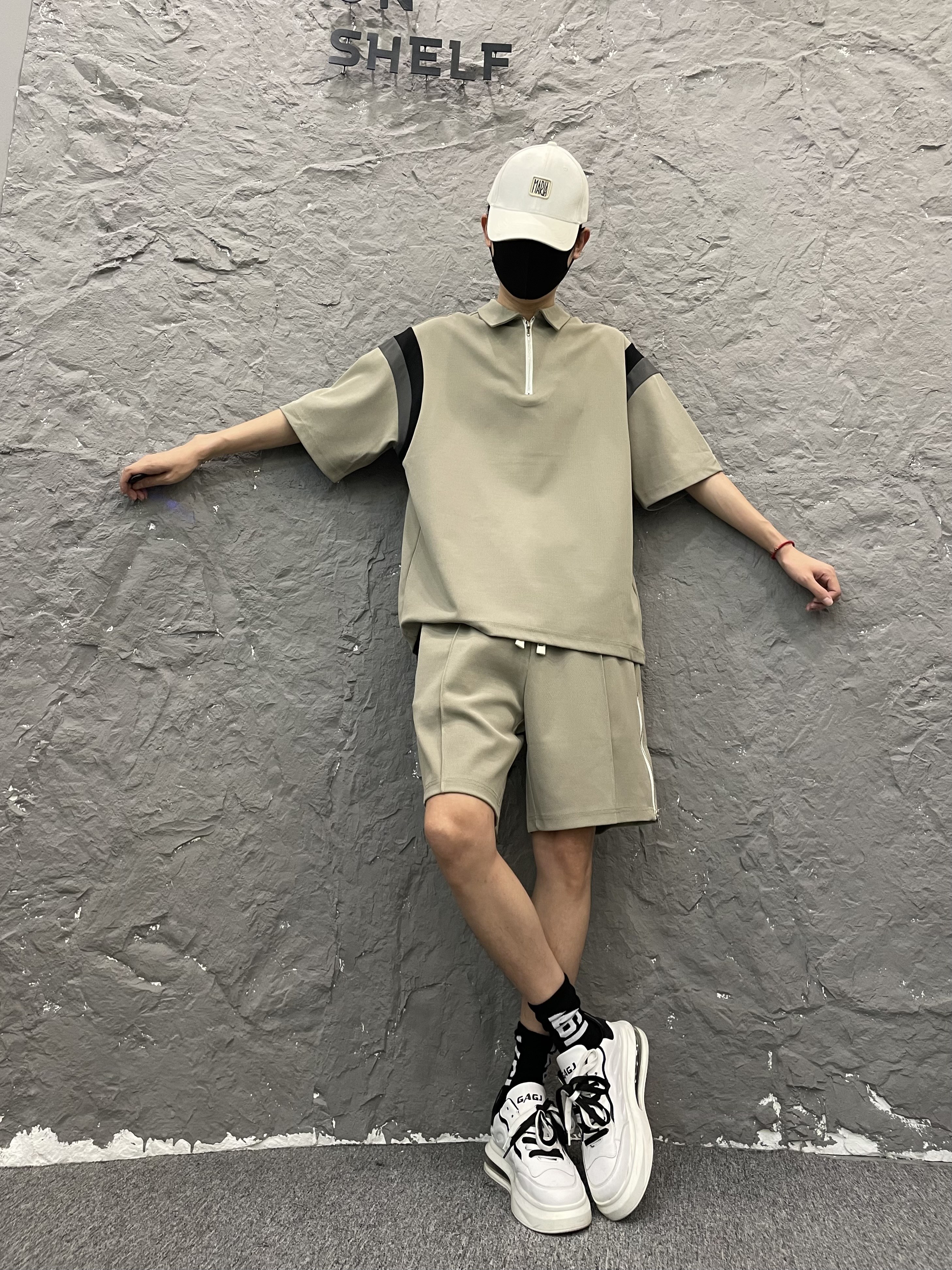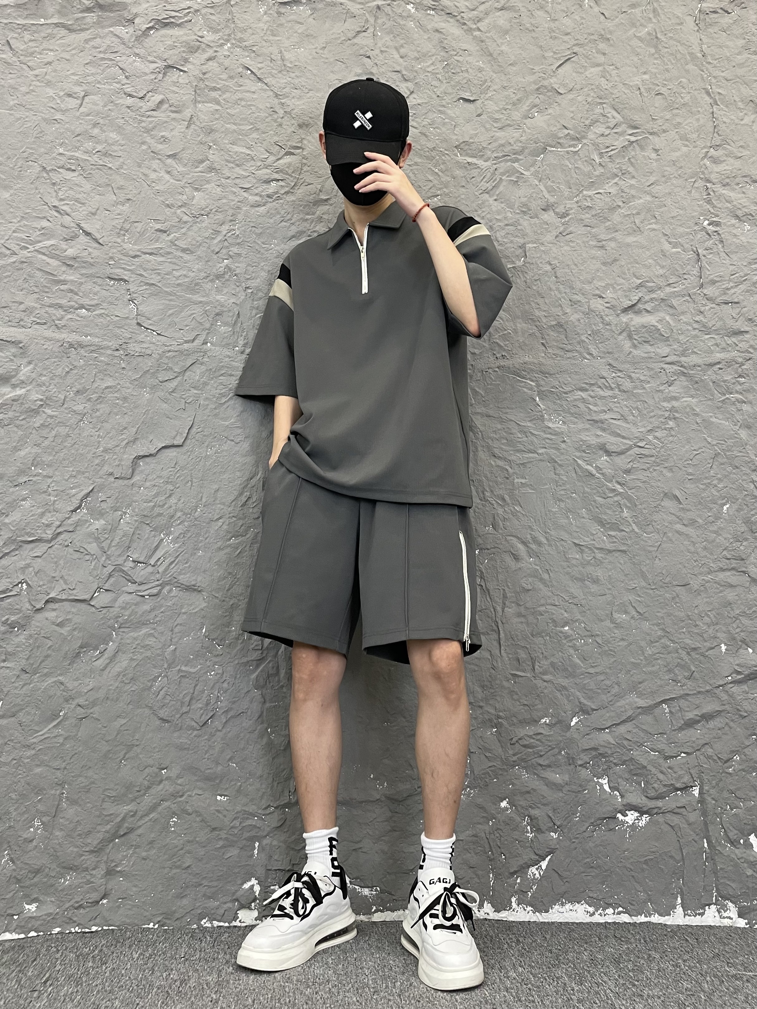New Casual Fashion Suit, Summer Simple Zipper Polo Versatile Loose High-End Short-Sleeved Shorts Two-Piece Set