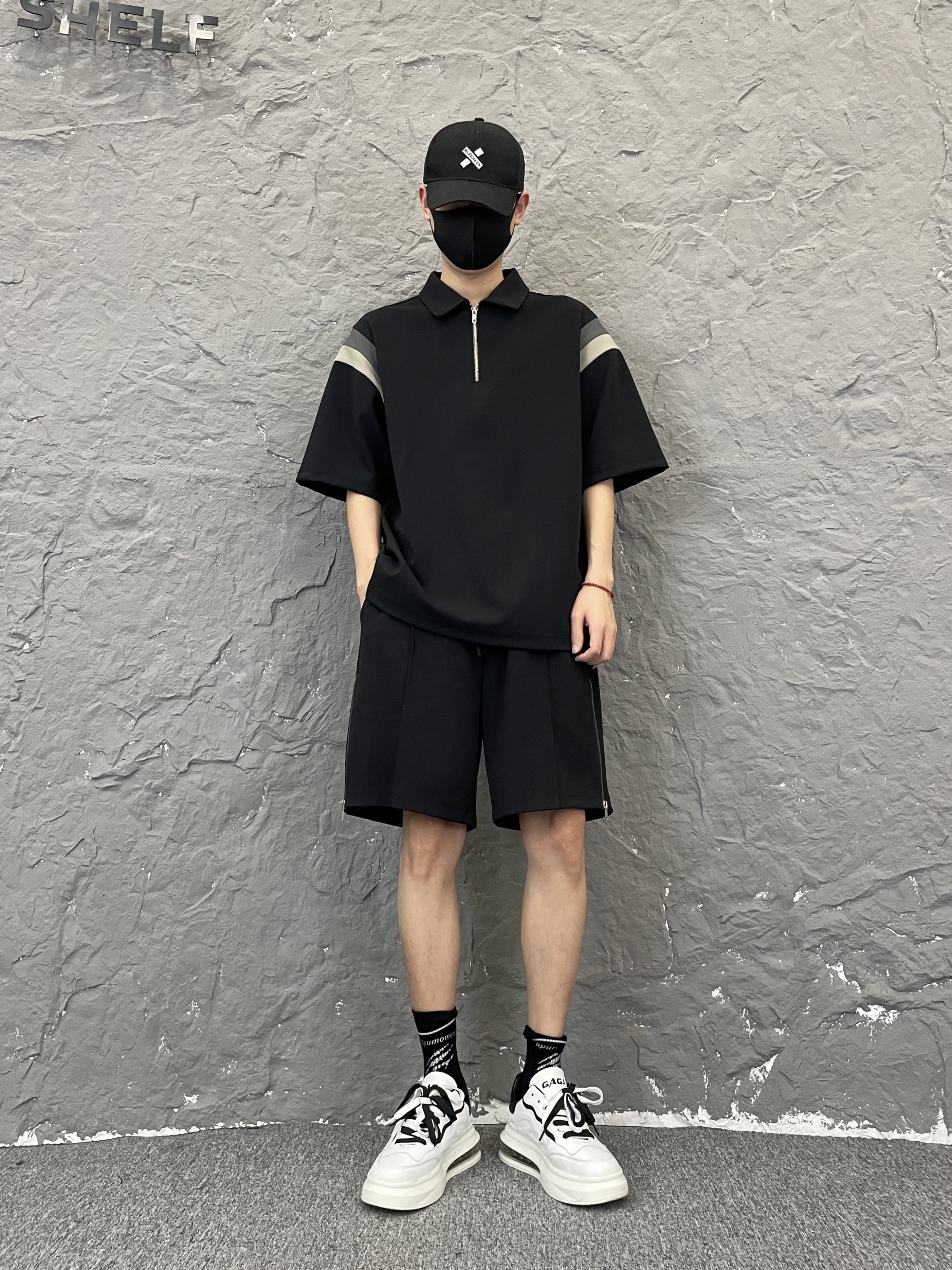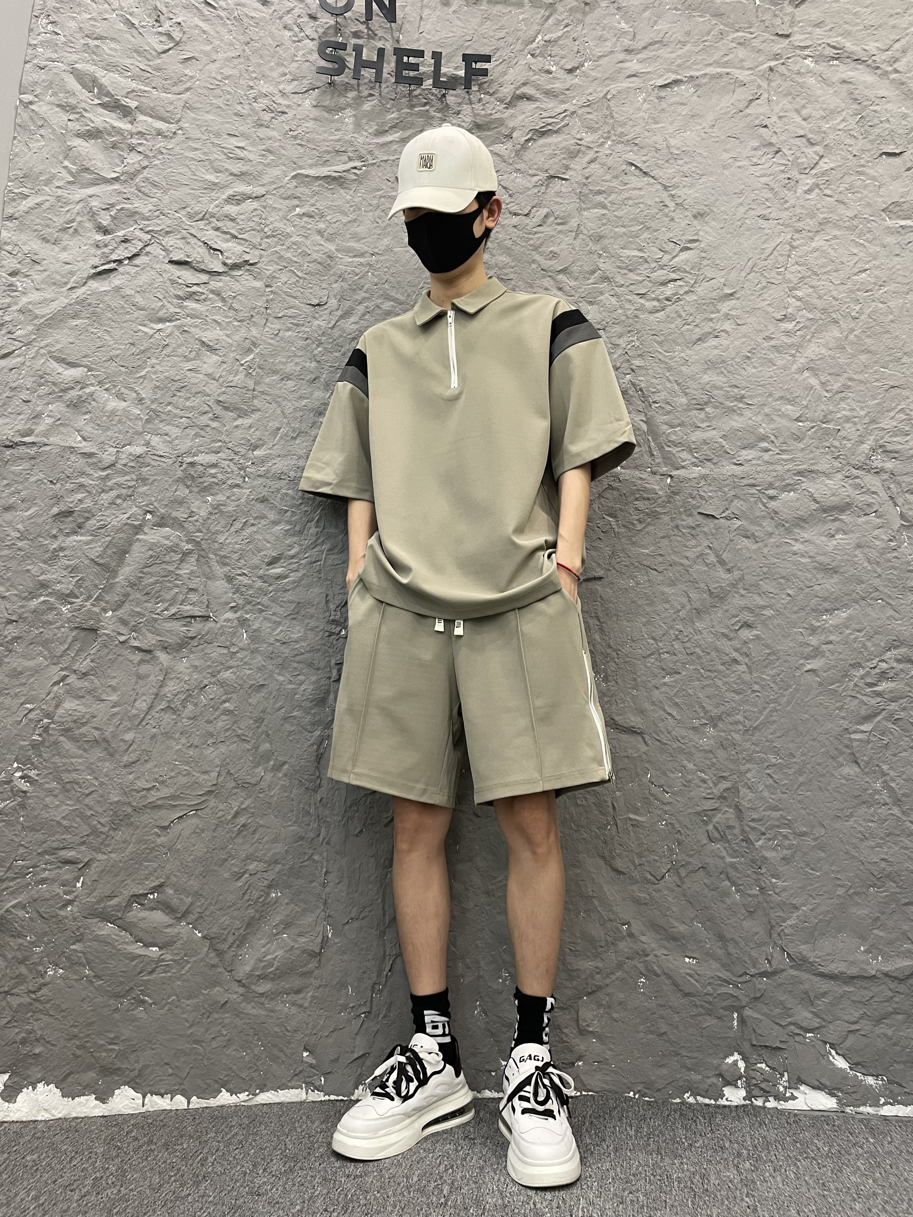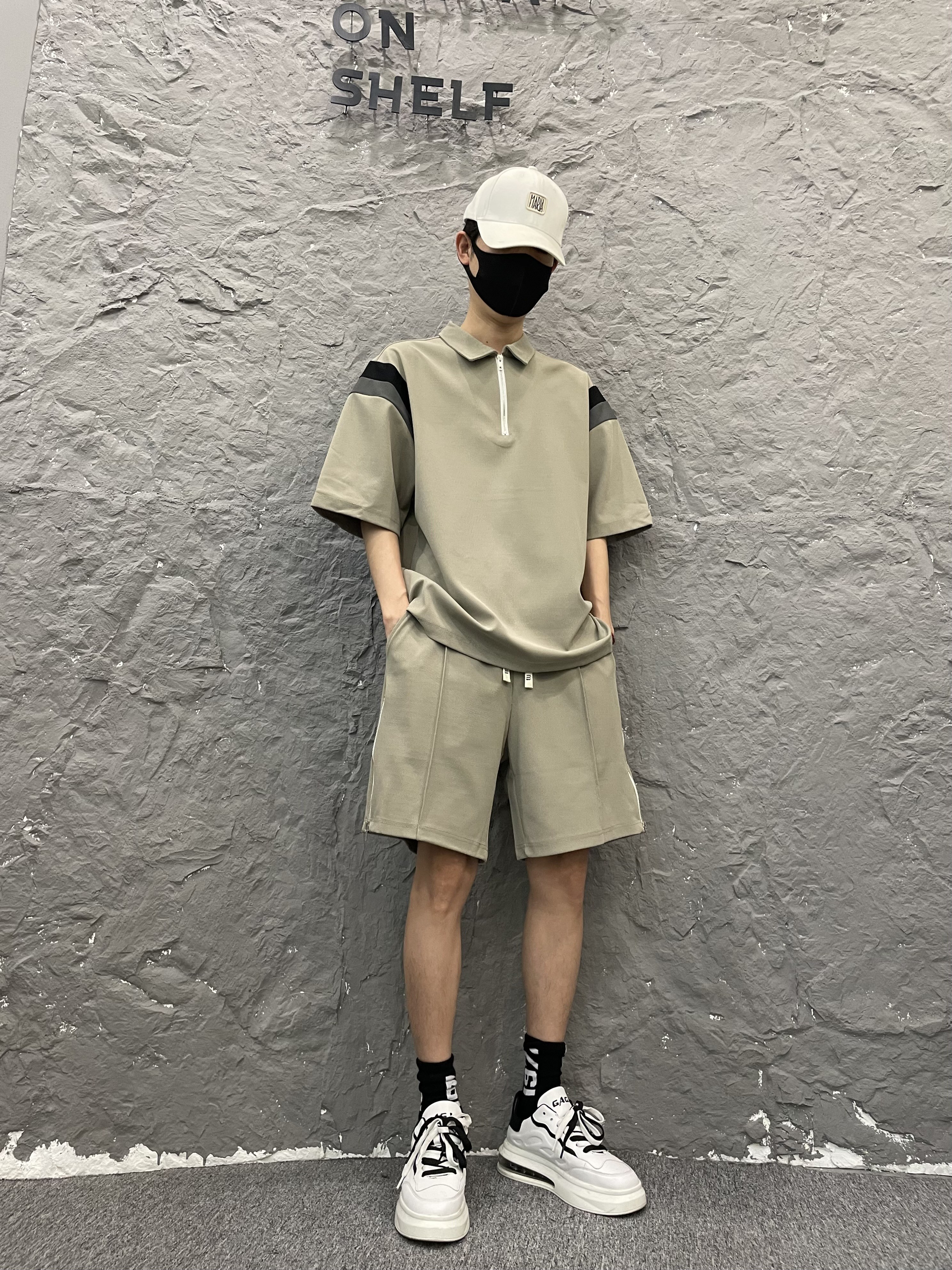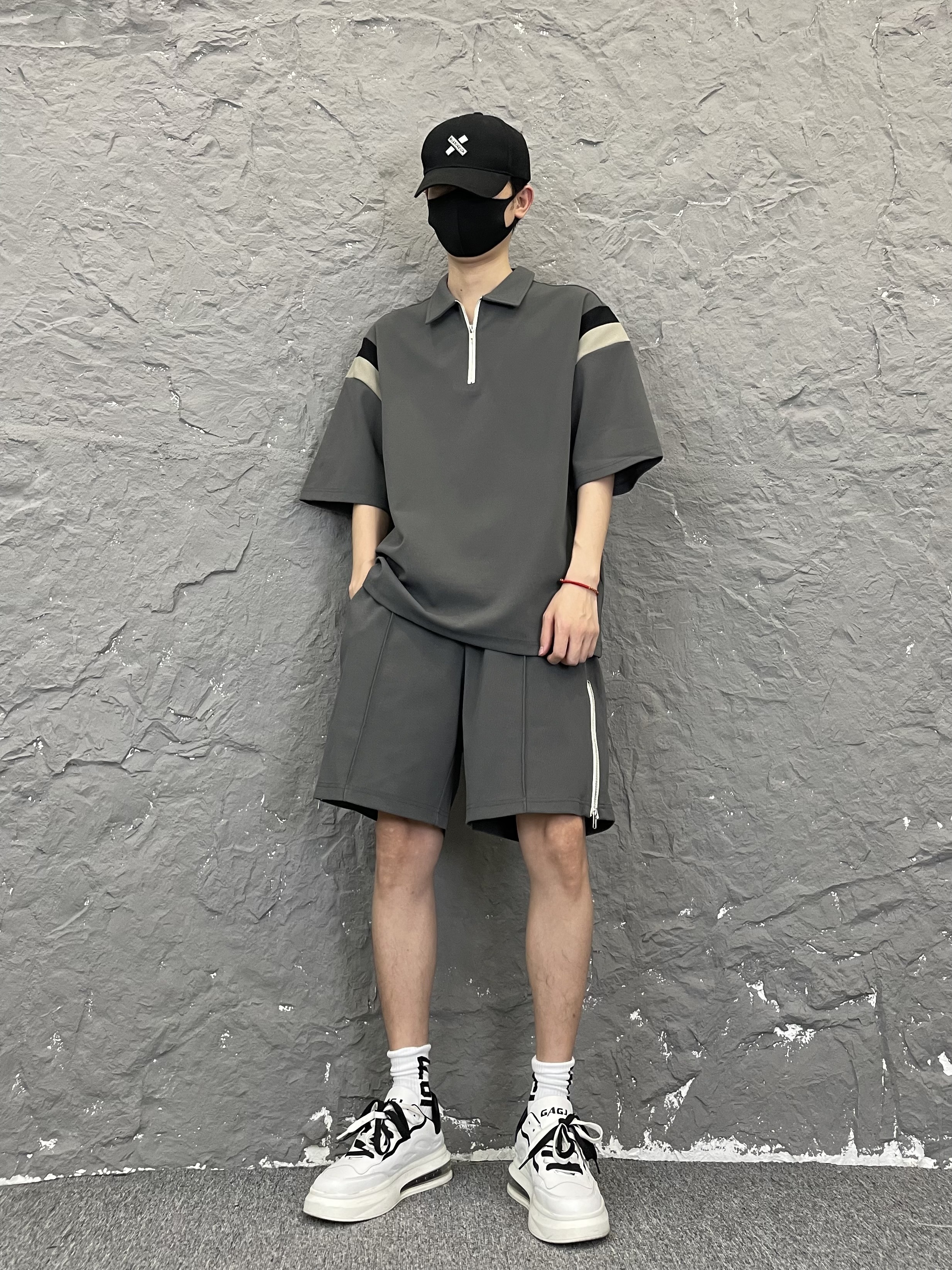 New Casual Fashion Suit, Summer Simple Zipper Polo Versatile Loose High-End Short-Sleeved Shorts Two-Piece Set