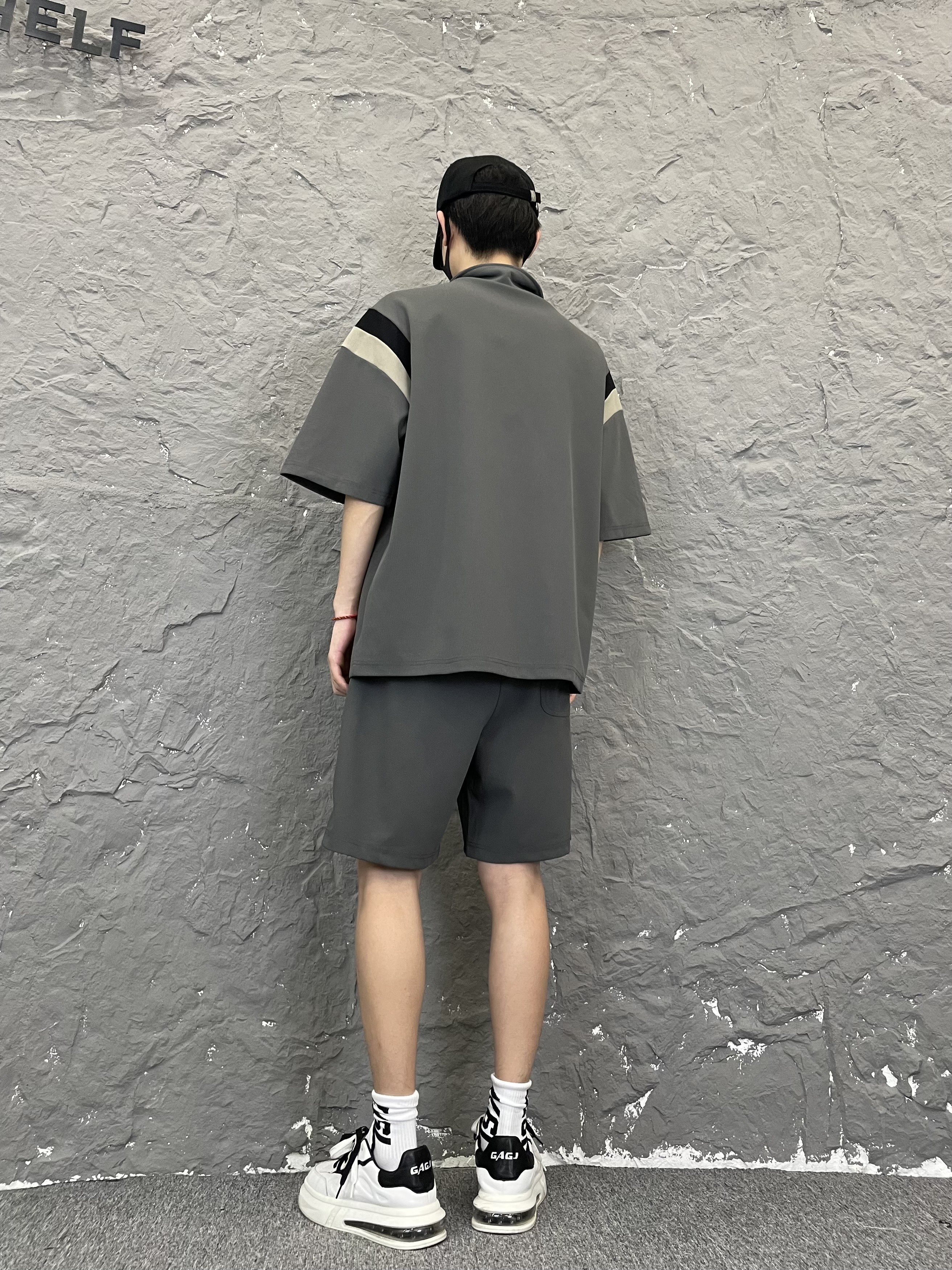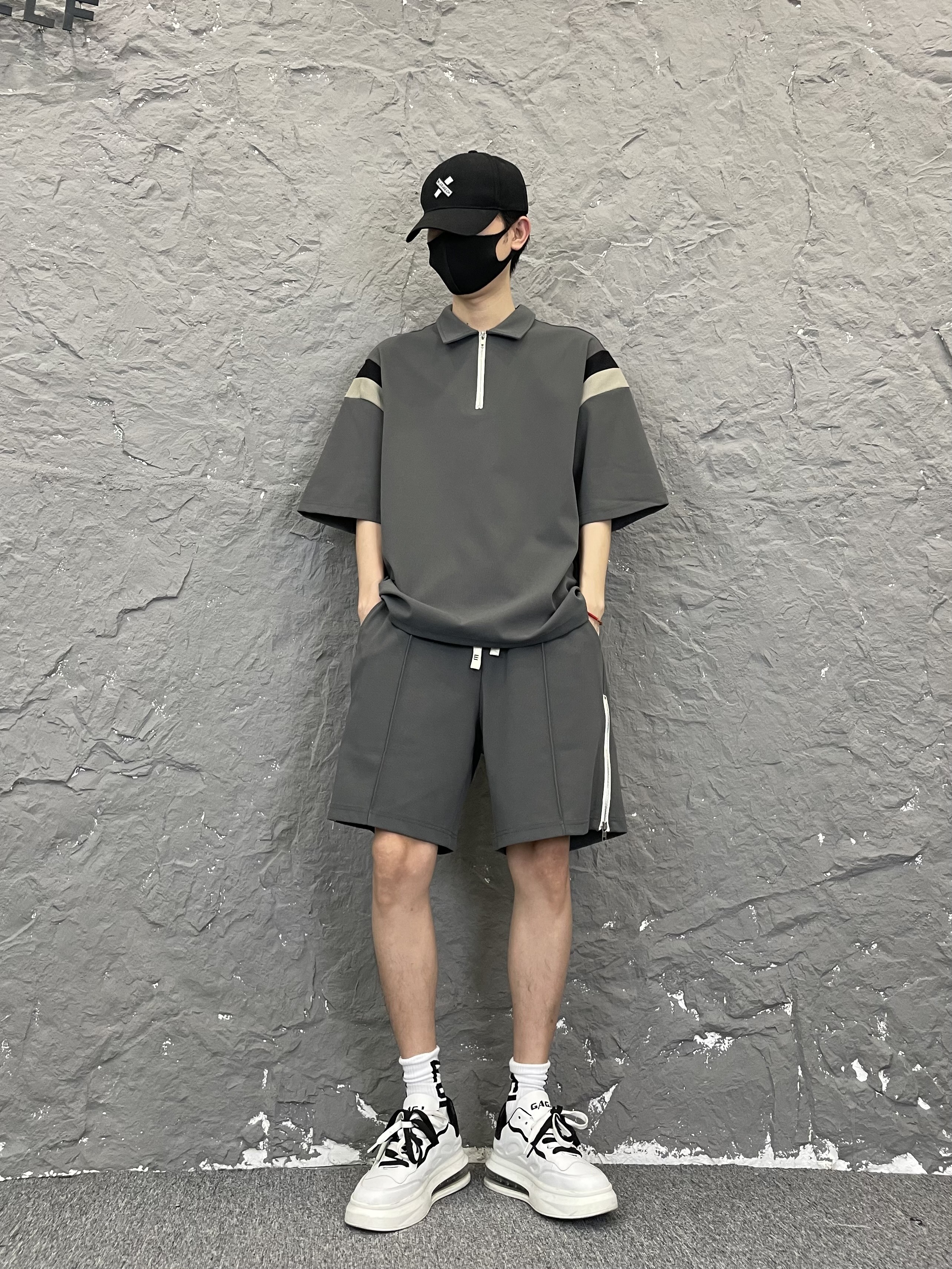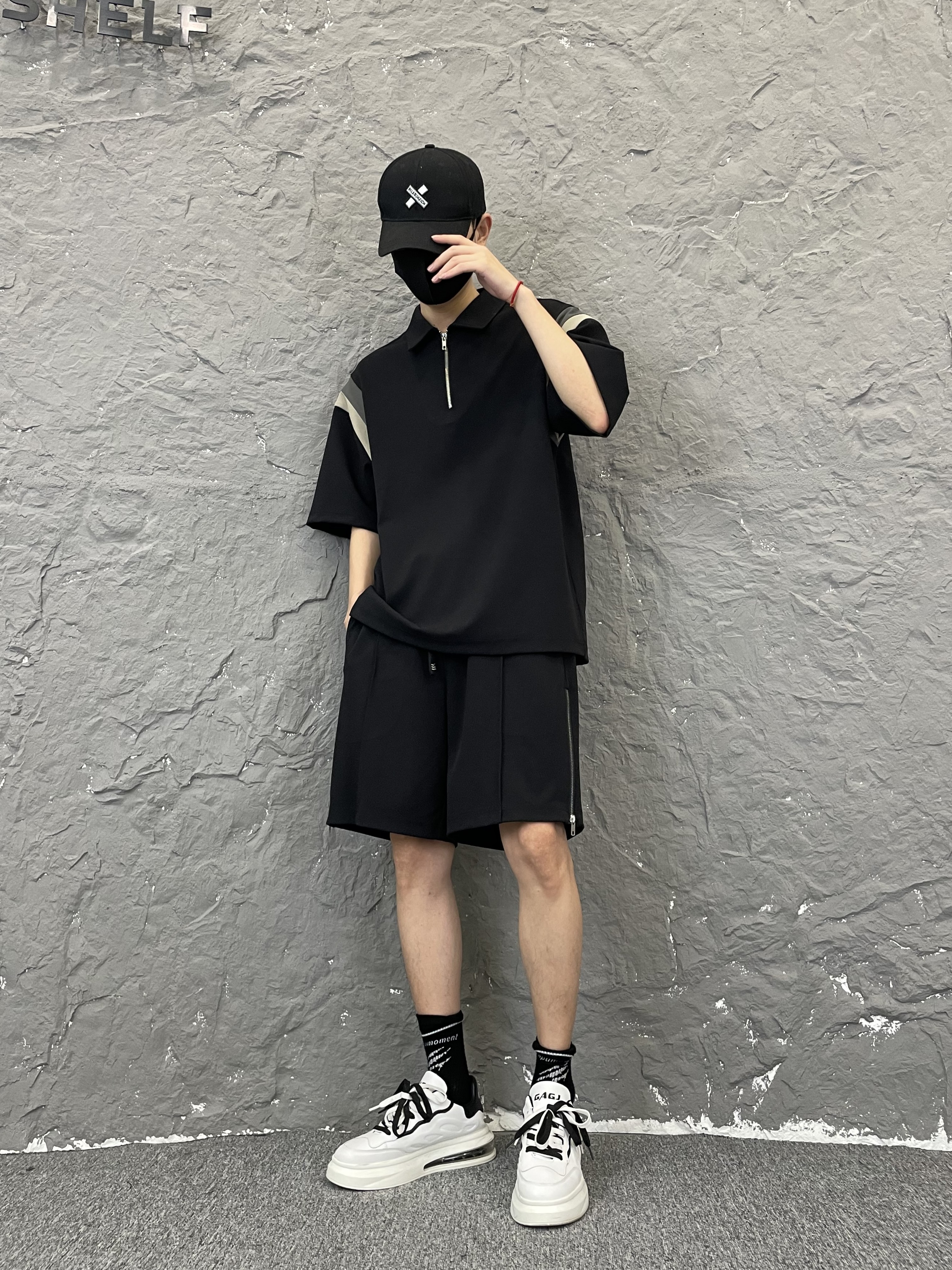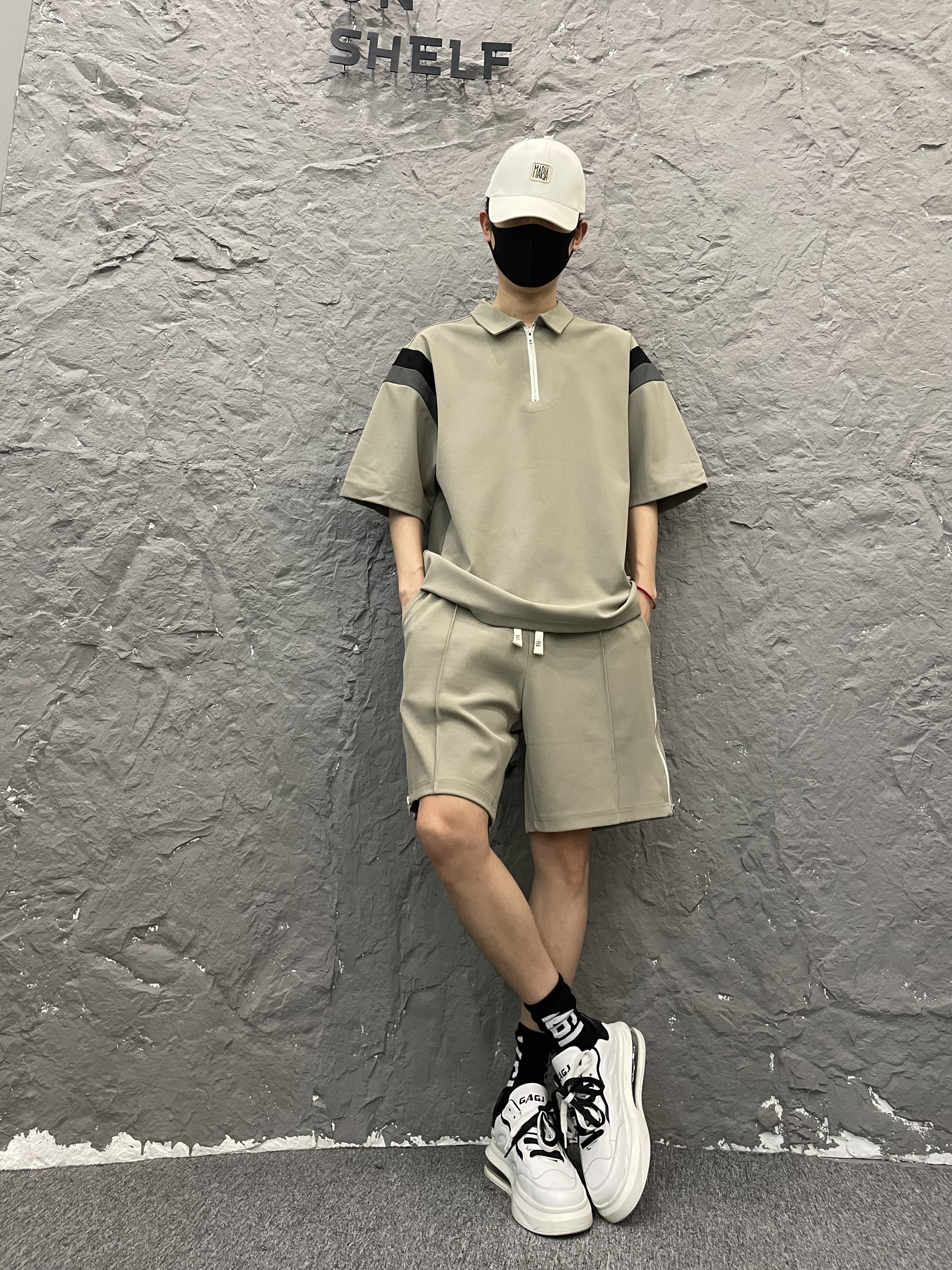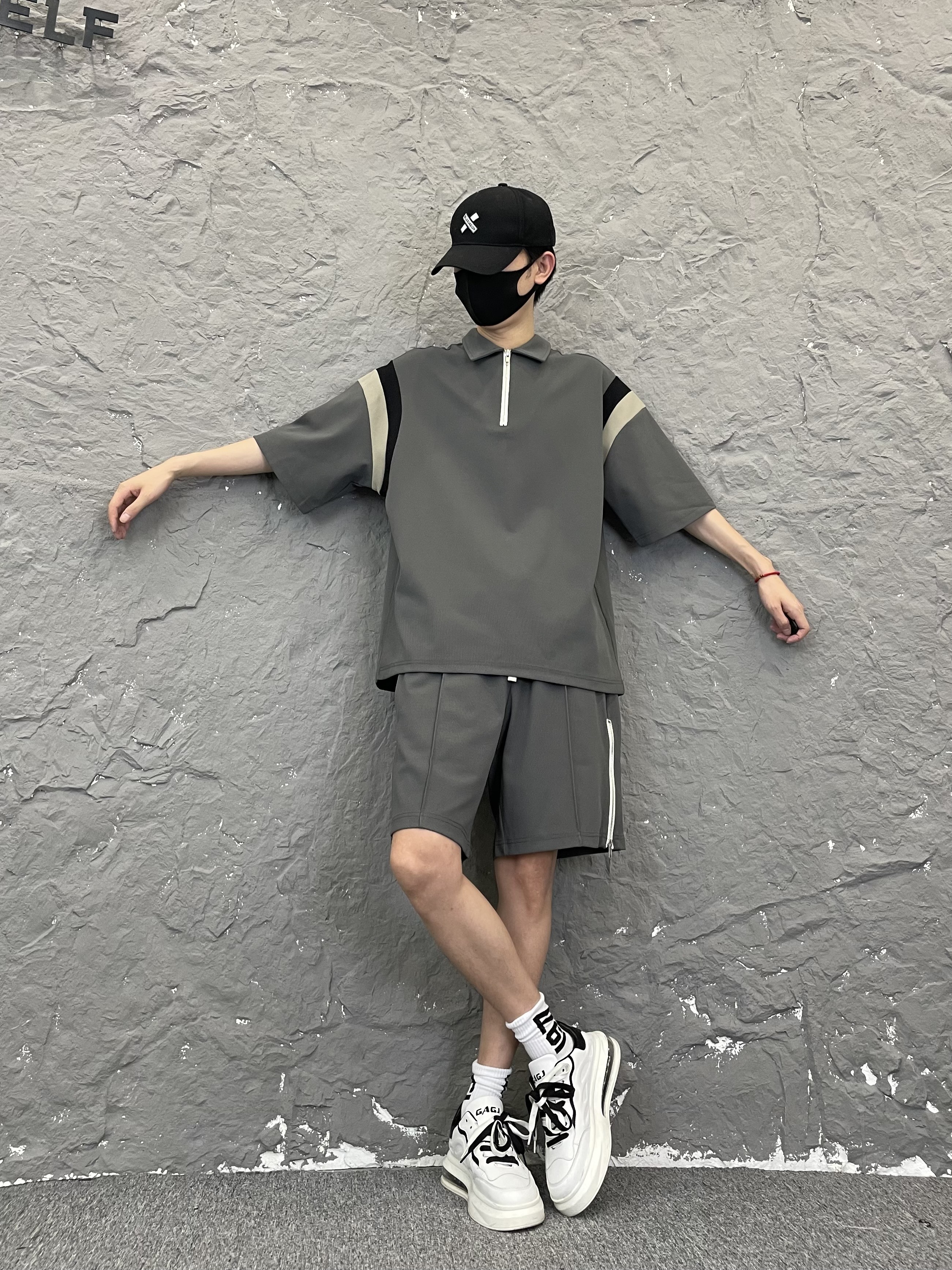 New Casual Fashion Suit, Summer Simple Zipper Polo Versatile Loose High-End Short-Sleeved Shorts Two-Piece Set