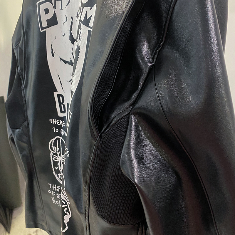 Glam Japanese Style New Jojo's Bizarre Adventure Stone Ghost Rider Jacket Pu Trendy Rock Print Unisex