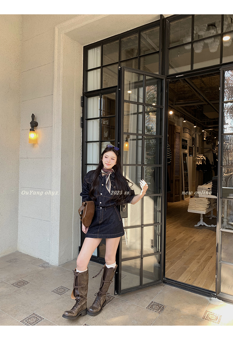 精裁衬衫牛仔裙型 生动演绎VTG街头型格