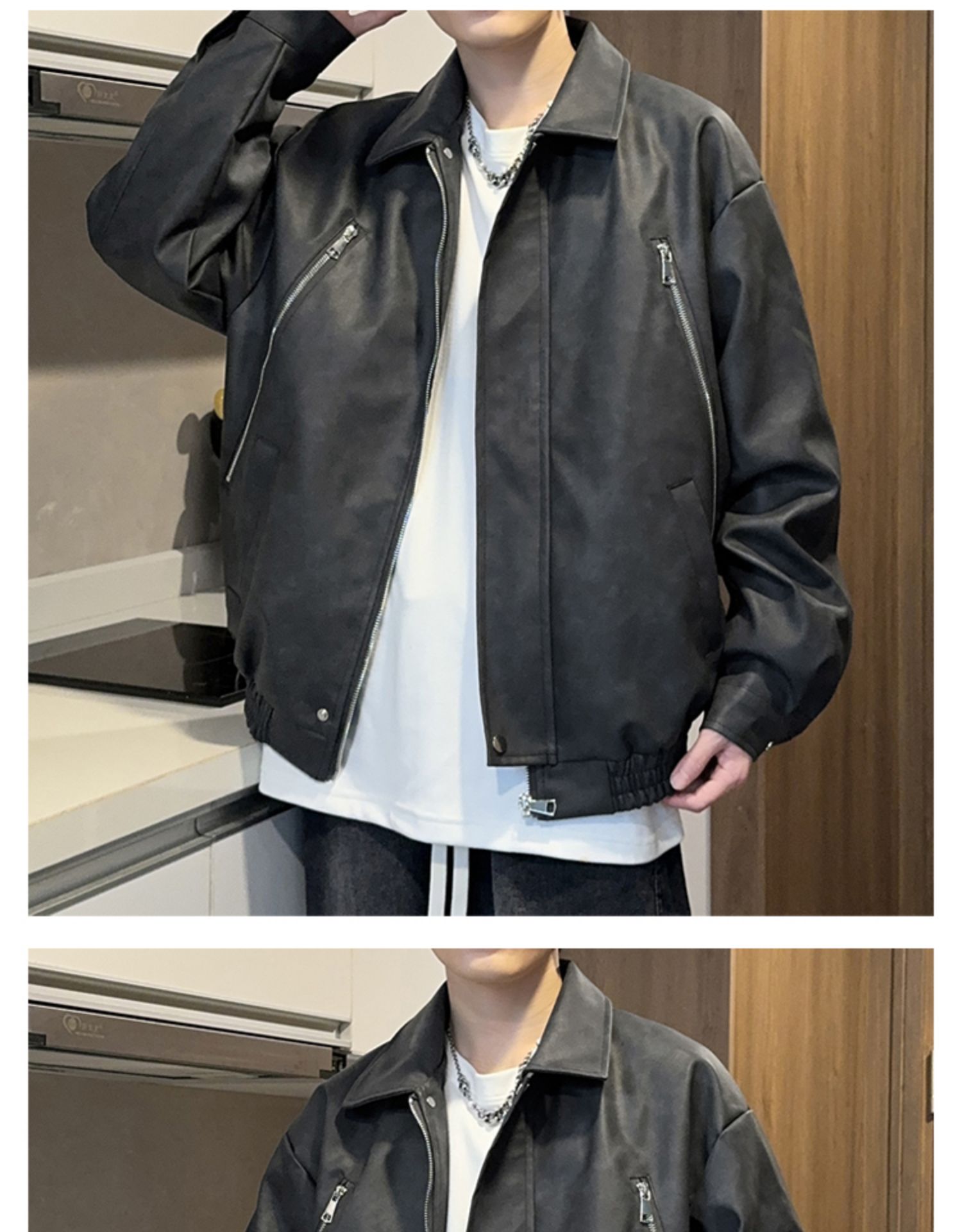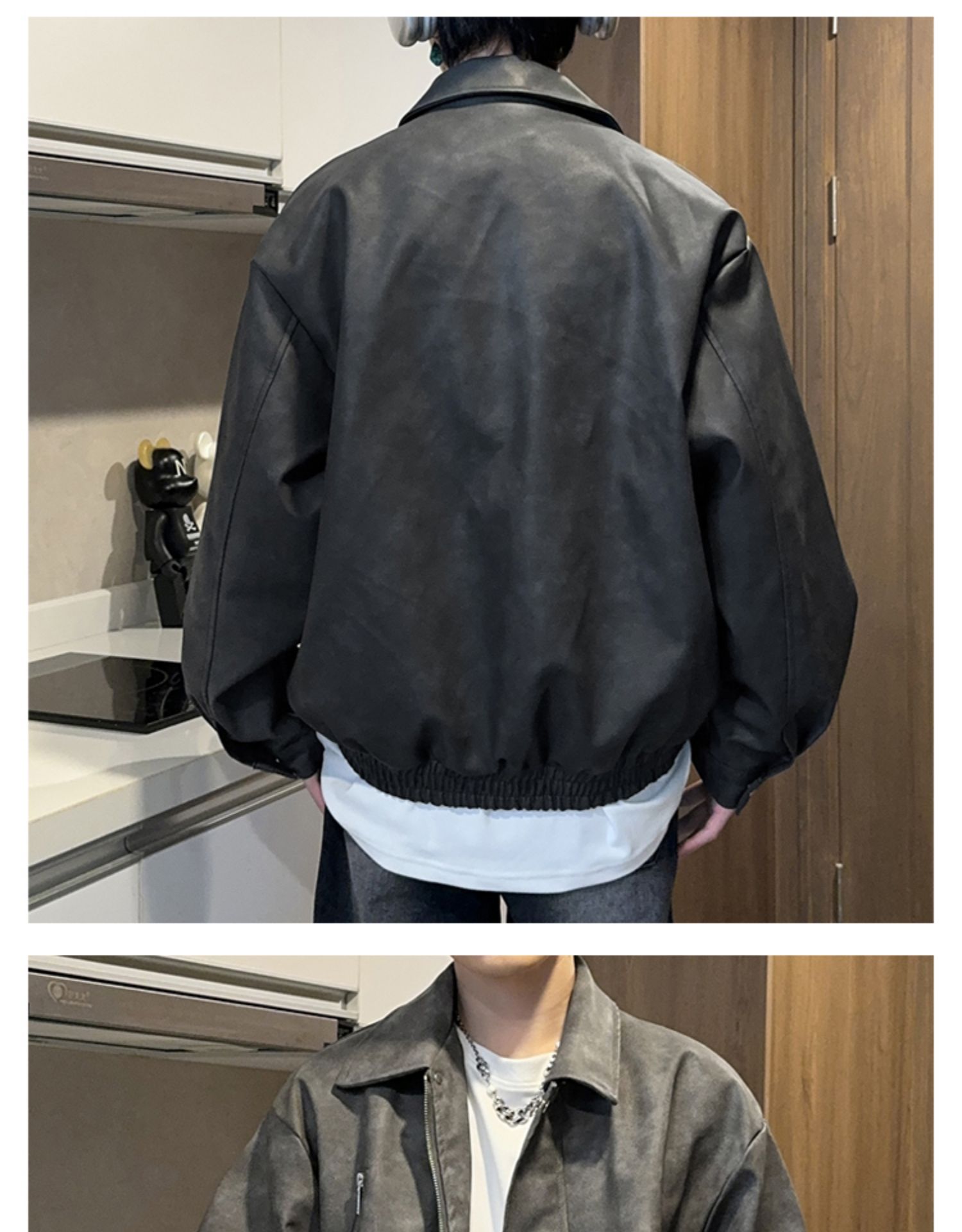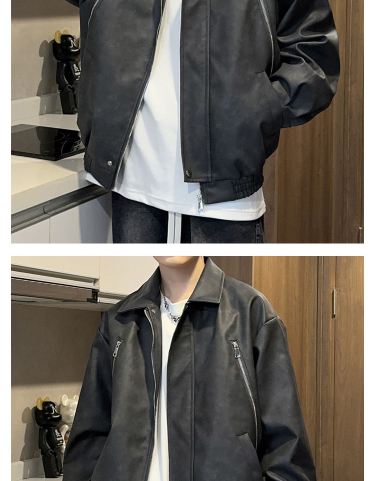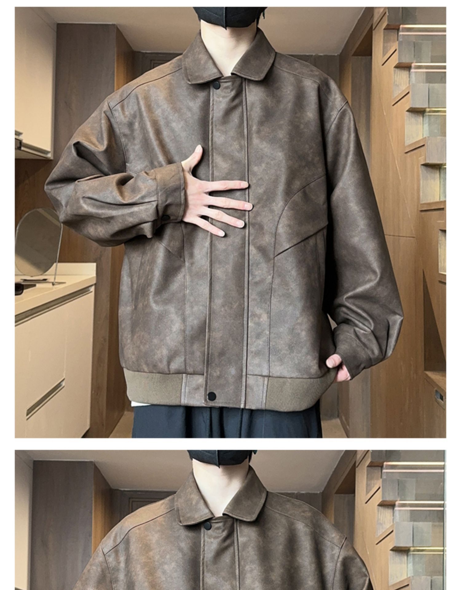 Soft Mountain Jujups American Retro Loose Leather Jacket Men's Coat Spring and Autumn Pu Leather Jacket Unisex Leather Jacket Men's Coat