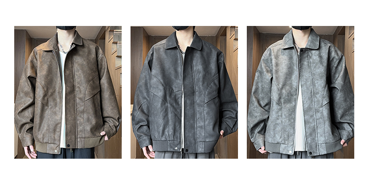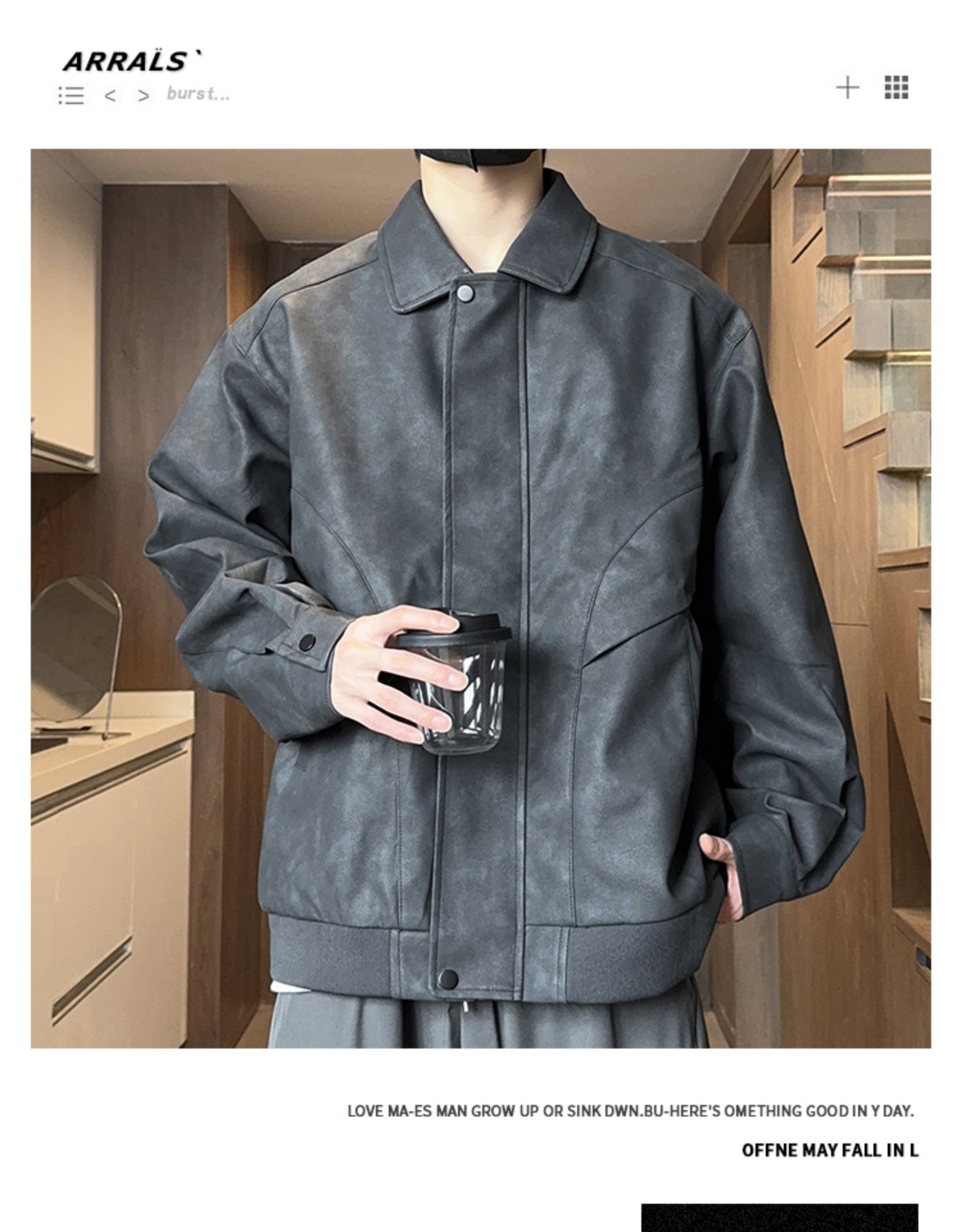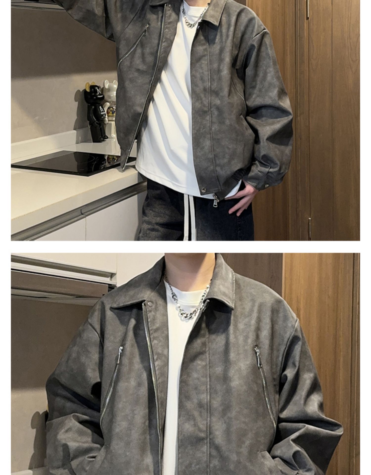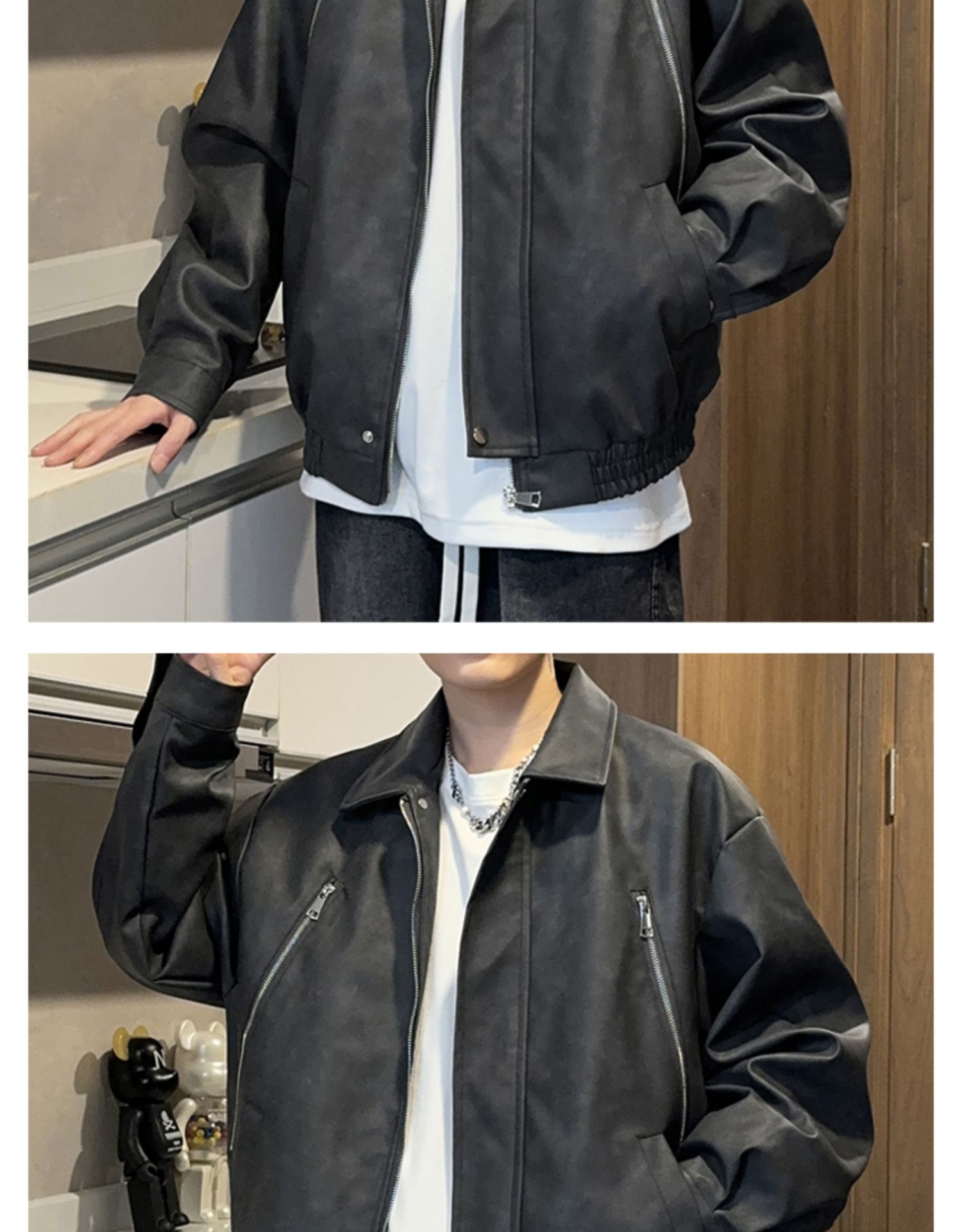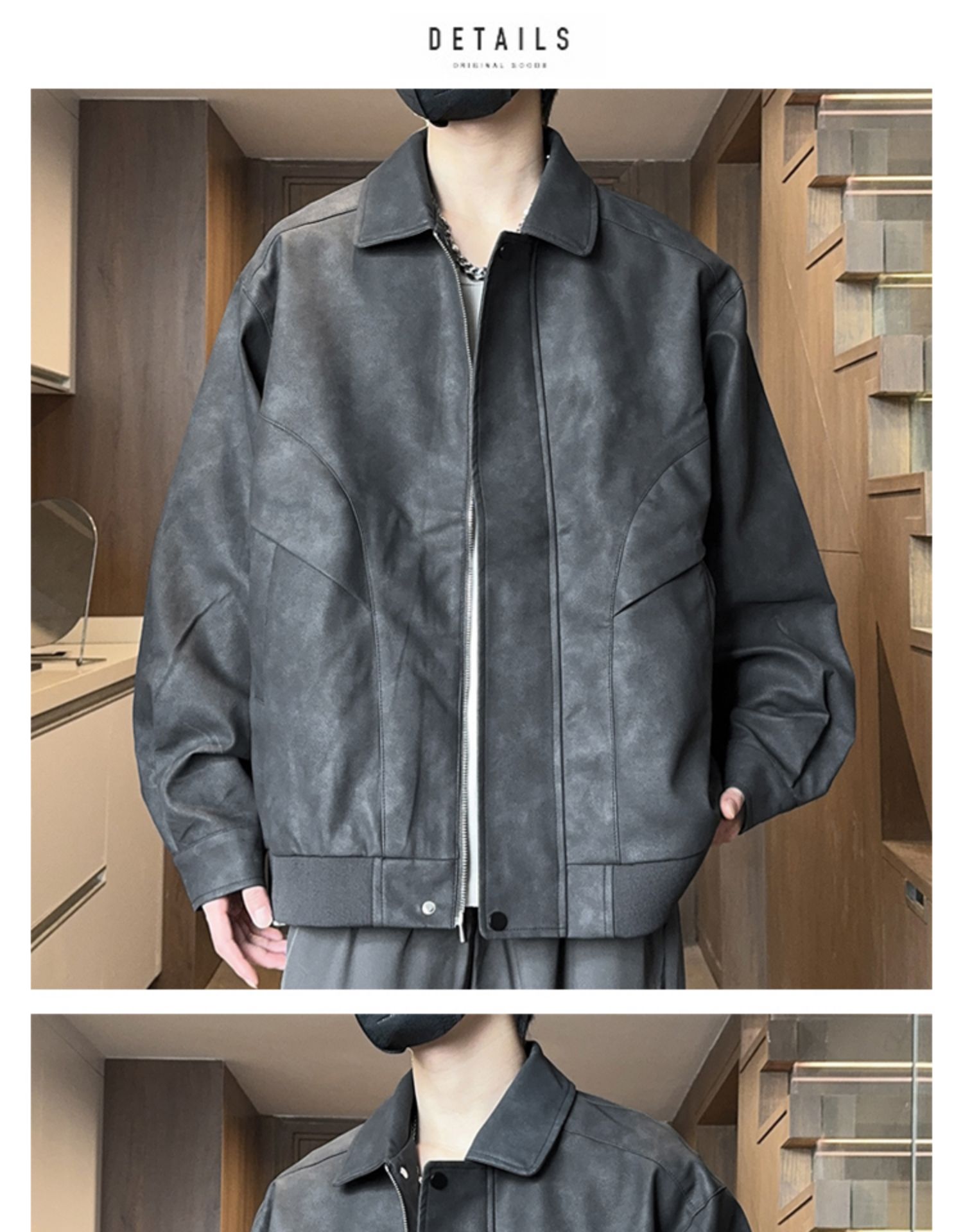 Soft Mountain Jujups American Retro Loose Leather Jacket Men's Coat Spring and Autumn Pu Leather Jacket Unisex Leather Jacket Men's Coat