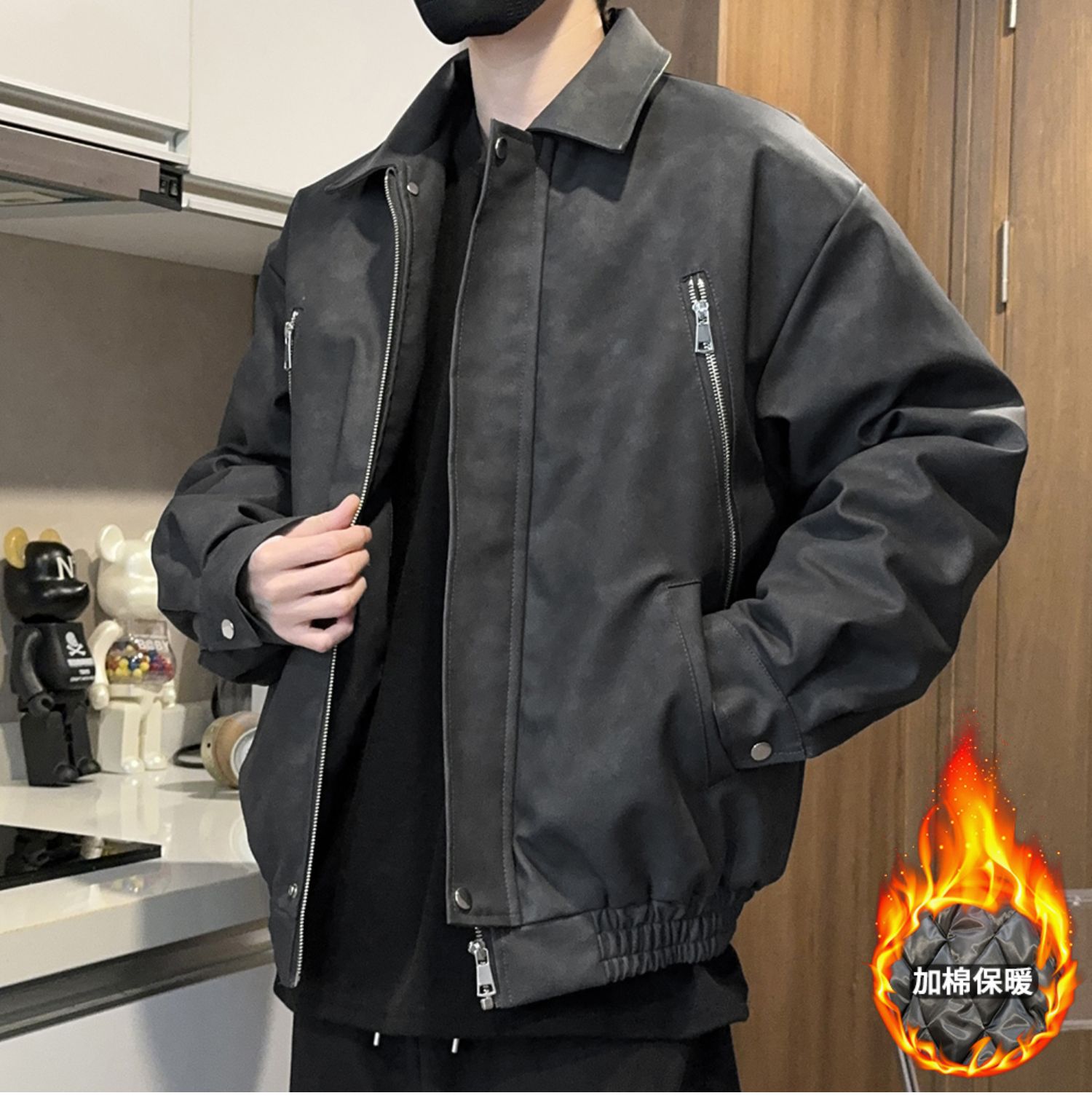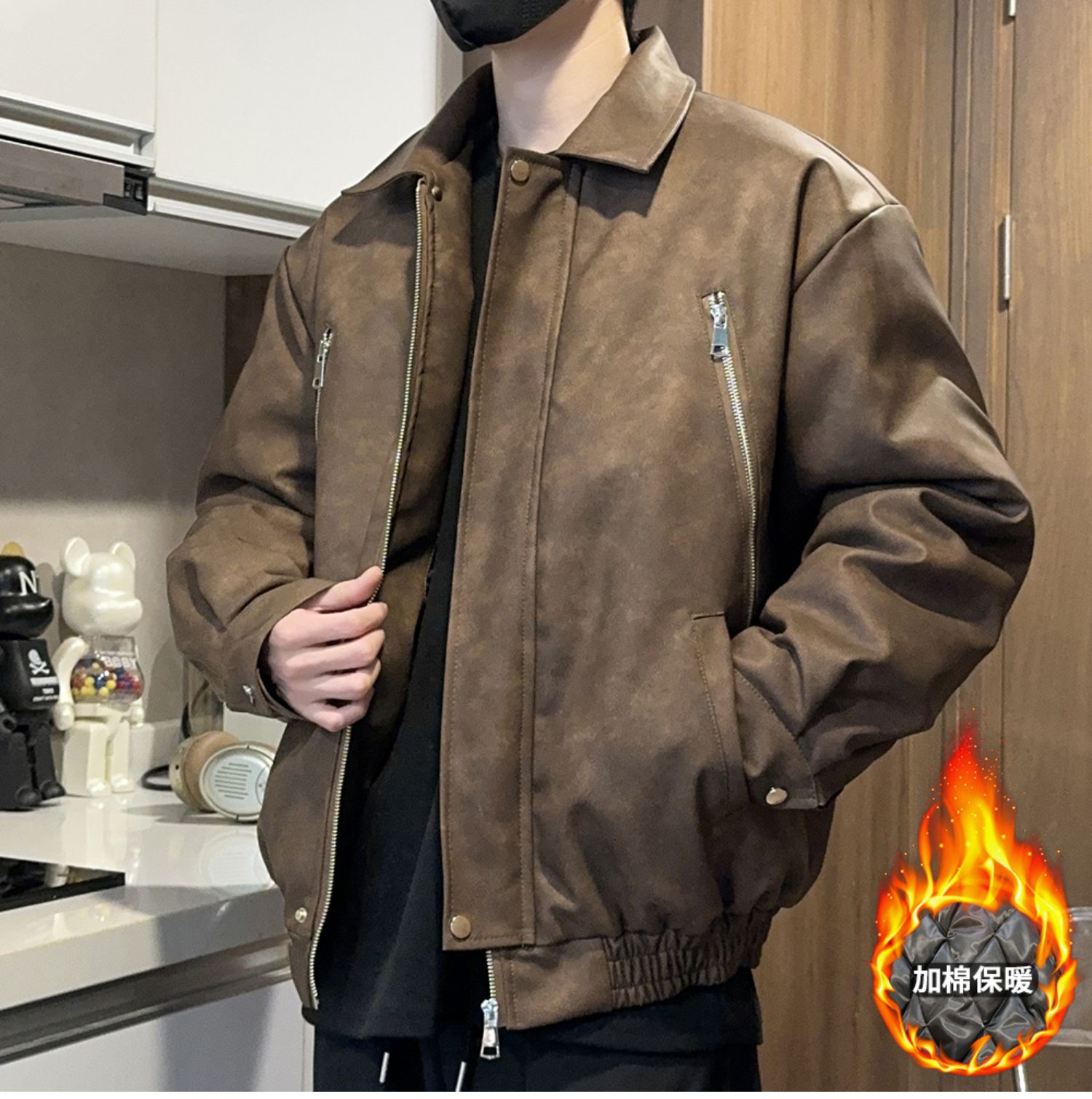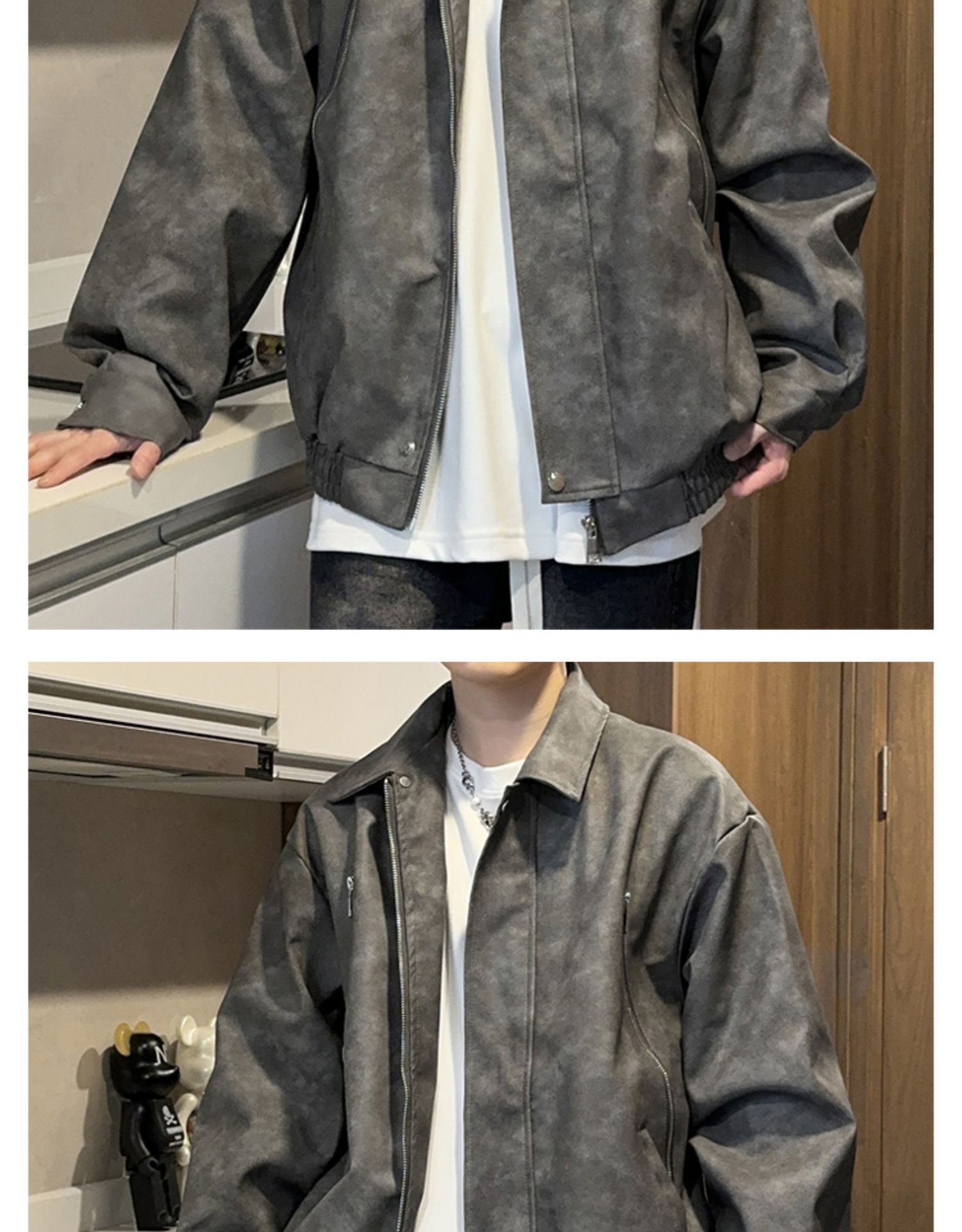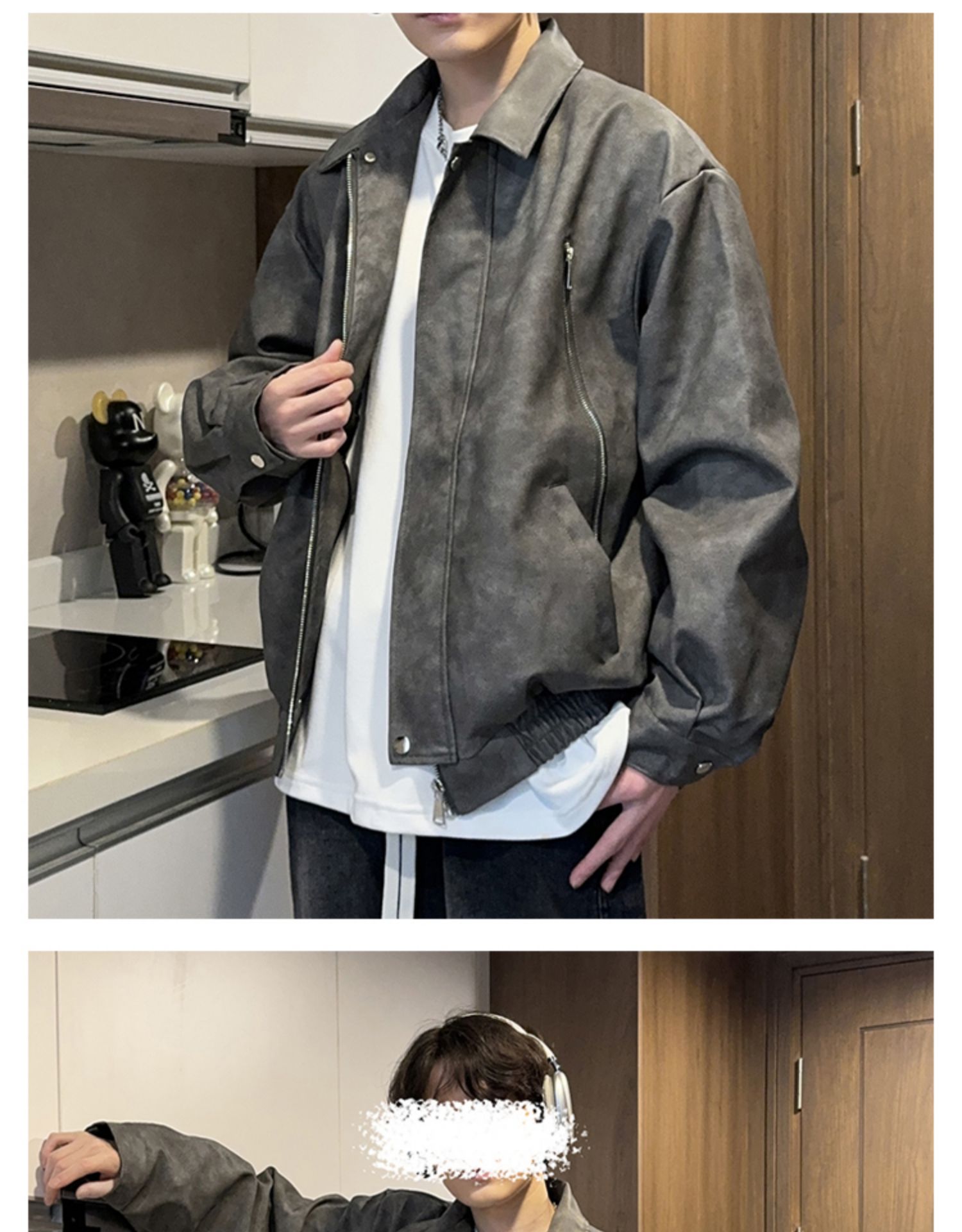 Soft Mountain Jujups American Retro Loose Leather Jacket Men's Coat Spring and Autumn Pu Leather Jacket Unisex Leather Jacket Men's Coat