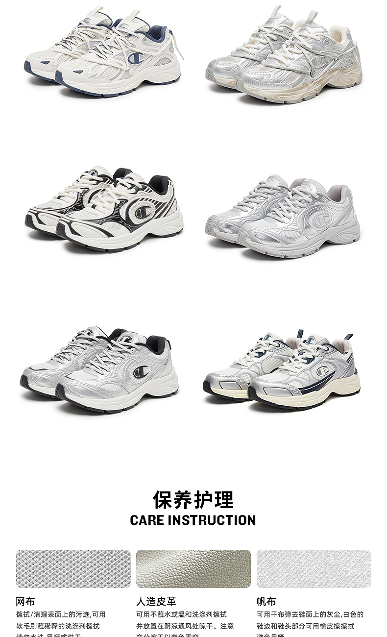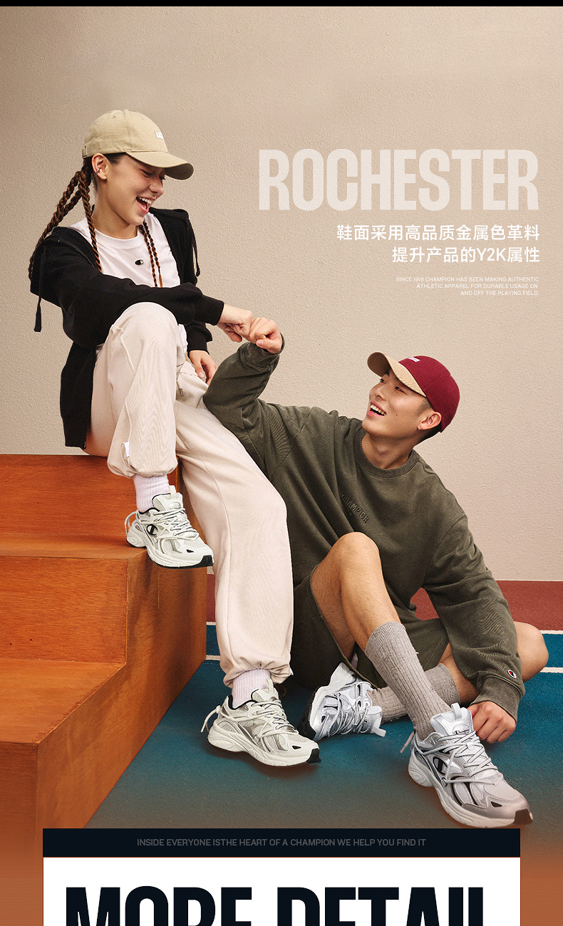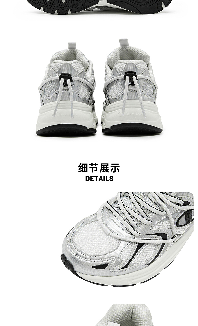 Champion Casual Shoes 2025 Autumn and Winter New Men's Commuter Lace-Up Retro Running Shoes Trendy Women's Shoes Silver