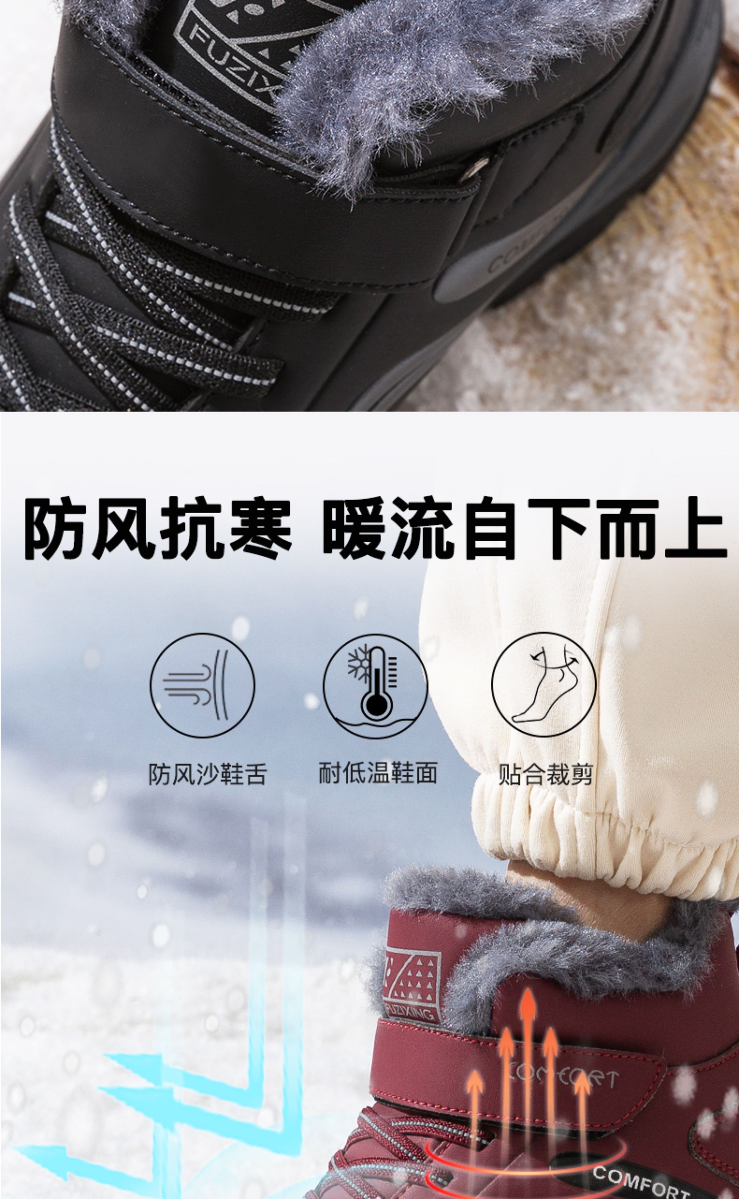 Fuzixing 2025 Mid-Top Thick Fleece High-Performance Rubber Non-Slip Sole Elderly Shoes Men's Waterproof Middle-Aged and Elderly Shoes Snow Boots