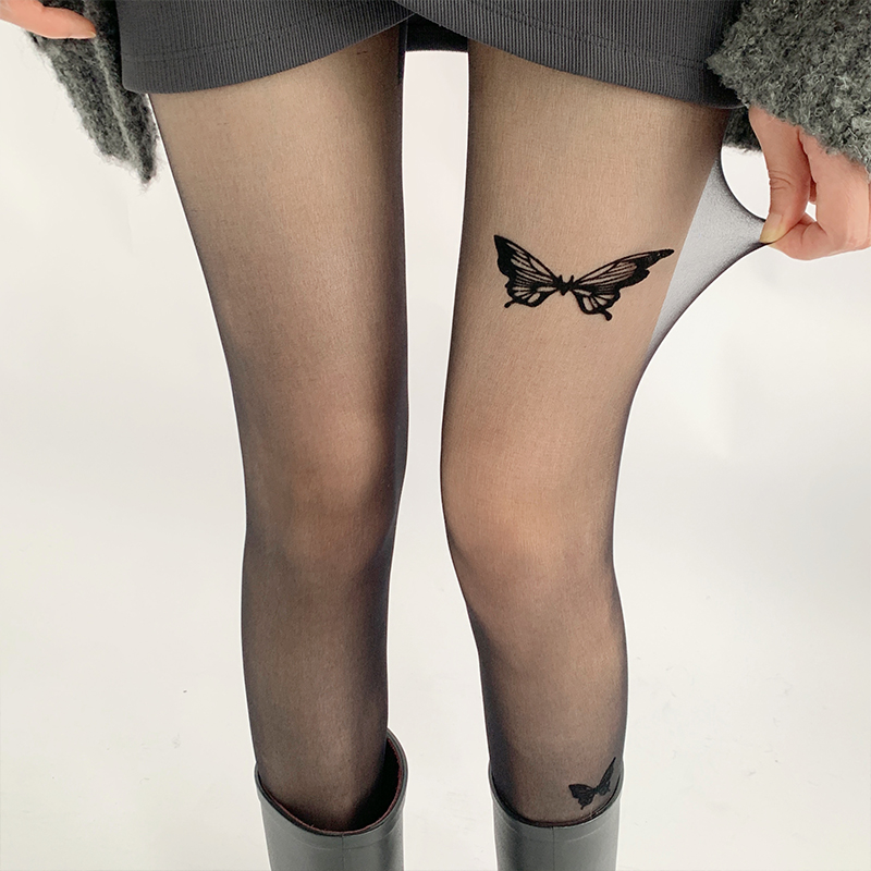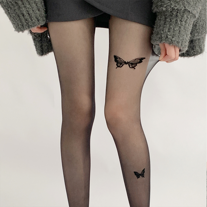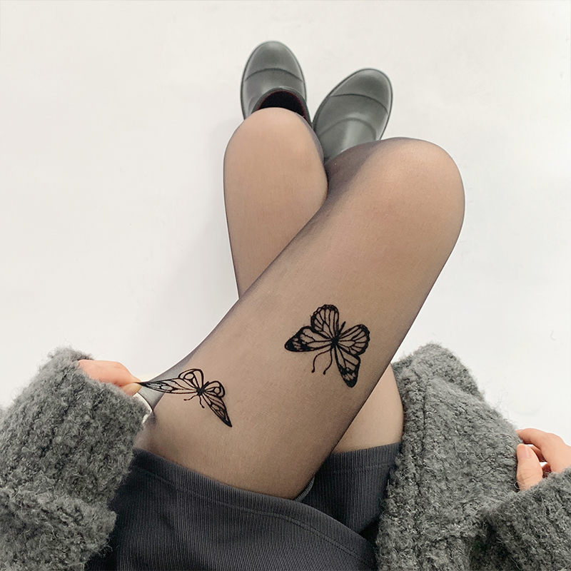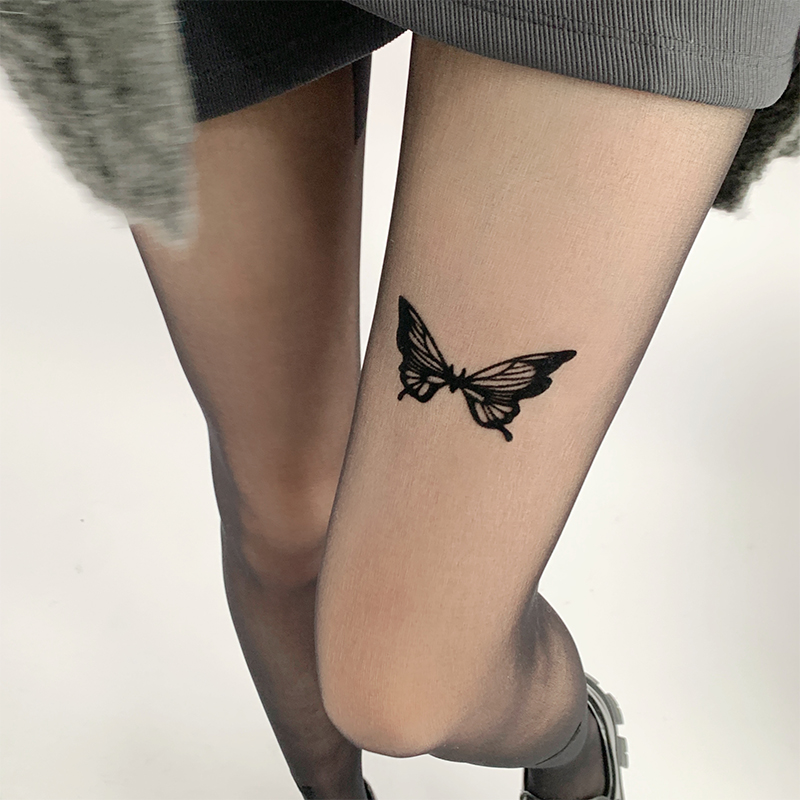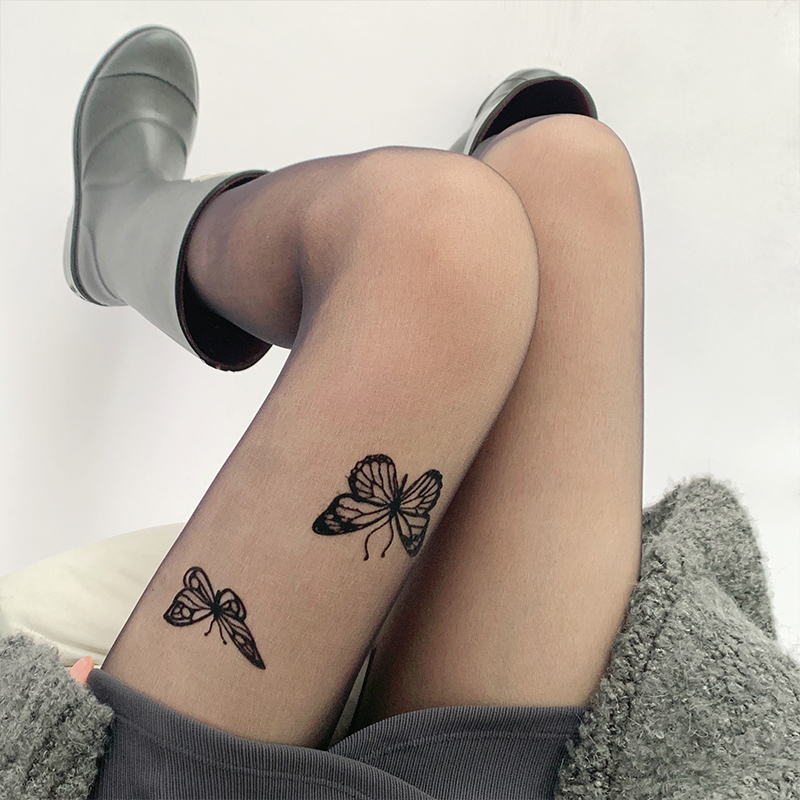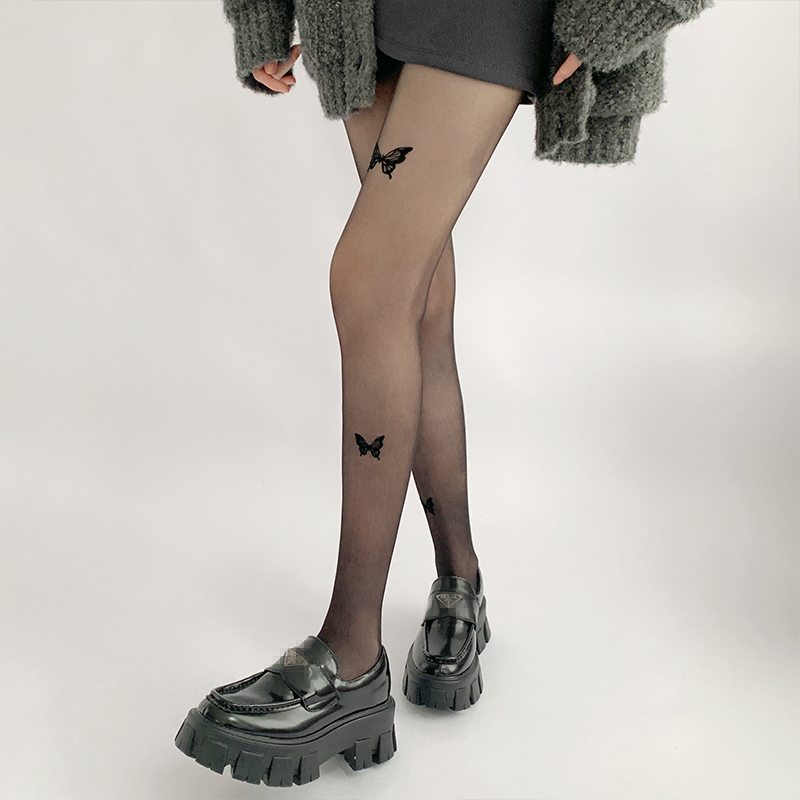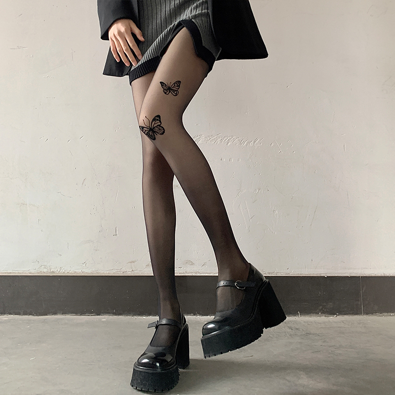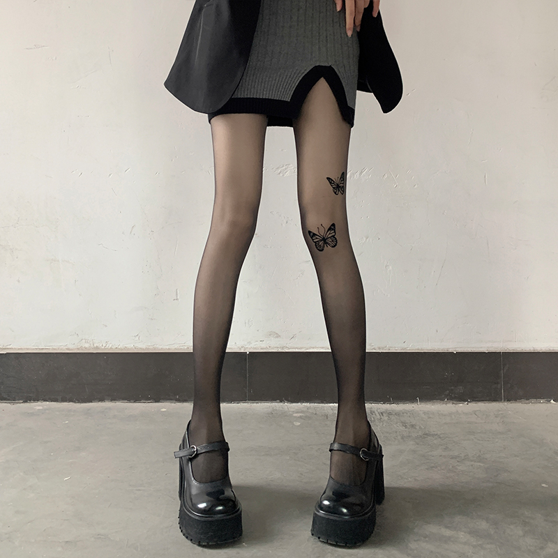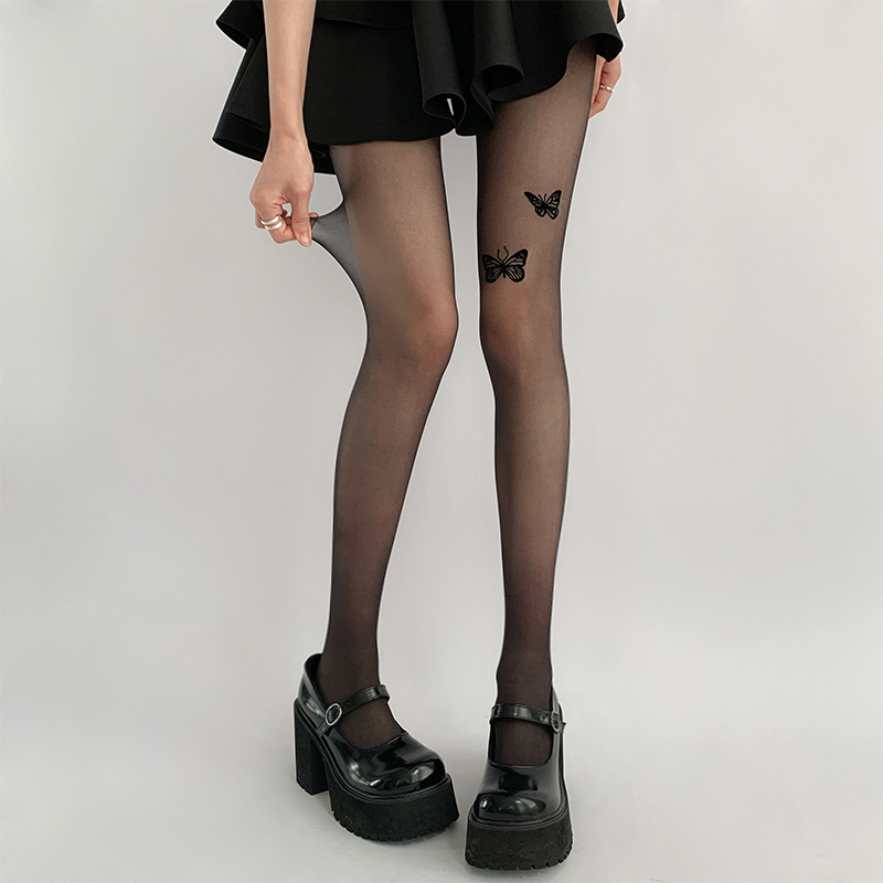 Nighttime Classroom Black Bow Stockings Women's Summer Thin Sexy Black Pantyhose Cute Print Lolita
