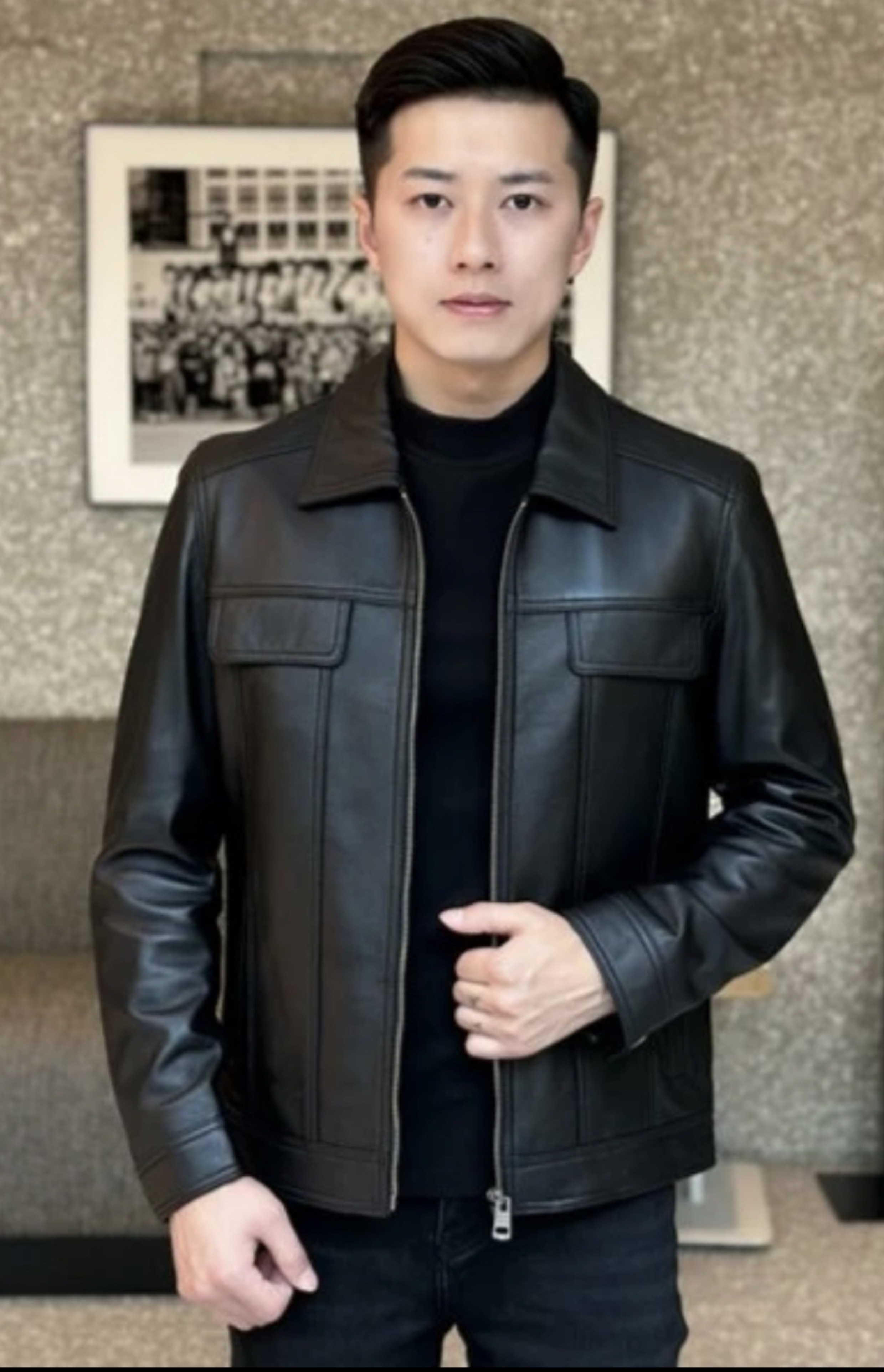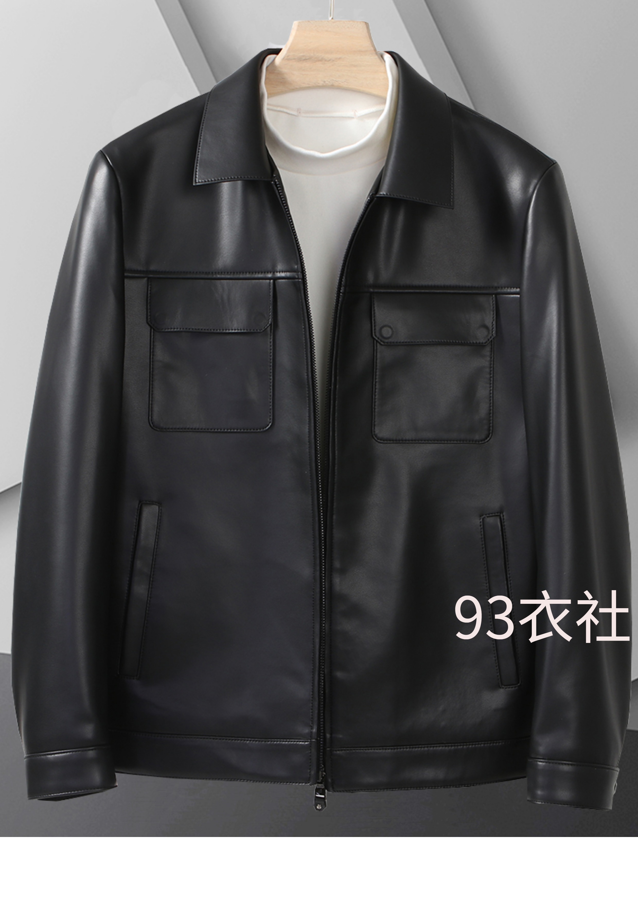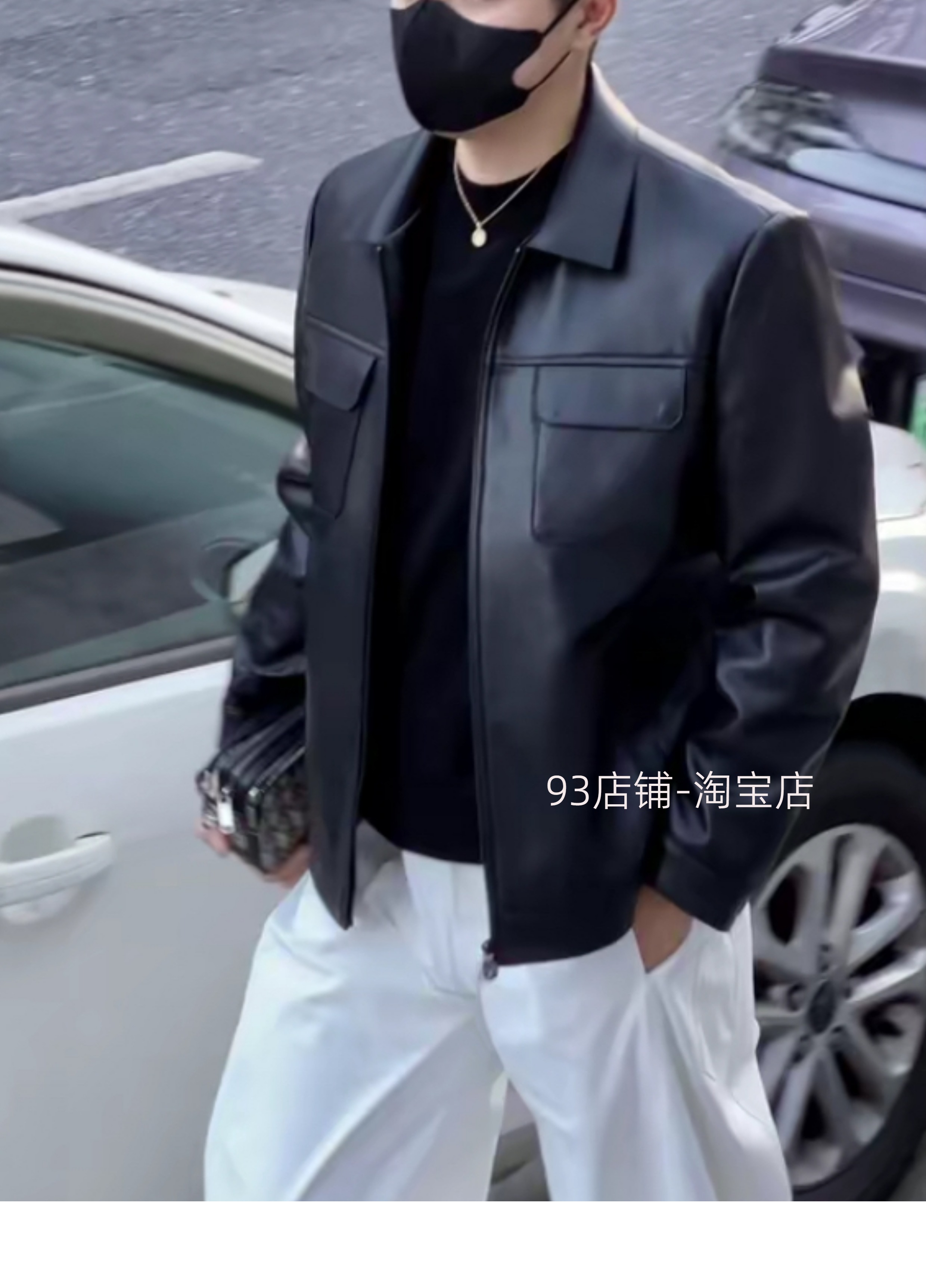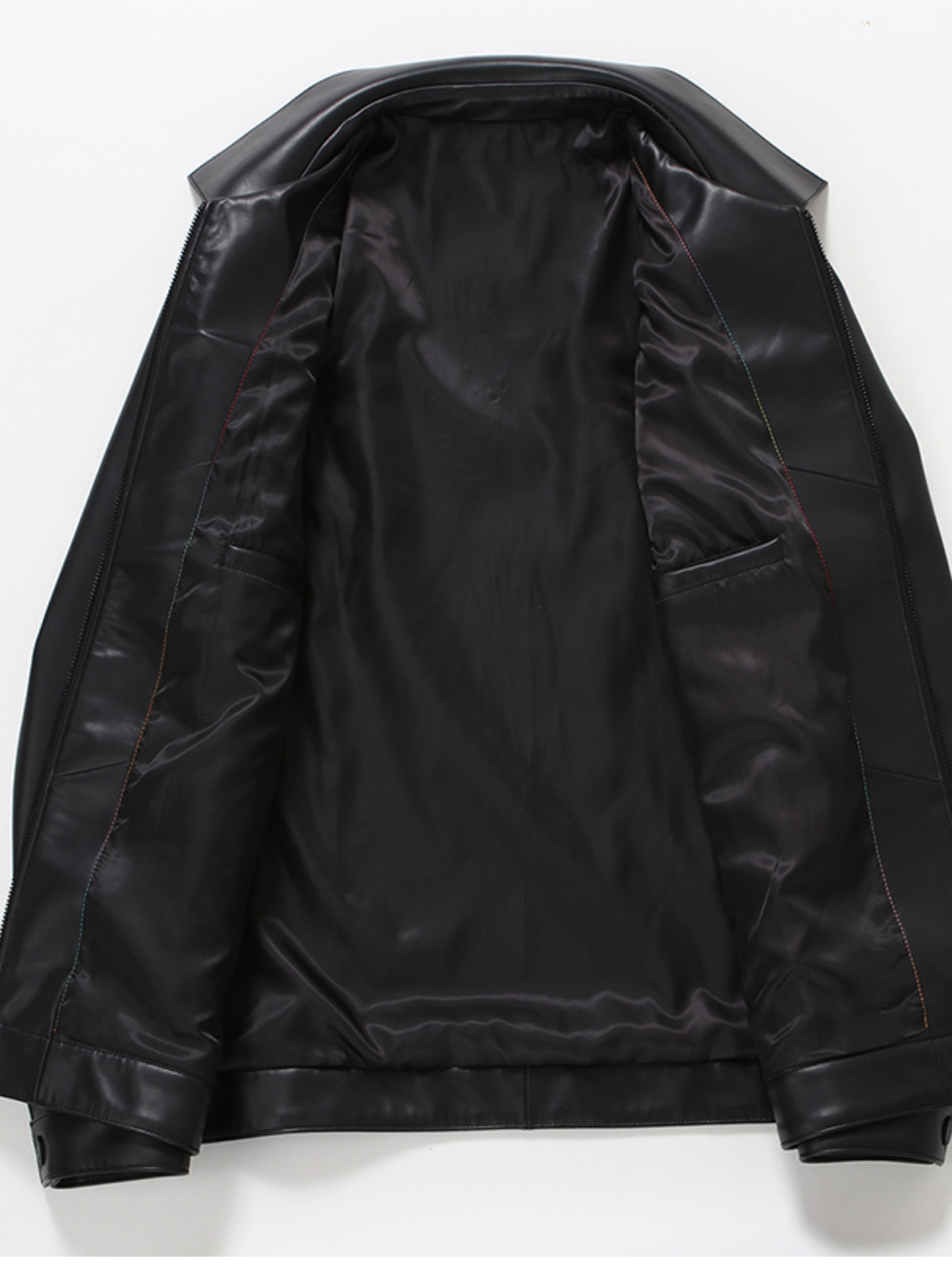 Spring and Autumn Heavy-Duty Genuine Leather Jacket for Men, Slim-Fit Workwear Style, Sheepskin Coat, Business Casual Lapel Leather Jacket