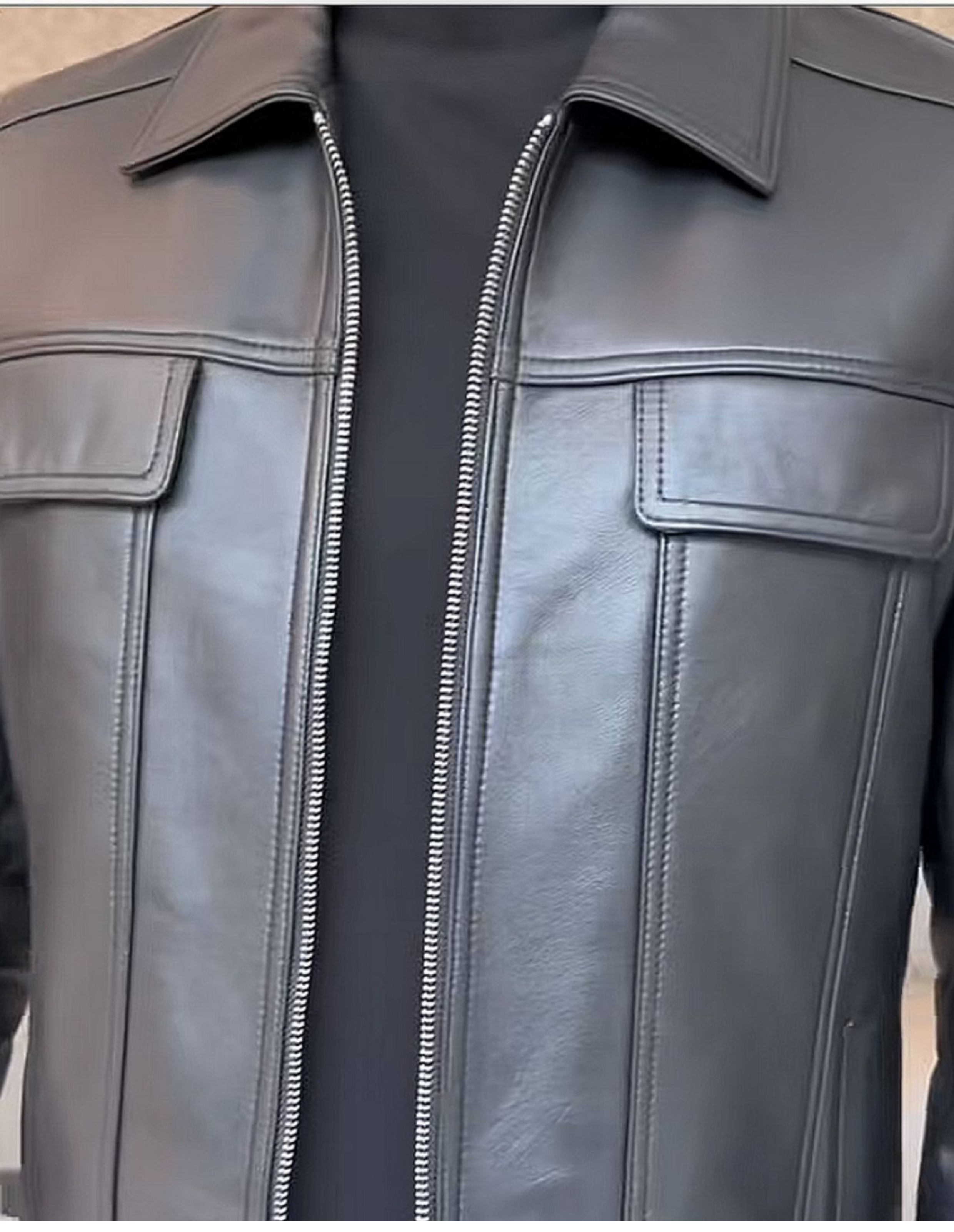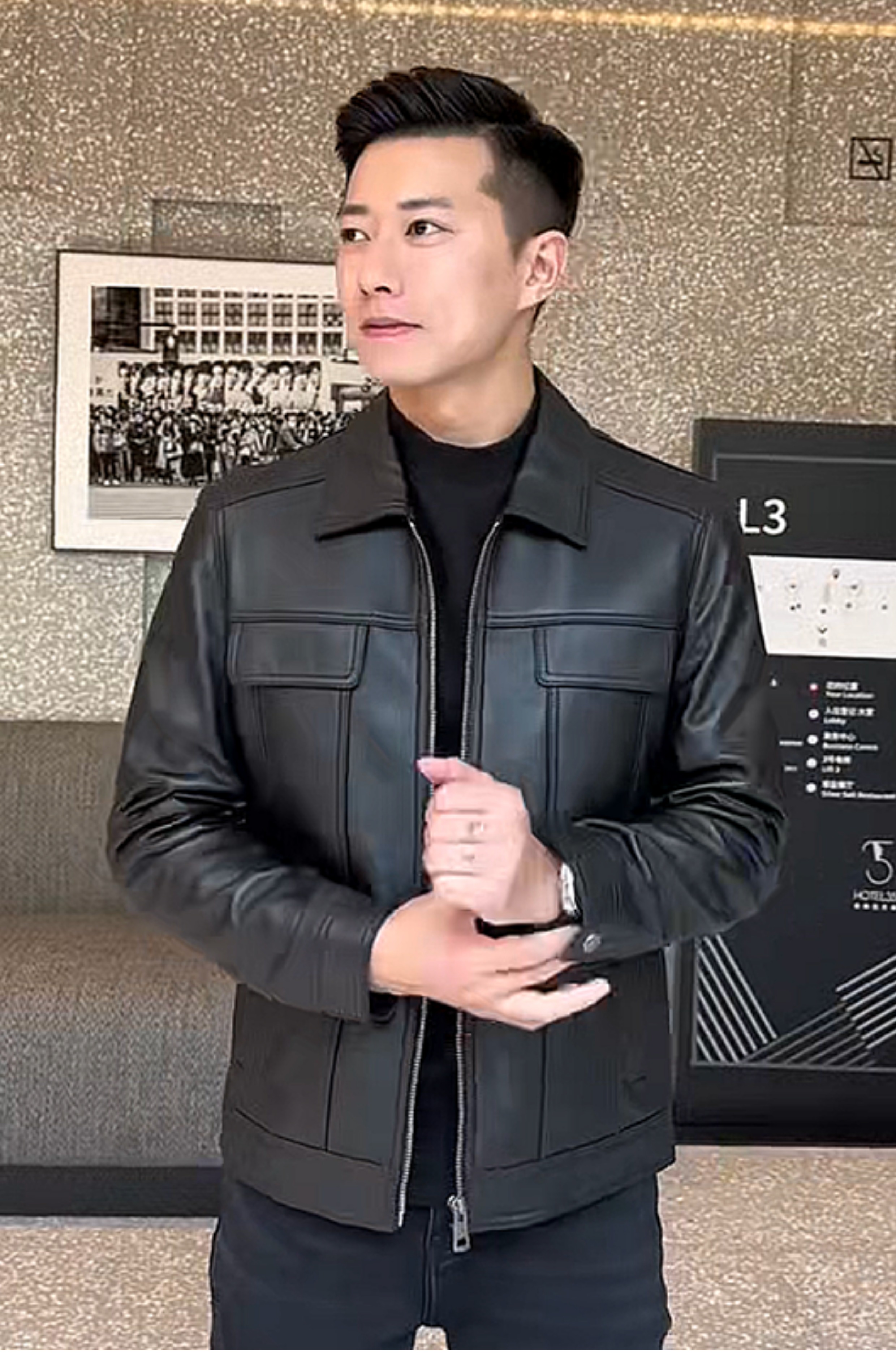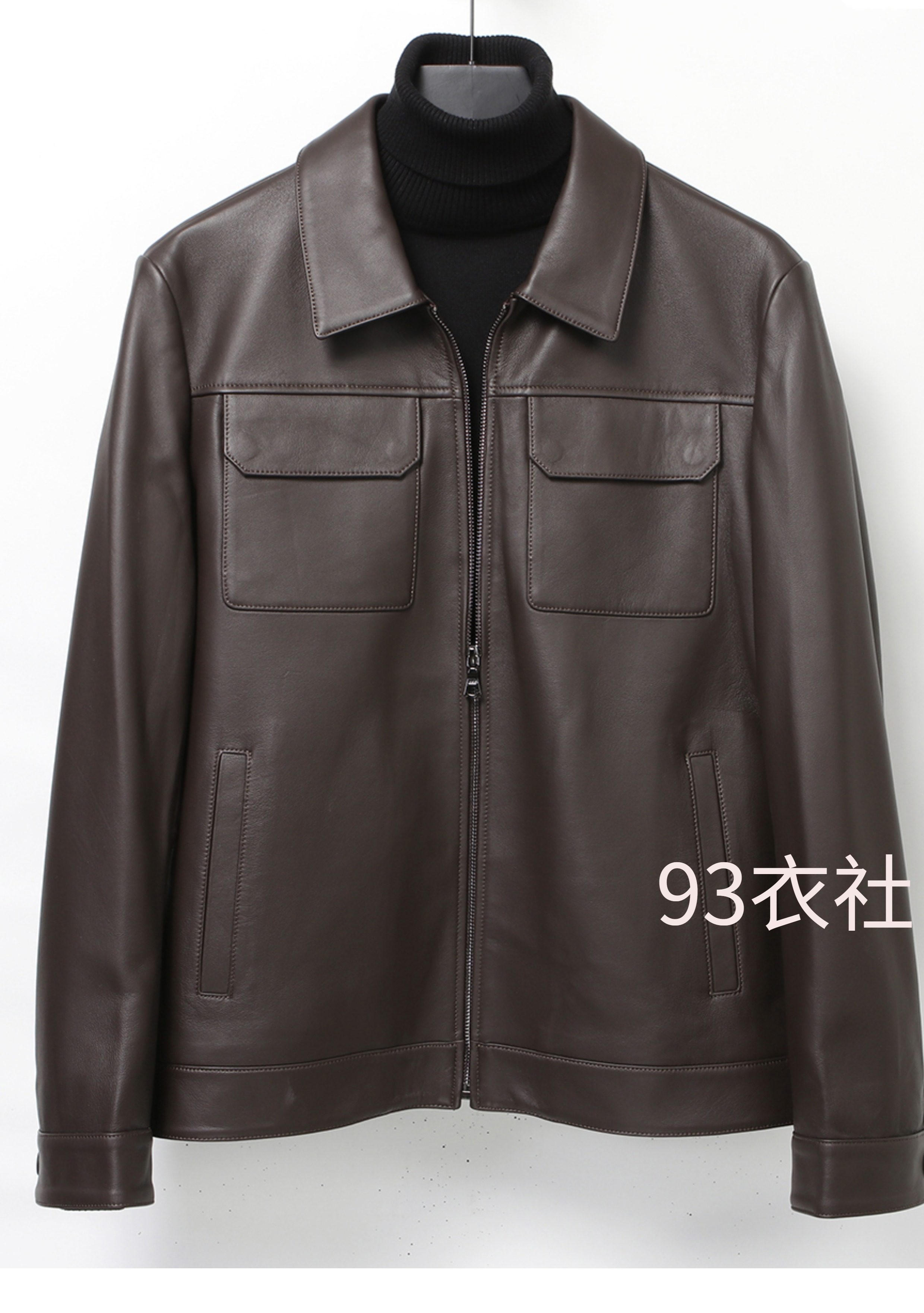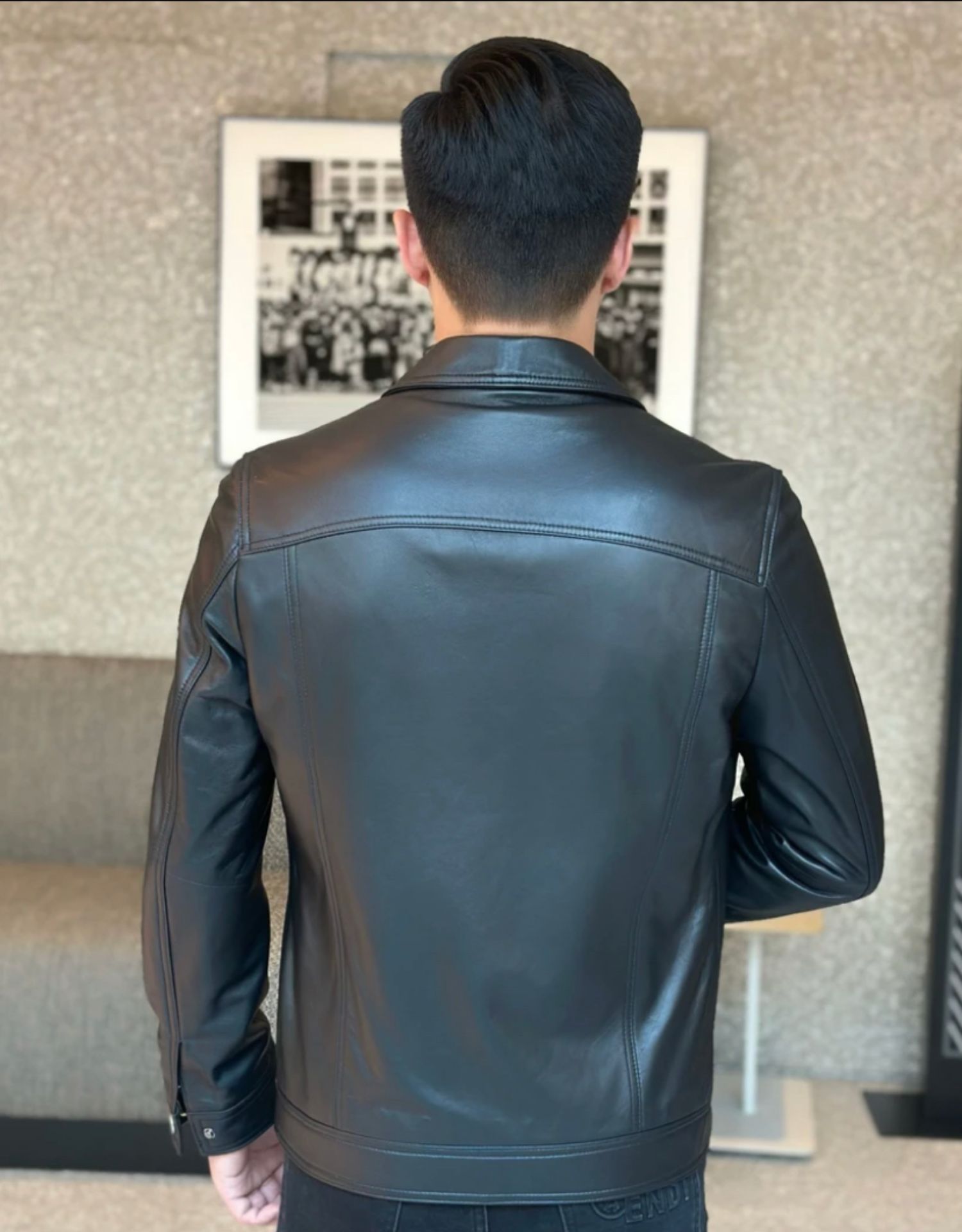 Spring and Autumn Heavy-Duty Genuine Leather Jacket for Men, Slim-Fit Workwear Style, Sheepskin Coat, Business Casual Lapel Leather Jacket