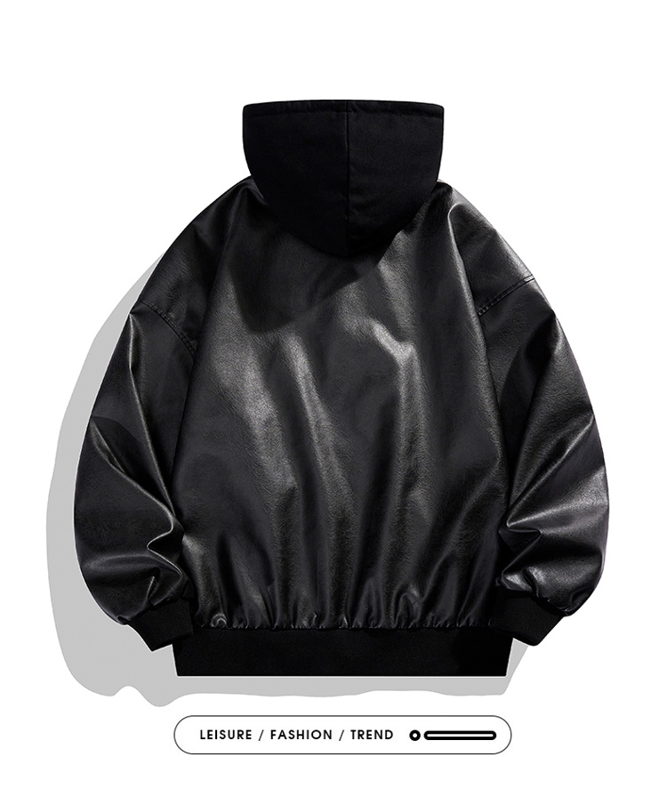 Nasa Co-Branded American Retro Pu Leather Jacket for Men and Women, Hooded Jacket, Thickeneded Loose Casual Jacket for Couples in Autumn and Winter