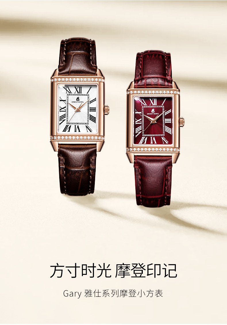 Swiss Eberlu Leather Strap Small Square Watch, Vintage Style Quartz Watch, Women's Watch, Ladies' High-End Watch