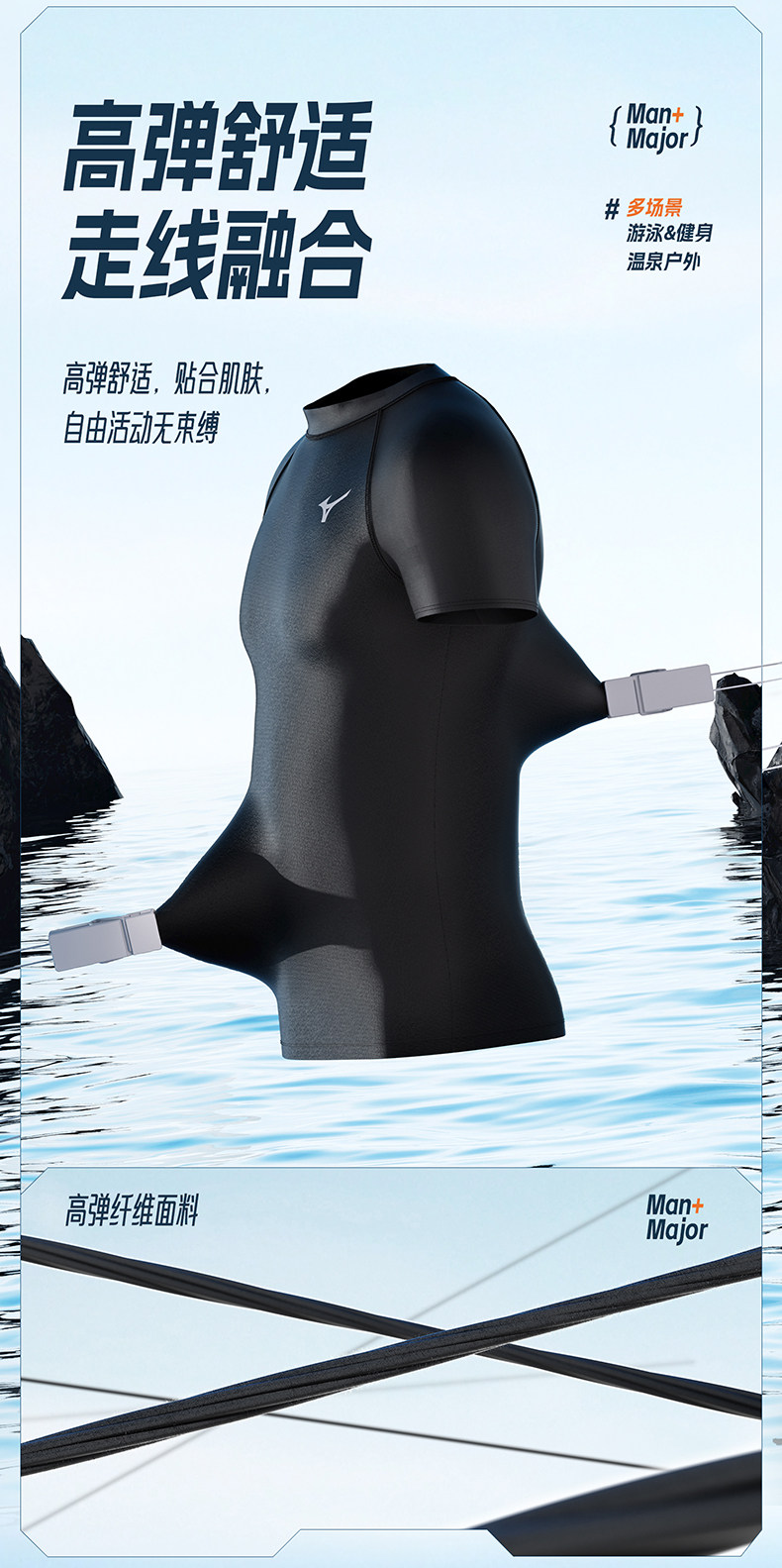 Mizuno Men's Swimsuit and Swim Trunks Set for Adults, Anti-Embarrassment, Professional Quick-Drying, Sun Protection Top, Complete Swimming Equipment Set
