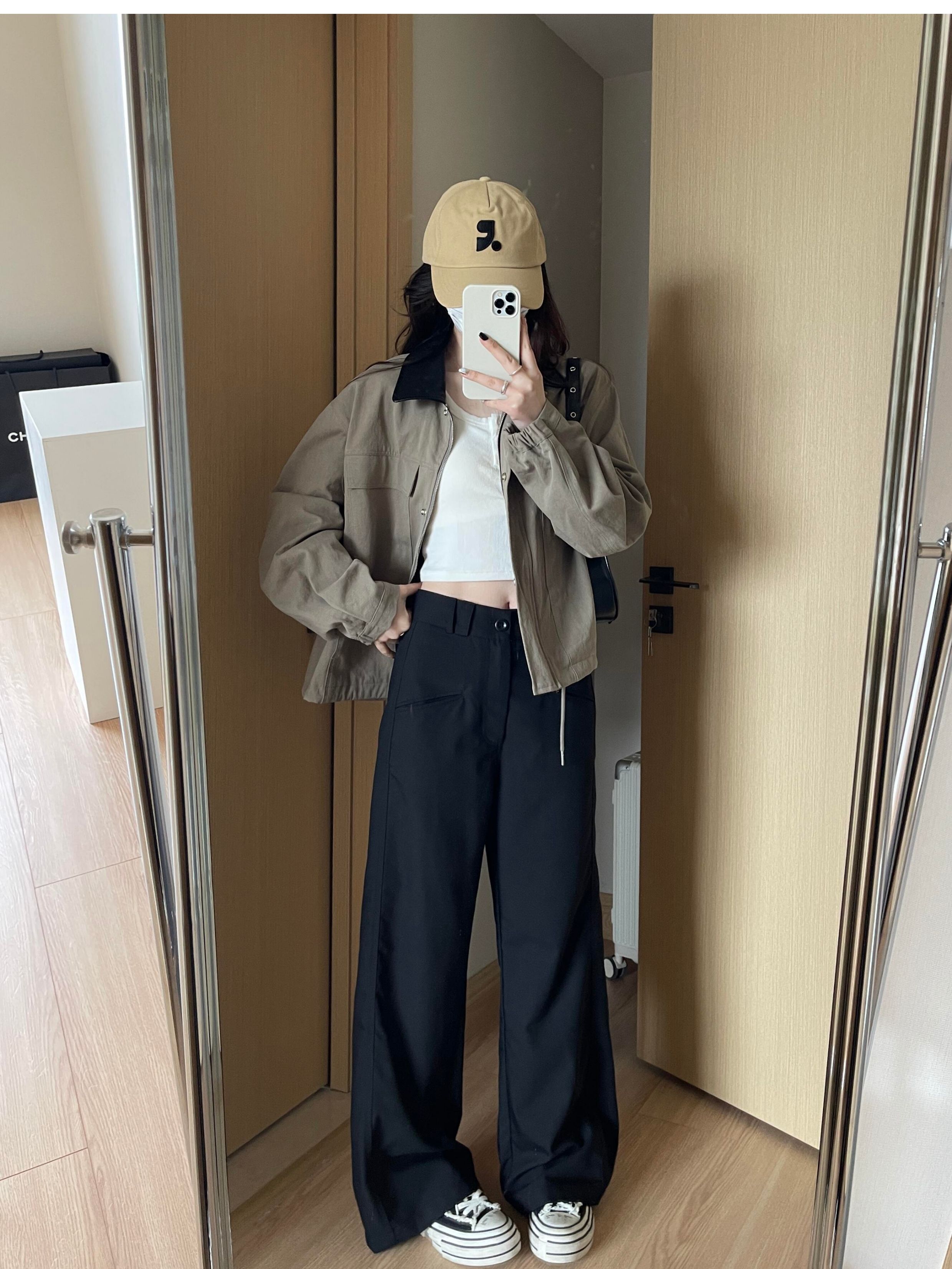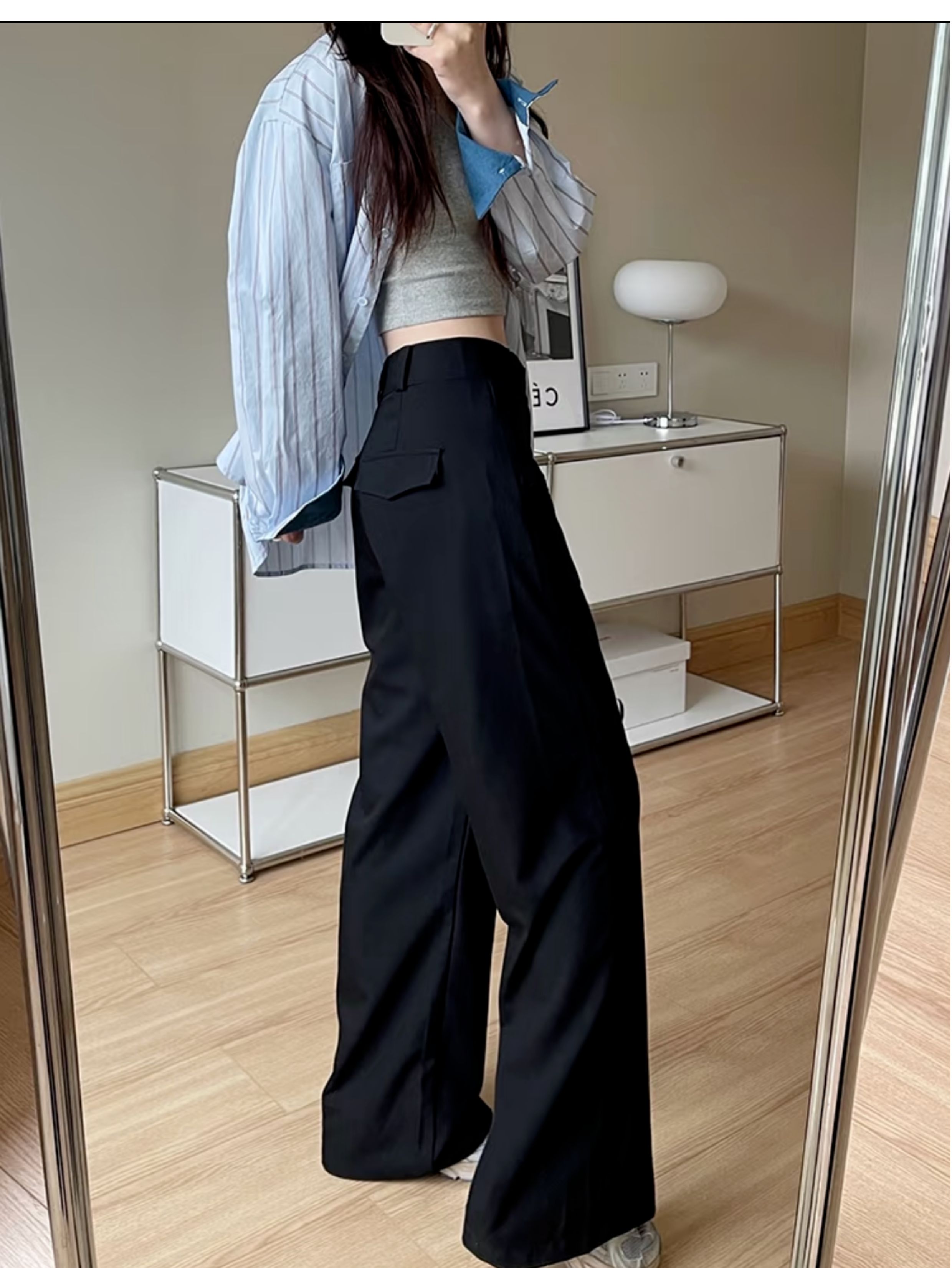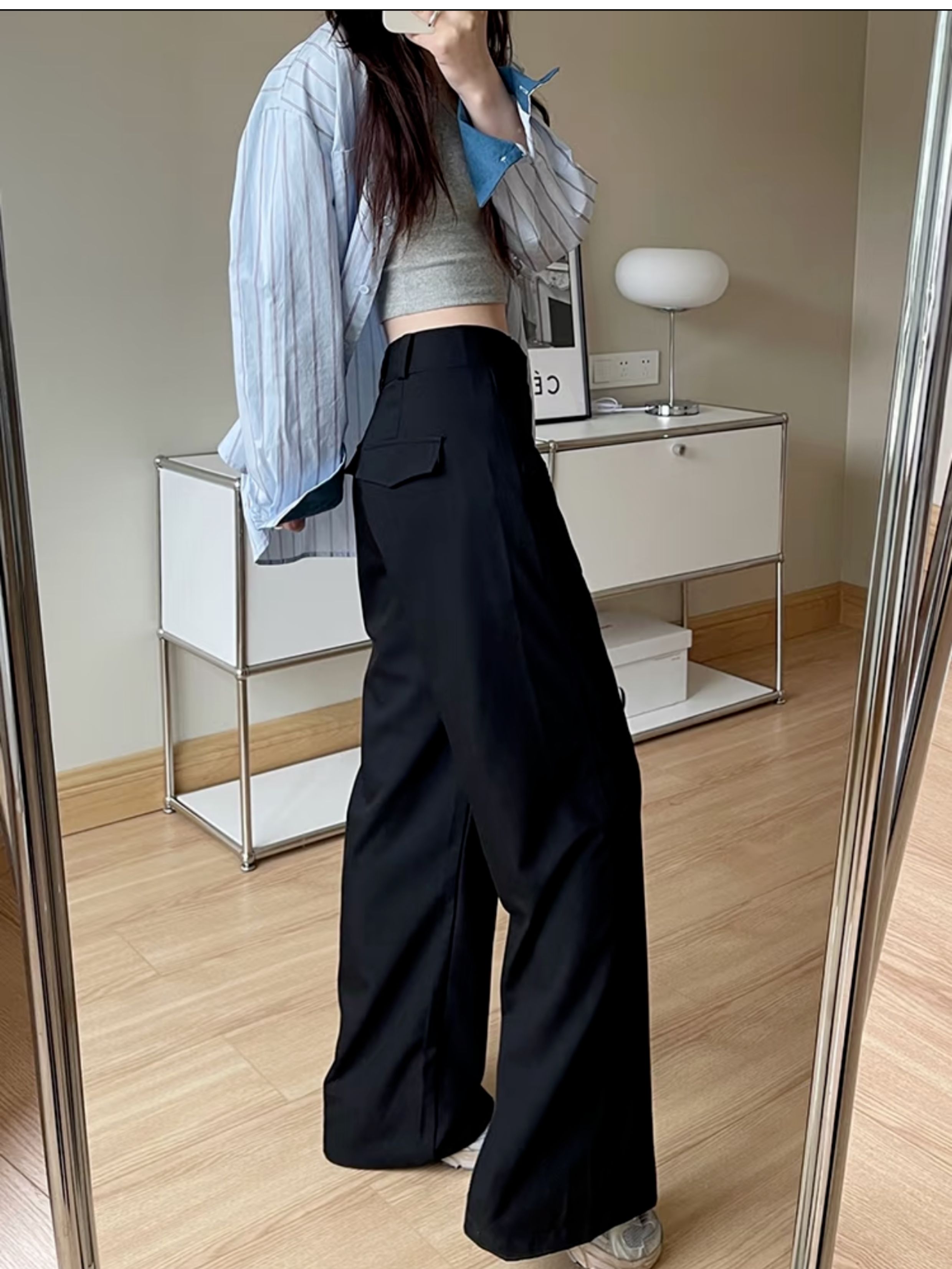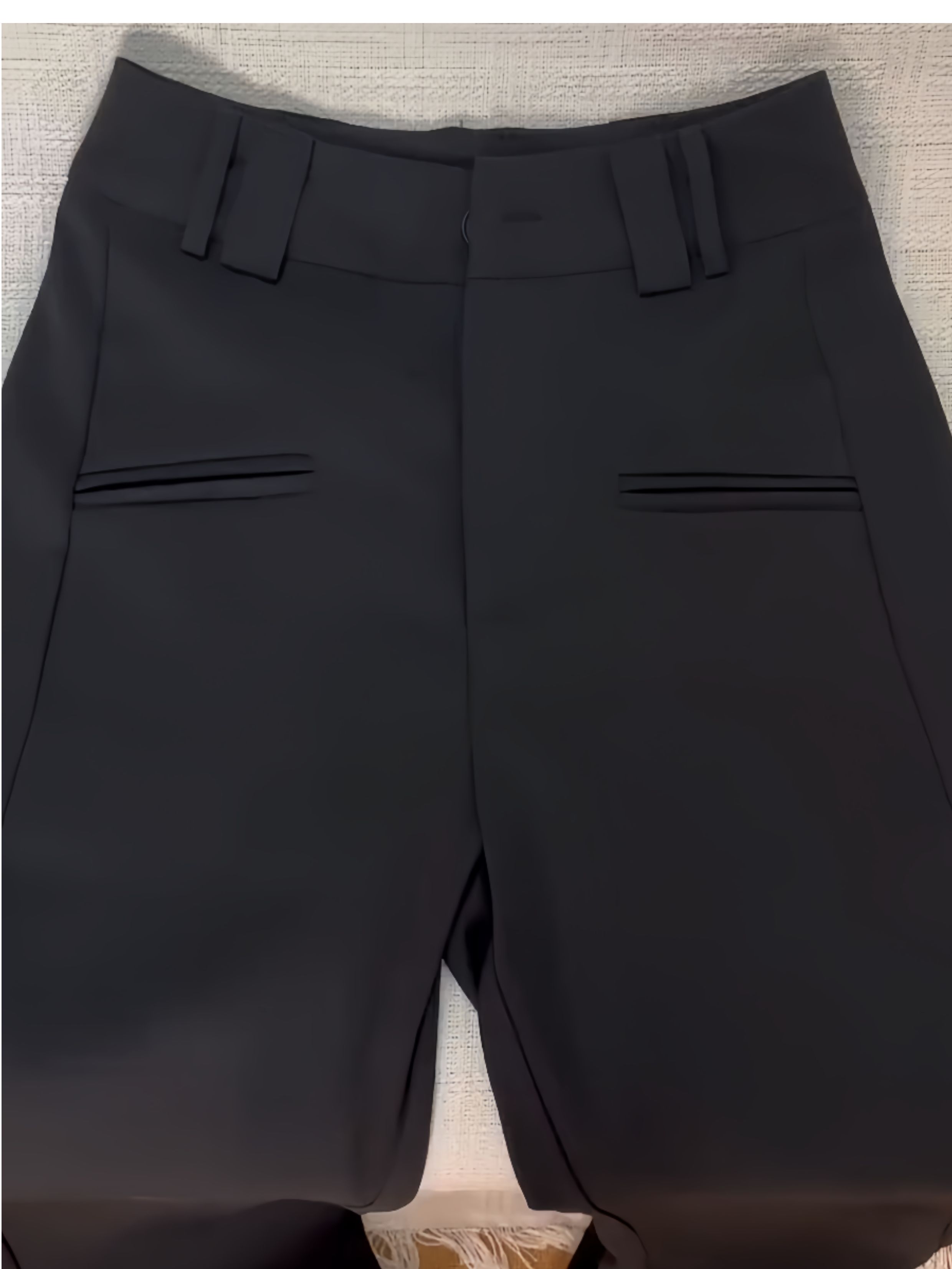 Pear-Shaped Straight Black Slim-Fit Flared Suit Pants with a Unique Design, Wide-Leg, High-Waisted, Drapey, Casual Long Pants for Women, Slimming