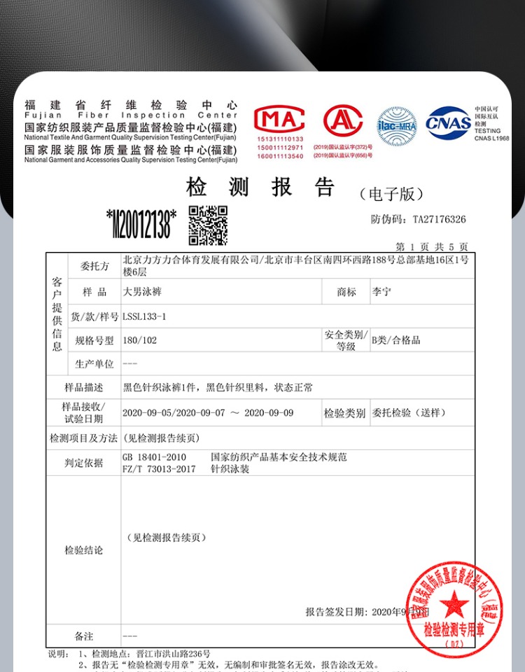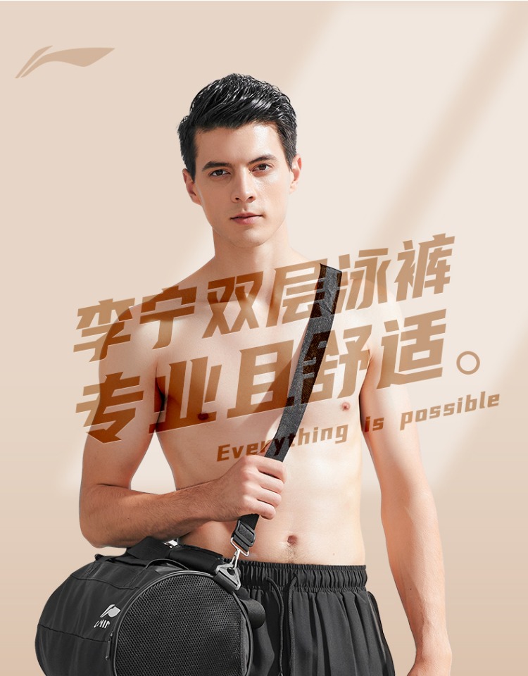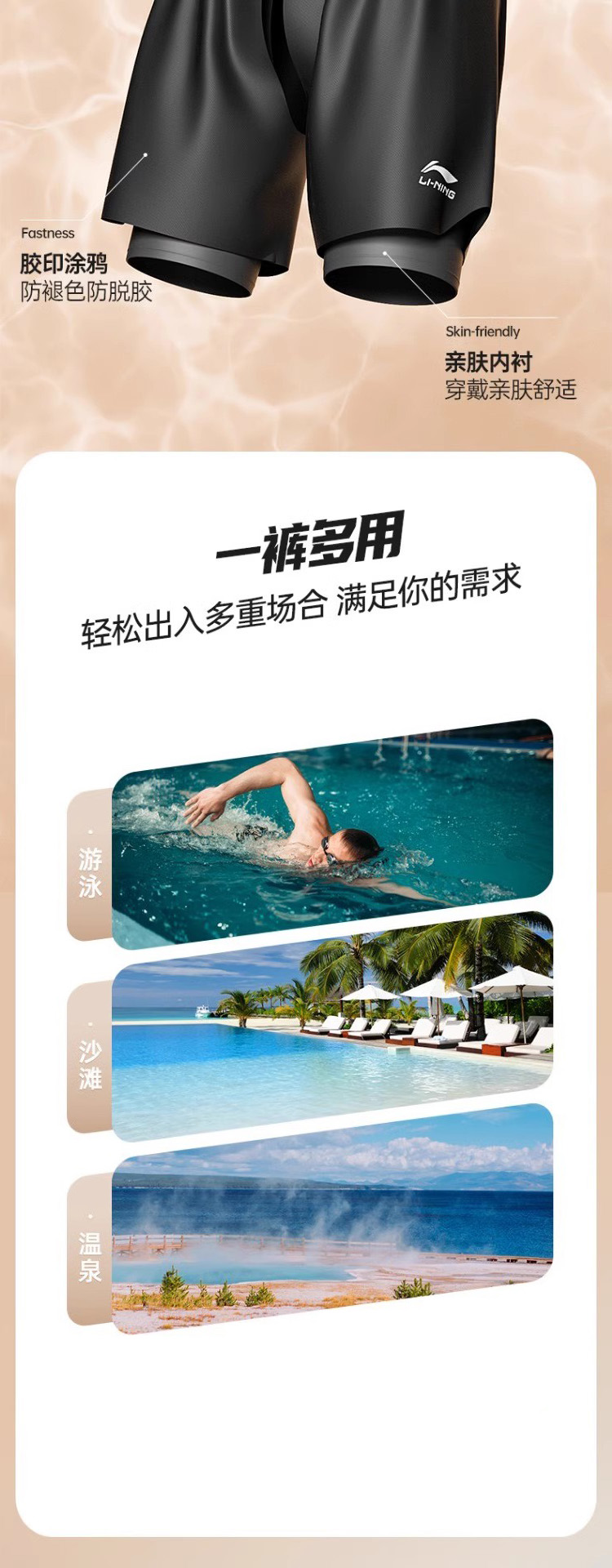 Li-Ning Swimming Trunks, Swimming Cap, and Swimming Goggles Three-Piece Set for Men, Complete Adult Anti-Embarrassment Hot Spring Swimwear, Men's Swimming Trunks