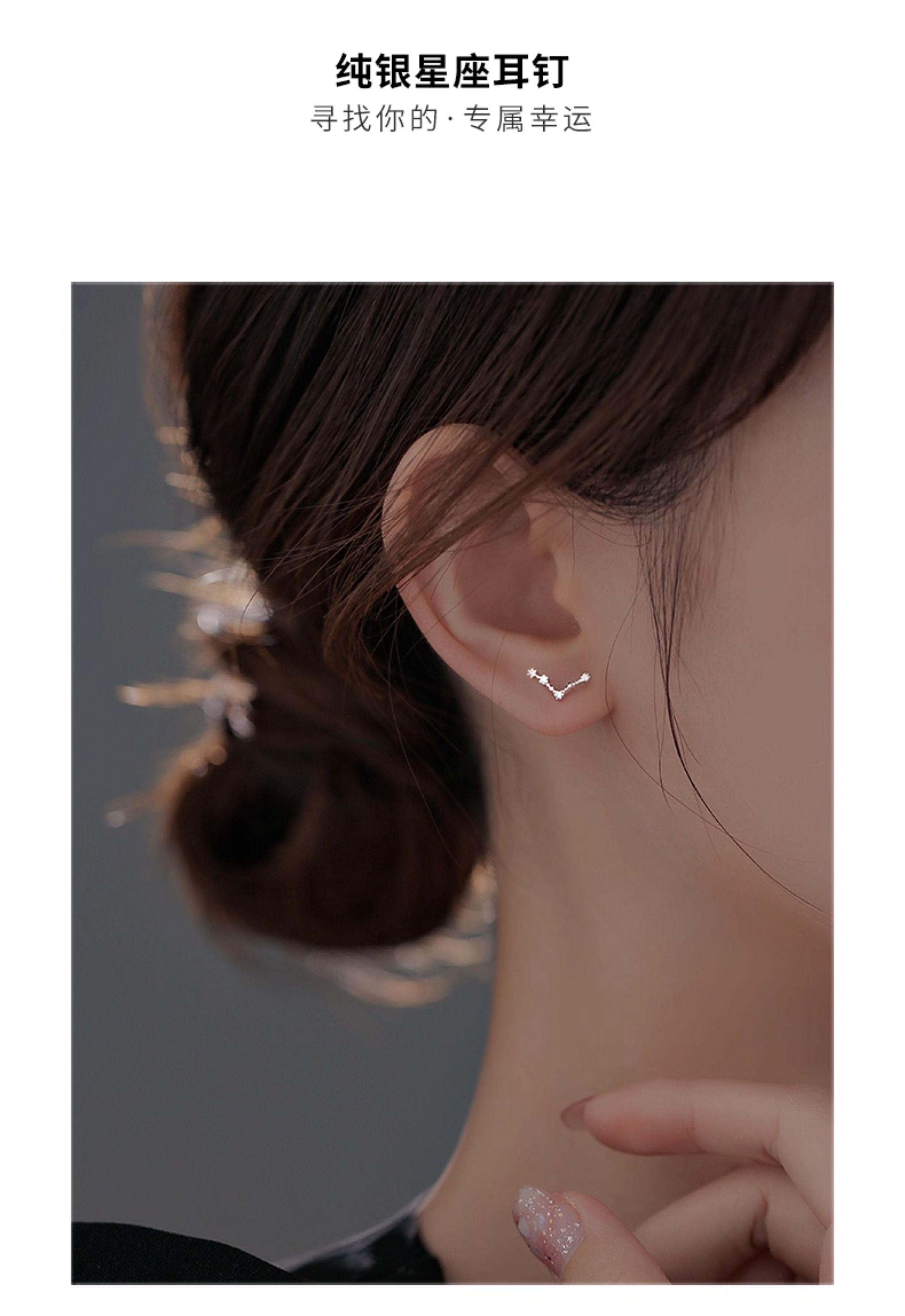 999 Pure Silver Twelve Zodiac Sign Earrings for Women, Ear Piercing Earrings, 2025 New Niche Design High-End Earrings
