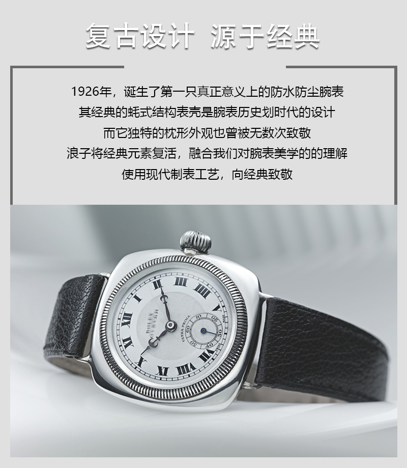 Reproduction of the 1926 Oyster Antique Chasing the Wind Model, Similar to Shen Tung-Nan'S, with a Roman Dial, 4037 Pillow-Shaped Case, Small Seconds, Vintage Watch