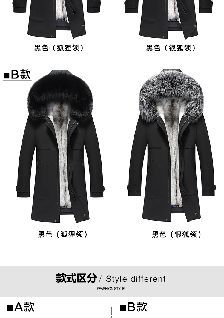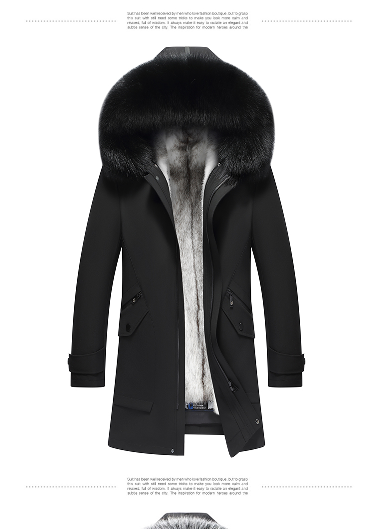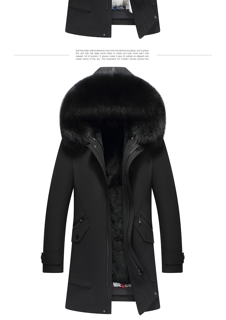 2025 New Winter Whole Mink Fur Integrated Parka Men's Mid-Length Fur Mink Lining Coat Jacket