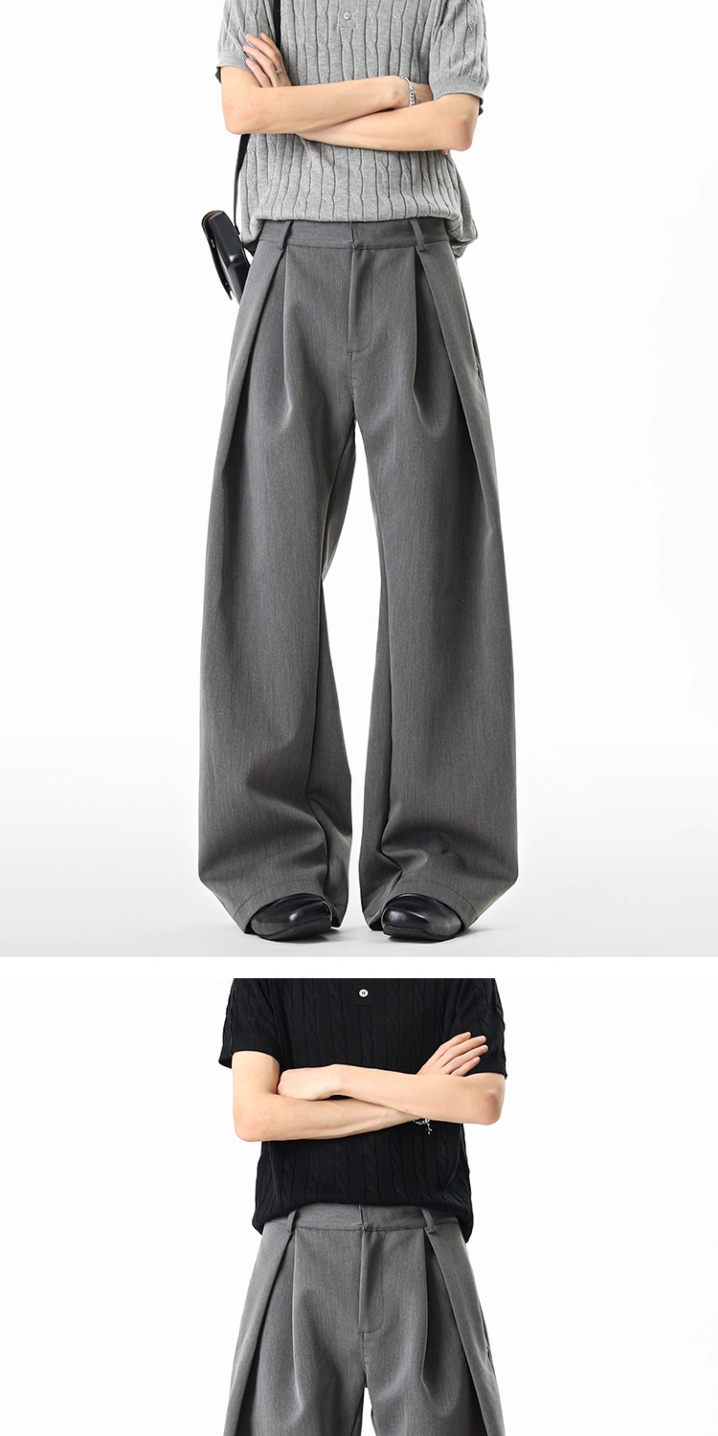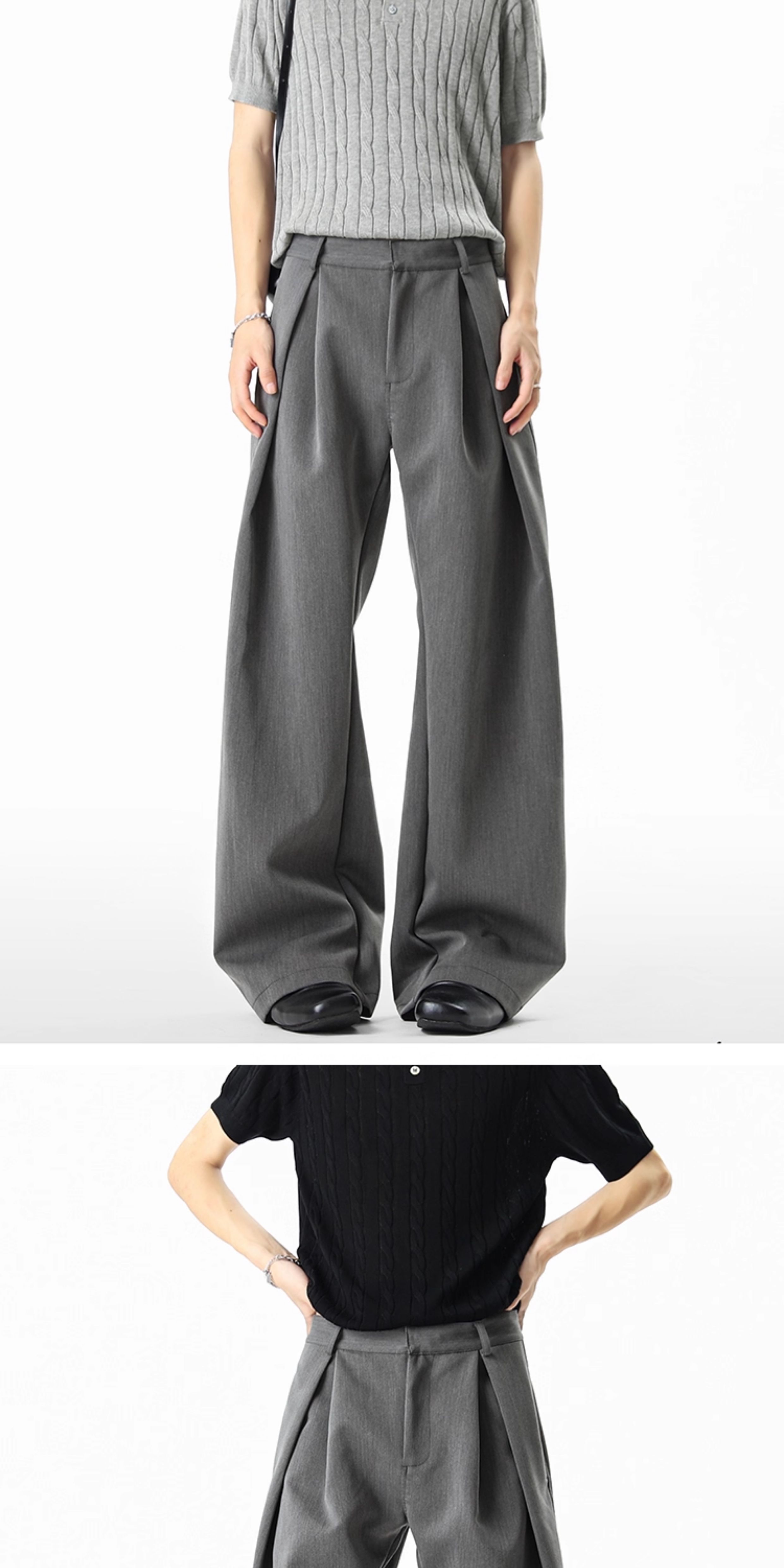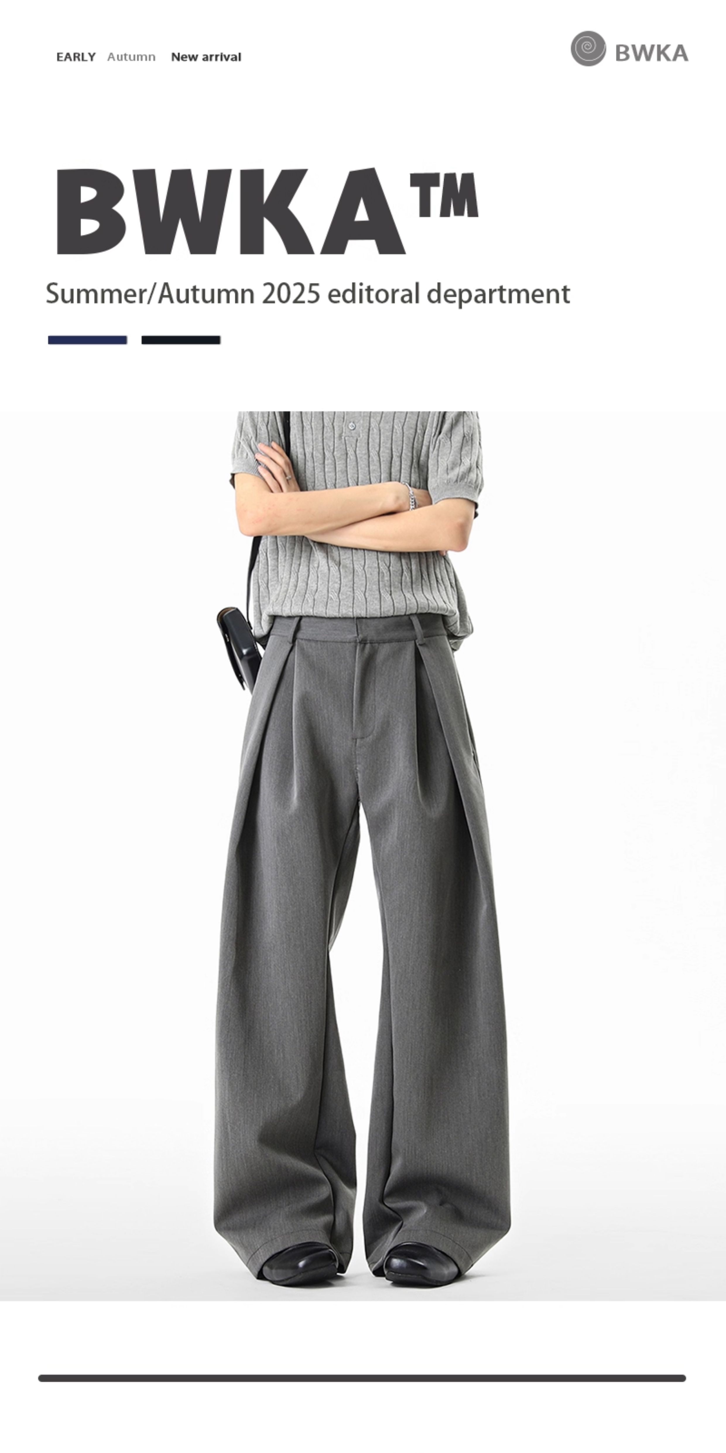American-Style Three-Dimensional Pleated Knife-Cut Trousers for Women, Autumn A-Line Silhouette, Commuting Casual Pants, High-End Slimming Wide-Leg Pants