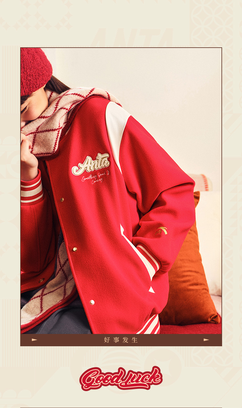 [Same Style as Guan Xiaotong] Anta Good Things Happen | Women's Baseball Jacket Coat Top 162518727S
