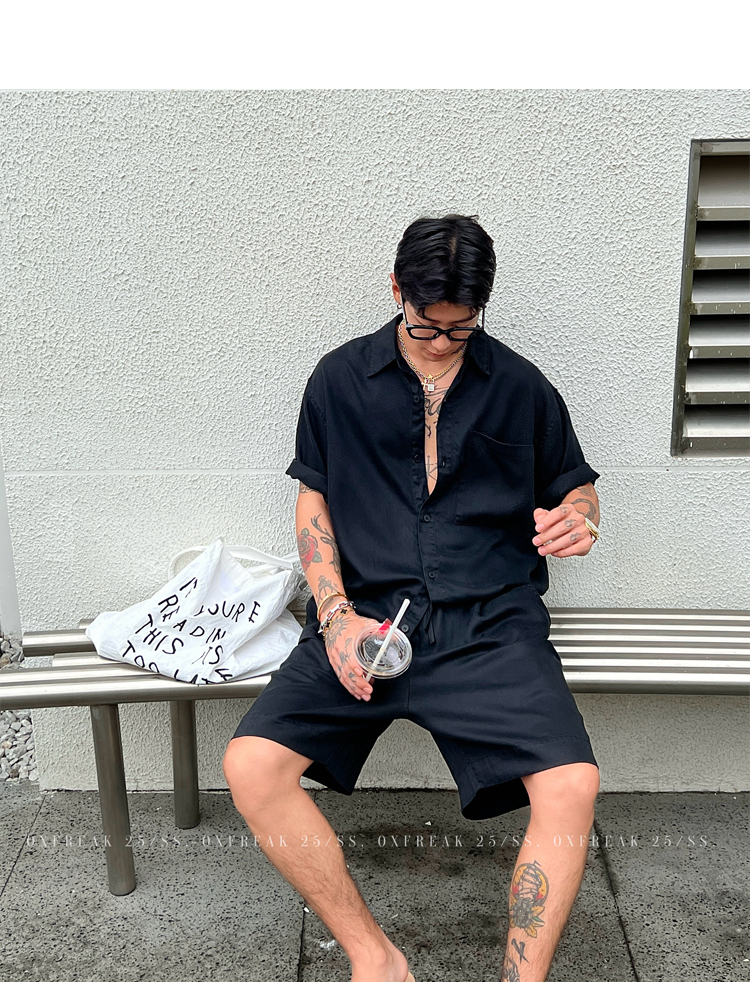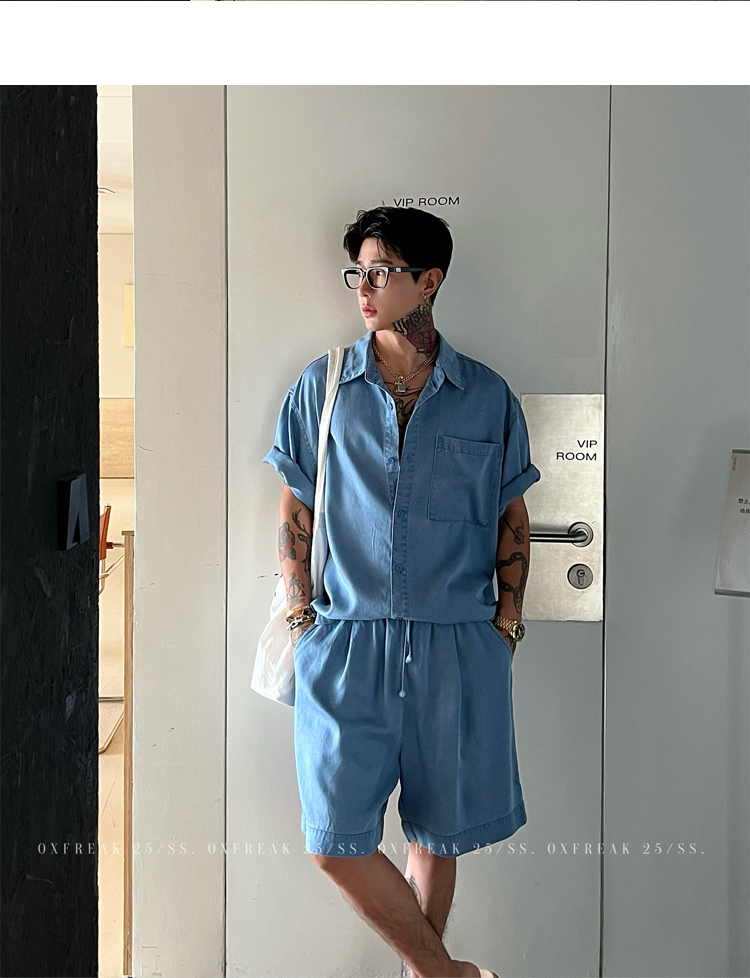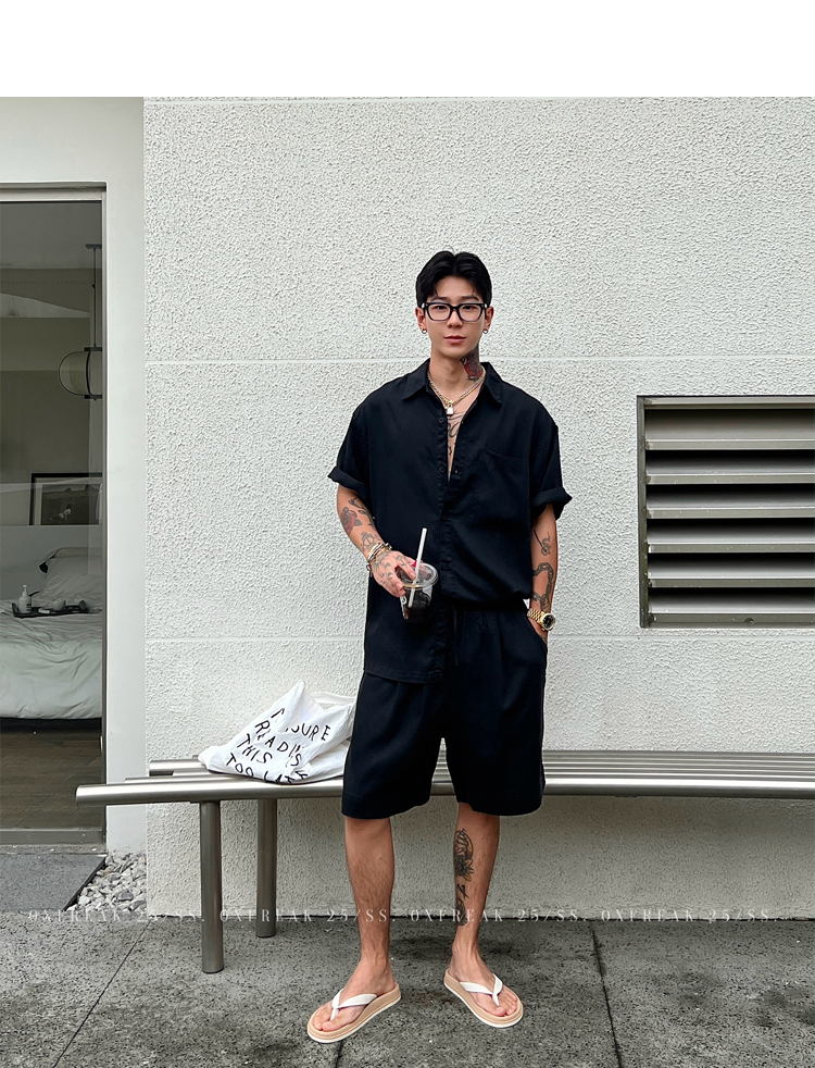 Oxfreak'Lyocell Tencel' Draped Smooth Solid Color Shorts for Men, Summer Thin Loose Straight Mid-Length Pants