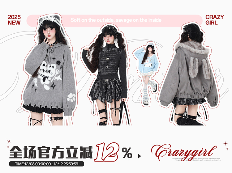 Crazygirl Cute Cat Ear Strap Hooded Niche Loose Design Sweatshirt Zipper Jacket Autumn