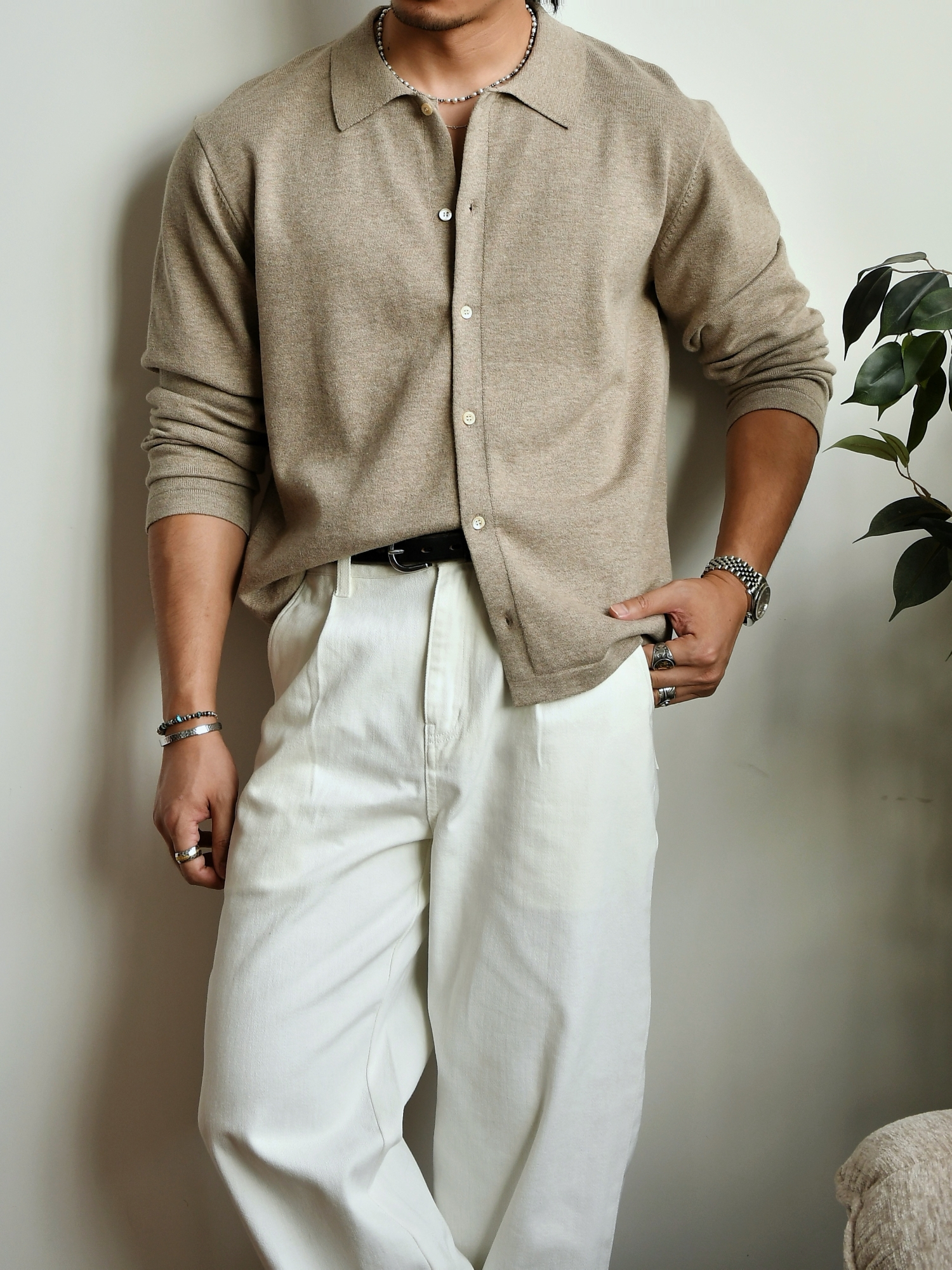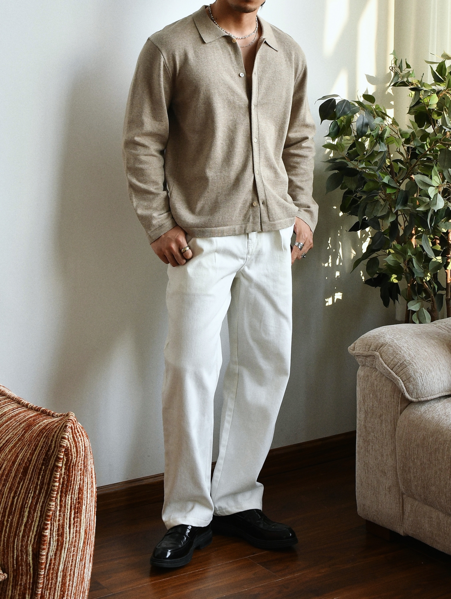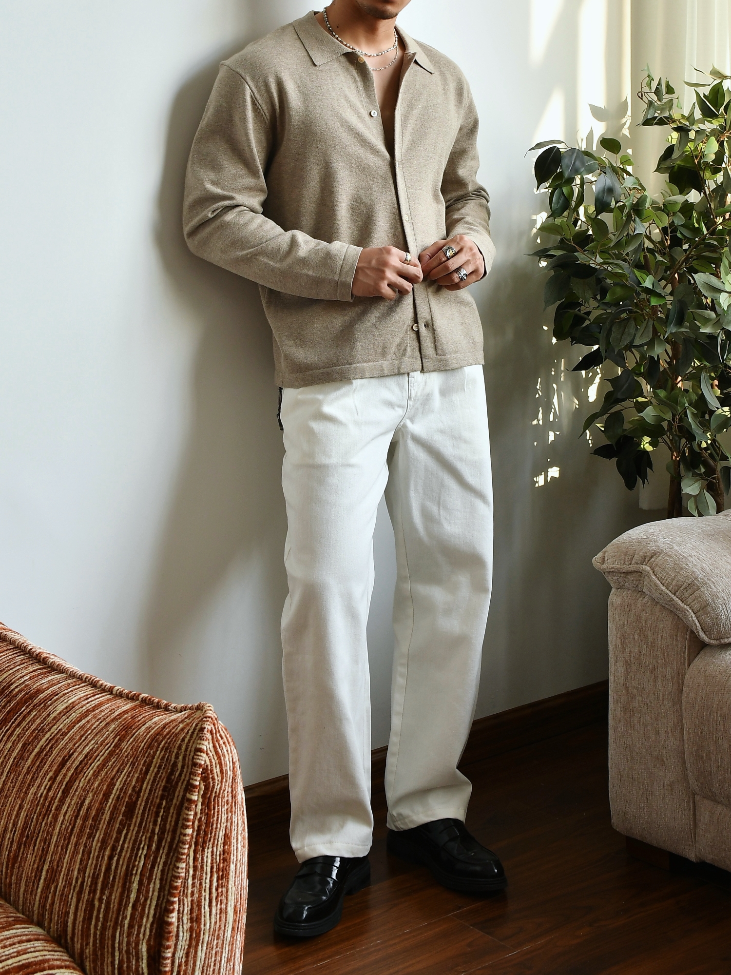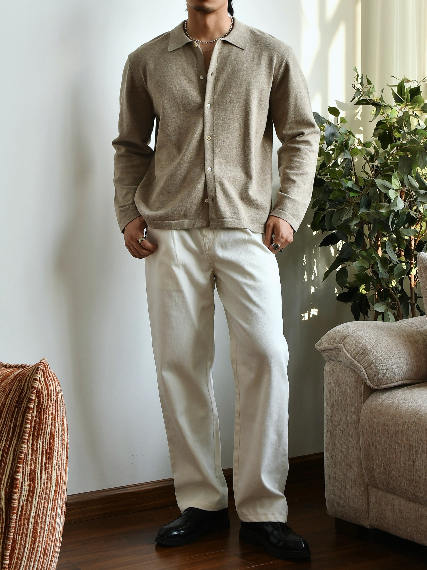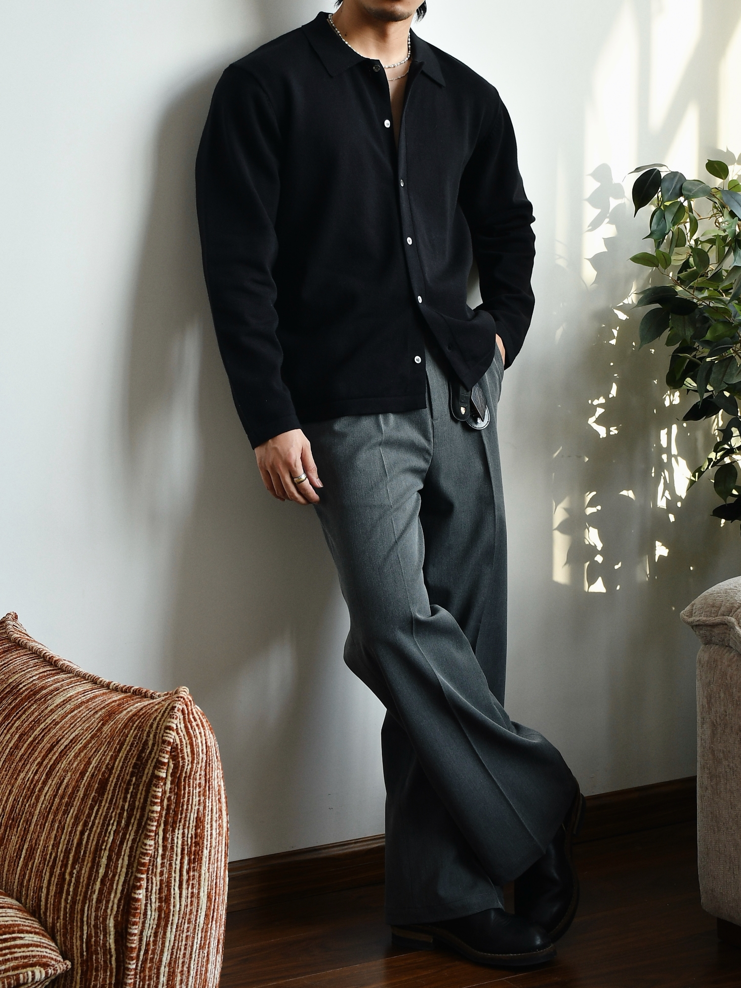 Chaimi Cotton Knitted Long-Sleeved Shirt Casual Business Men's American Retro Autumn New Cardigan Top Jacket