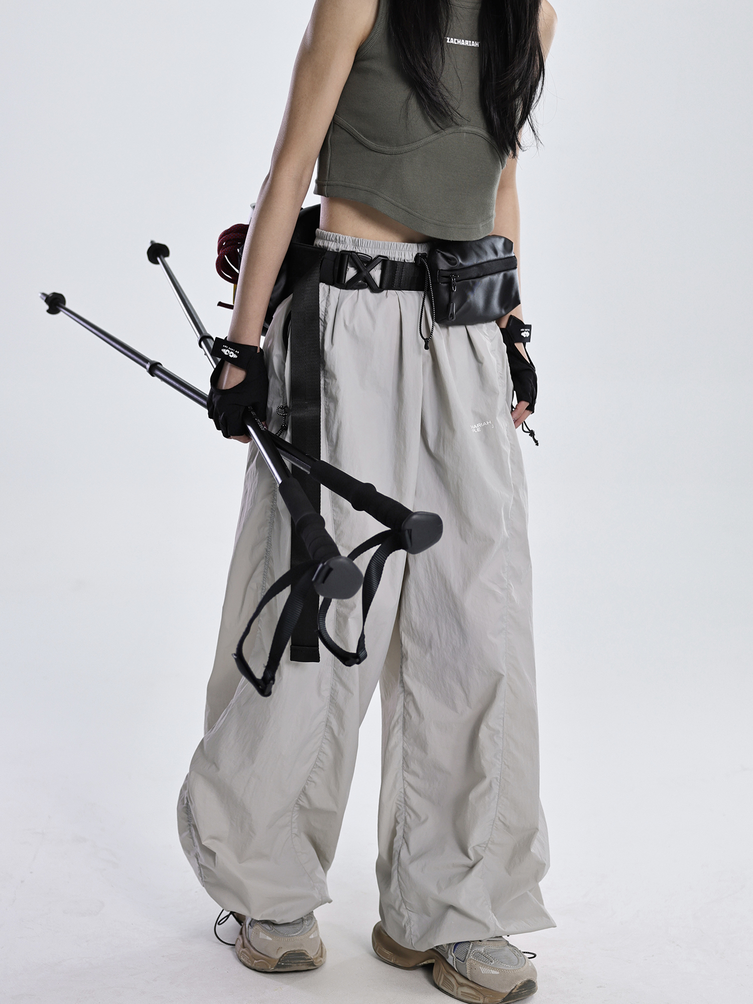Zachairah【Grass Ash】Camping and Travel Quick-Drying Paratrooper Pants, Lightweight, Breathable, Adjustable Casual Long Pants