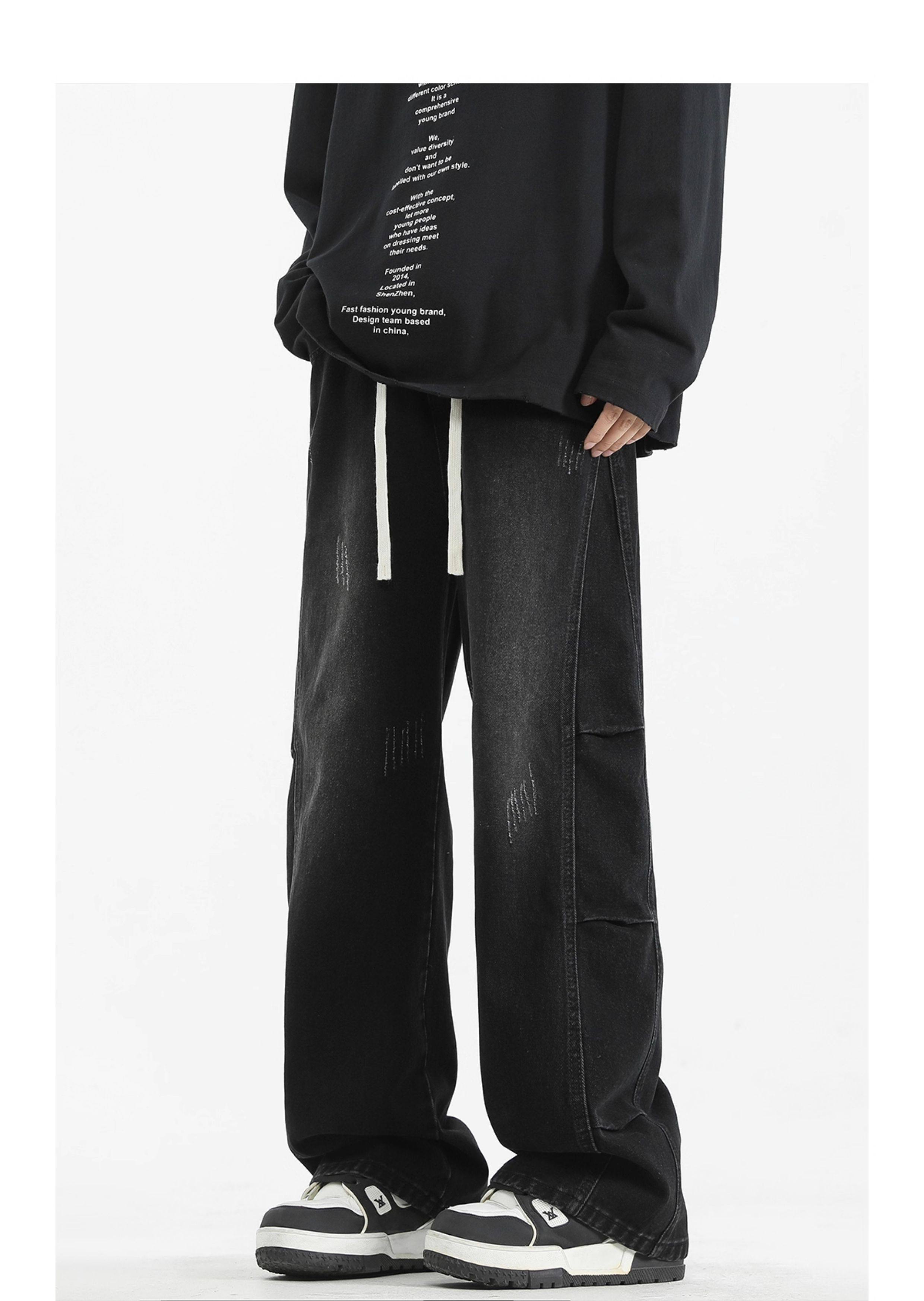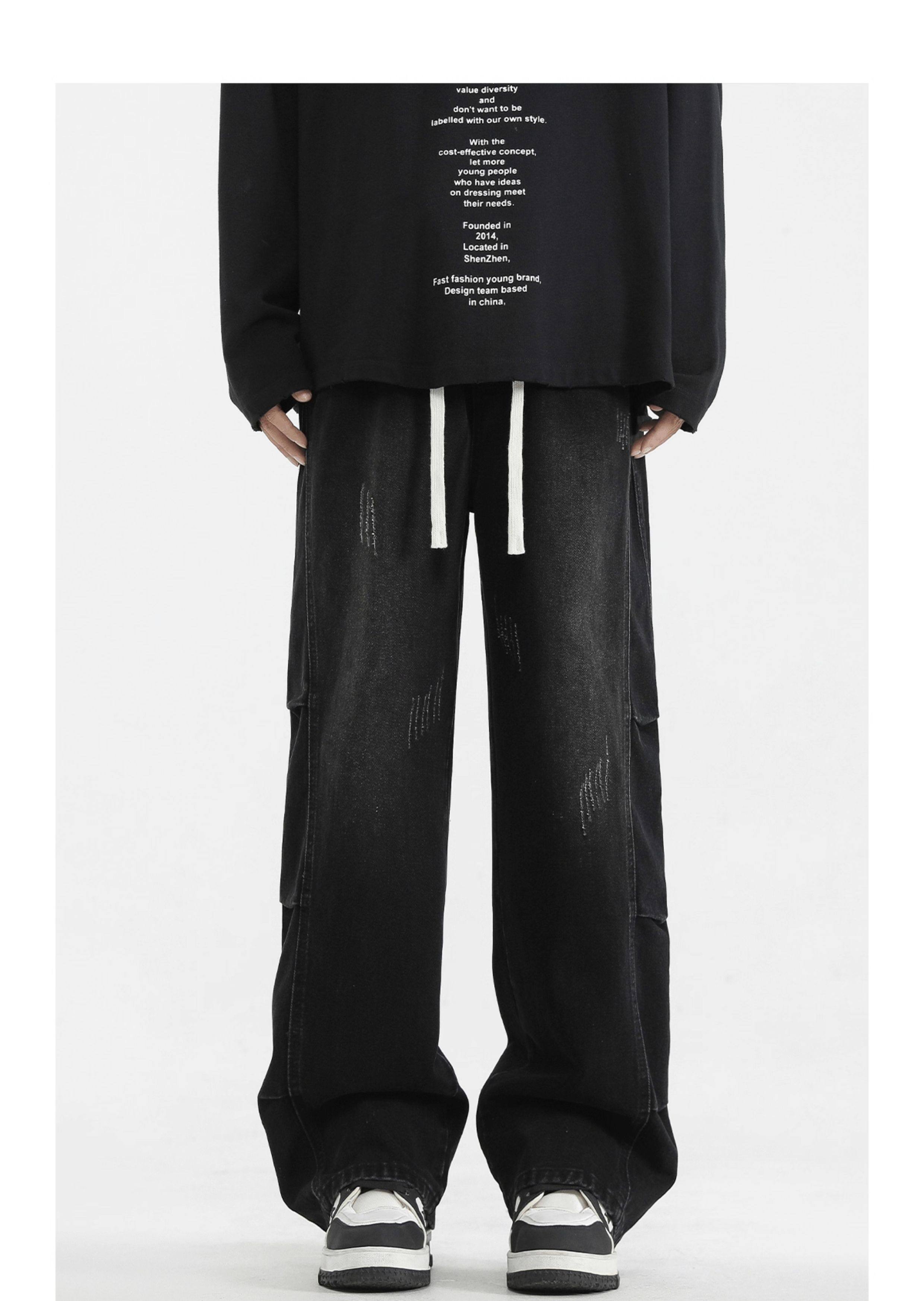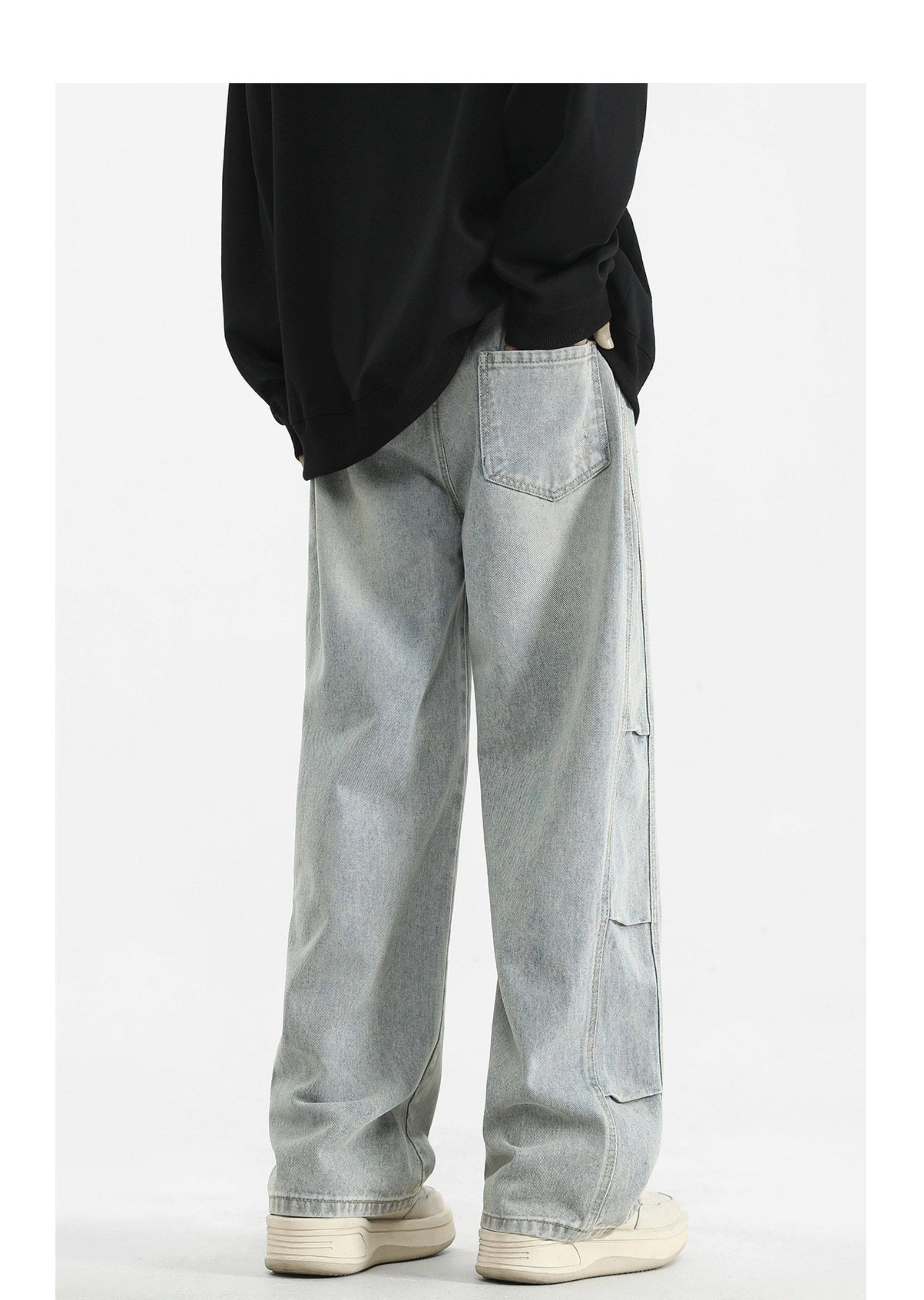 Men's Black American-Style Loose Casual Pants, Workwear Straight-Leg Jeans for Autumn and Winter