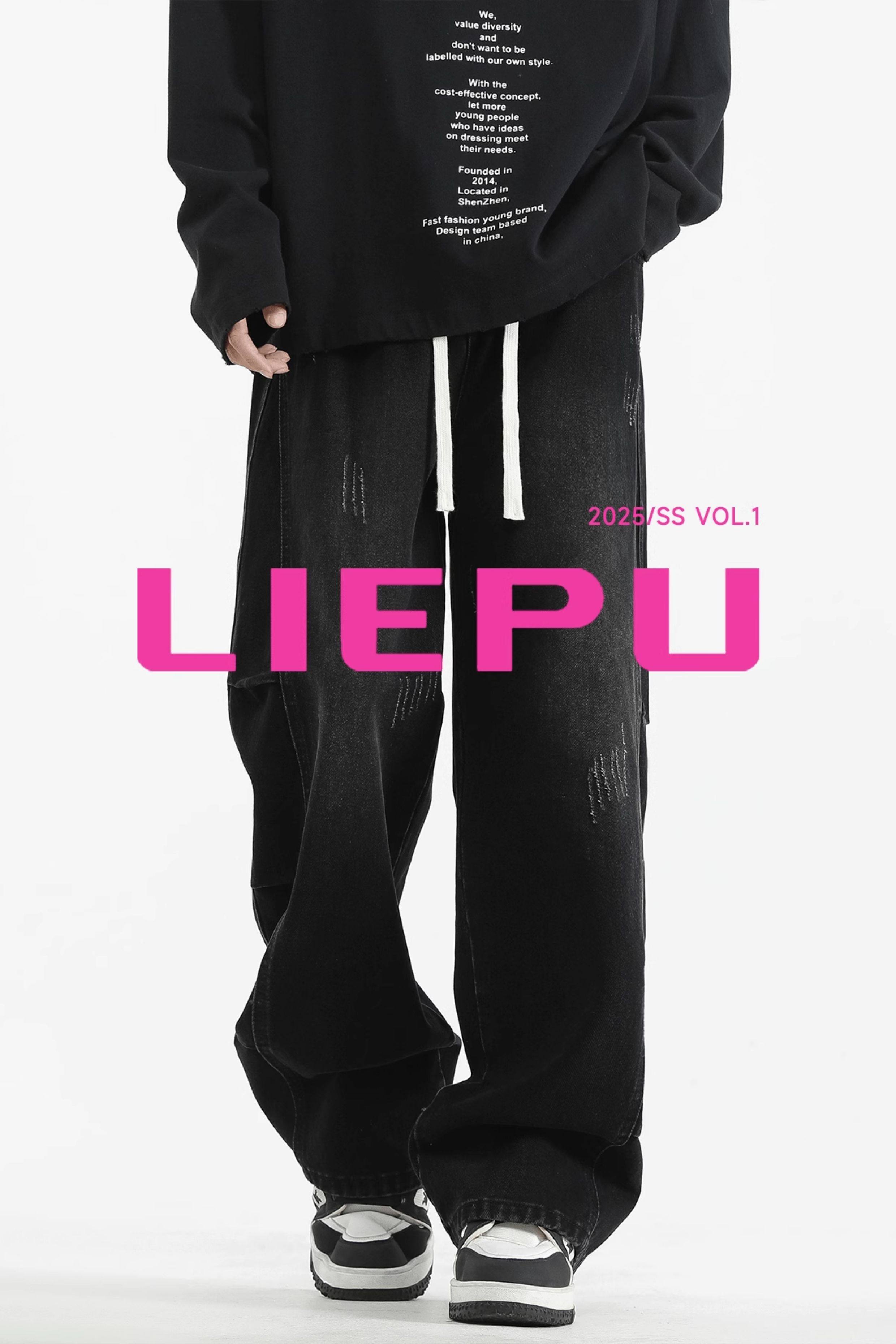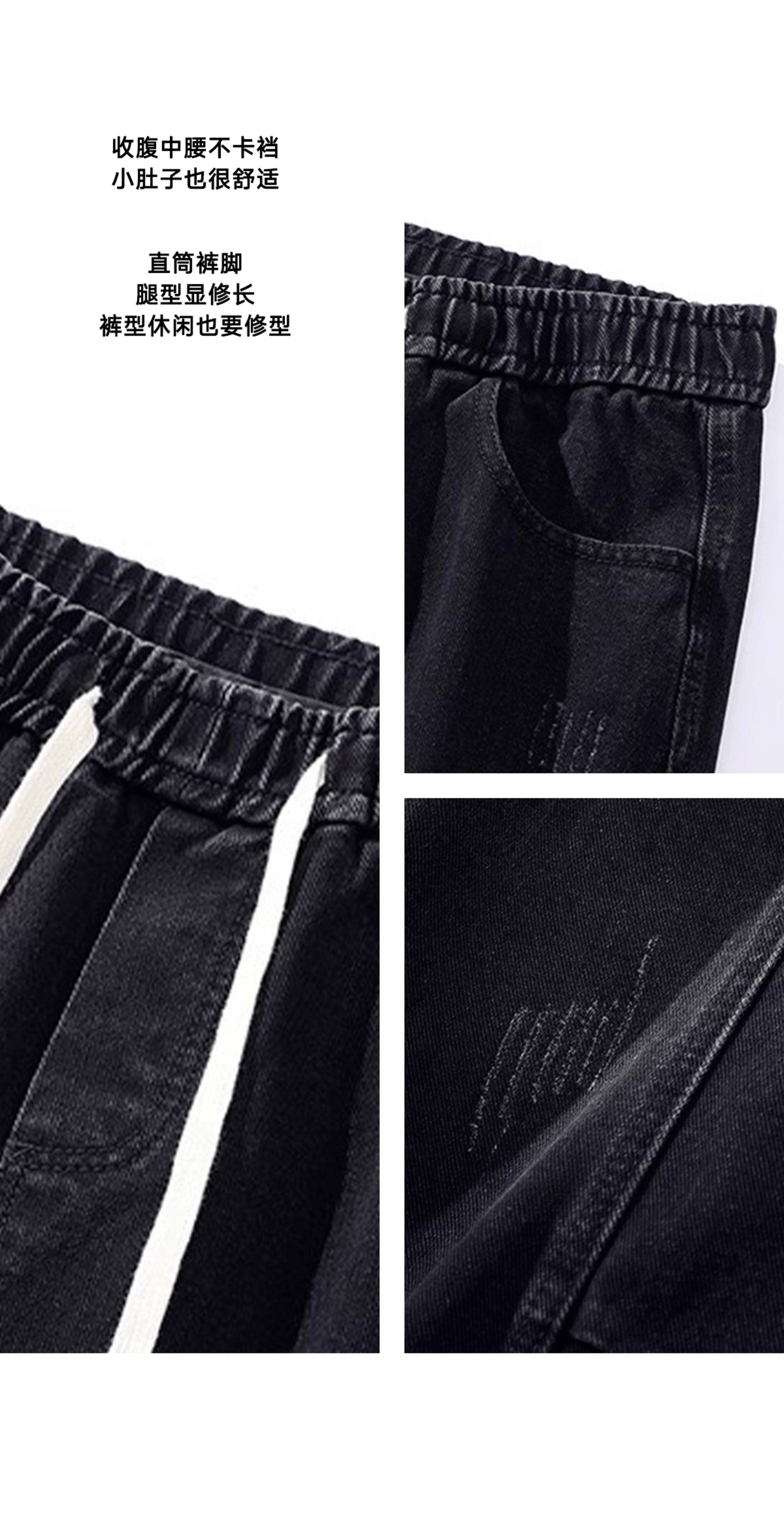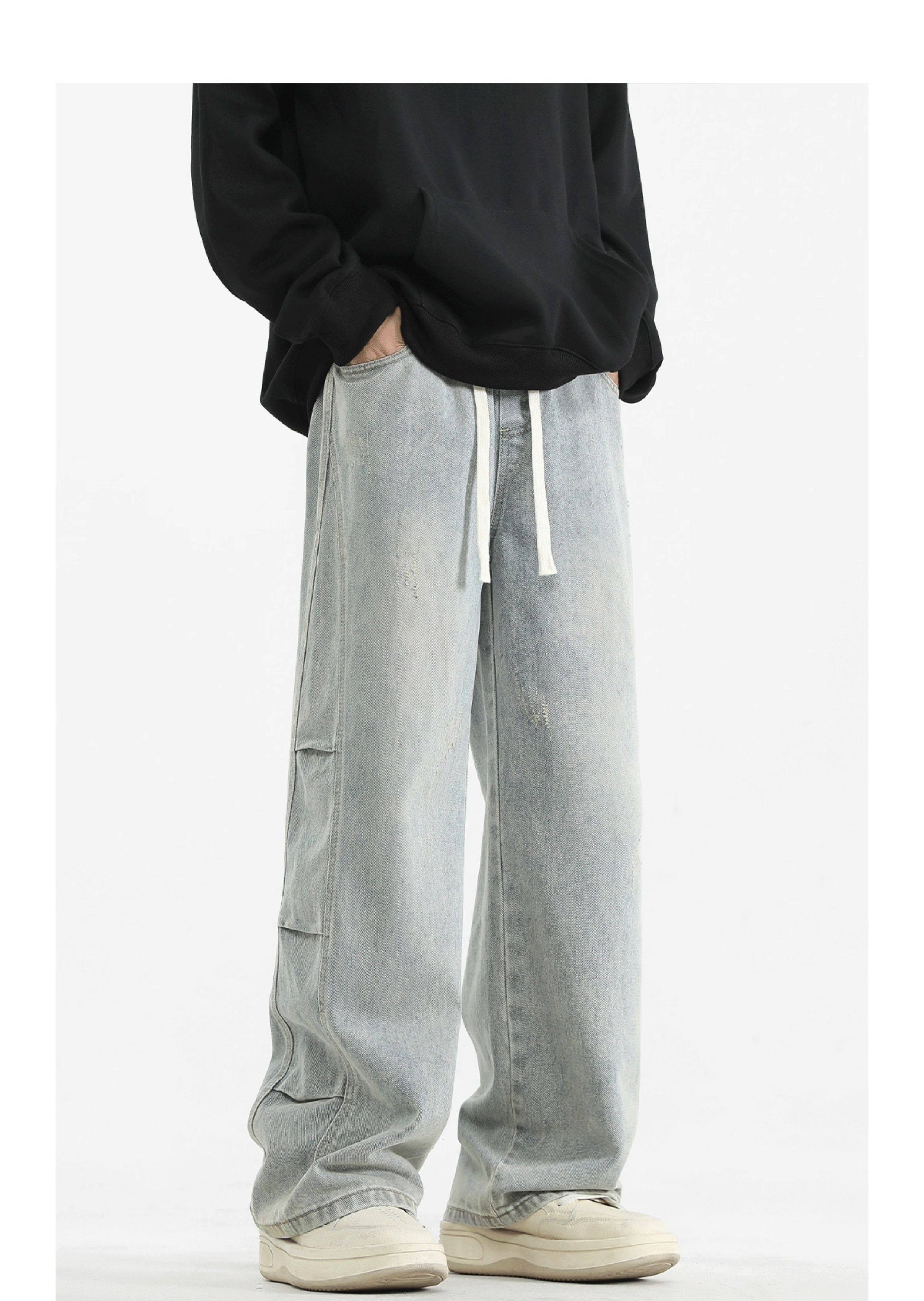 Men's Black American-Style Loose Casual Pants, Workwear Straight-Leg Jeans for Autumn and Winter