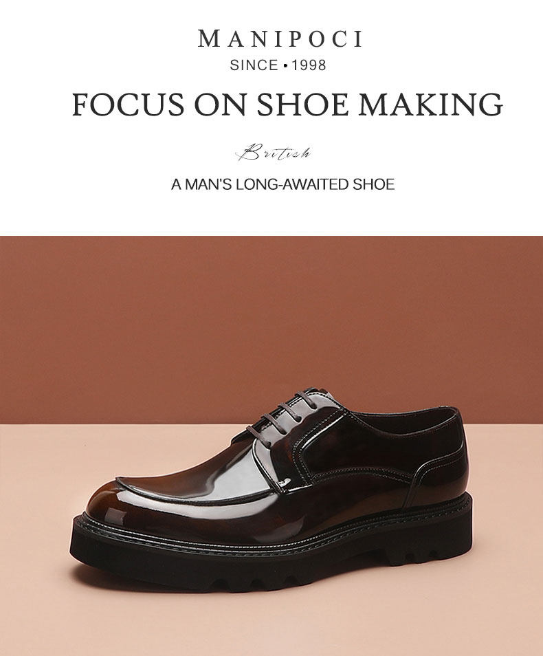 Men's Leather Shoes, Business Formal Round-Toe Derby Shoes, Handmade Genuine Leather British Wedding Shoes, Soft-Soled Men's Shoes, Casual and Versatile