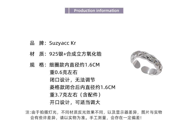 Suzyacc Kr Niche Design Sterling Silver Diamond-Encrusted Ring Accessible Luxury Elegant High-End Index Finger Ring for Women