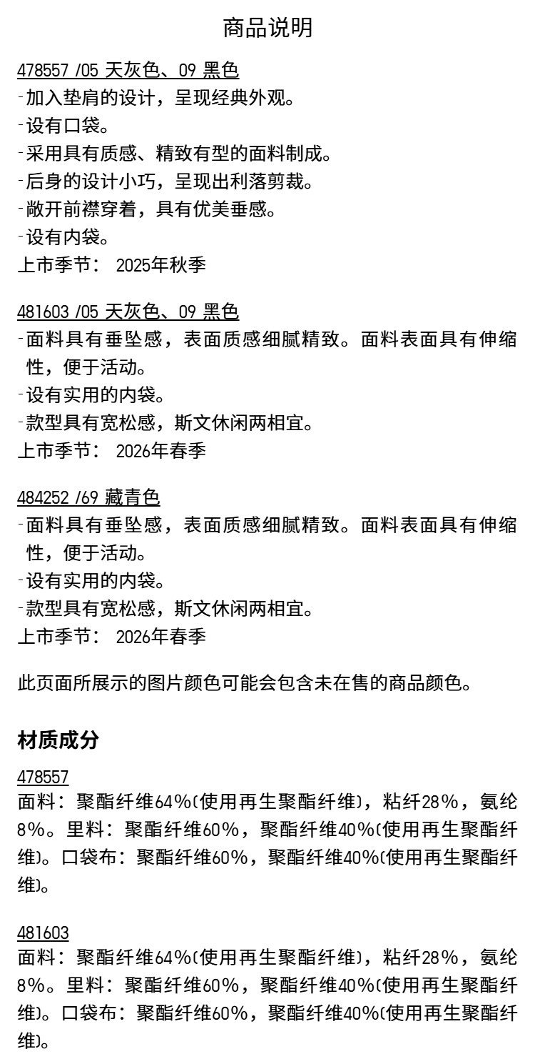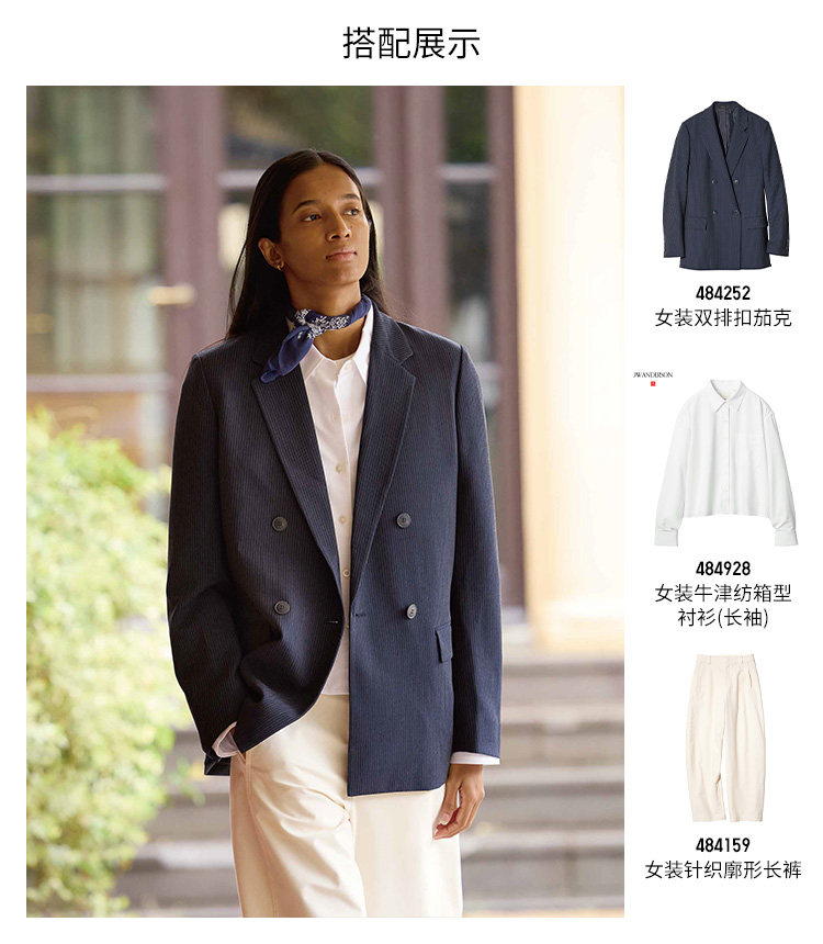 Uniqlo Women's Double-Breasted Jacket/Coat Commuter Business Jacket 25 Autumn and Winter New Style 481603 484252