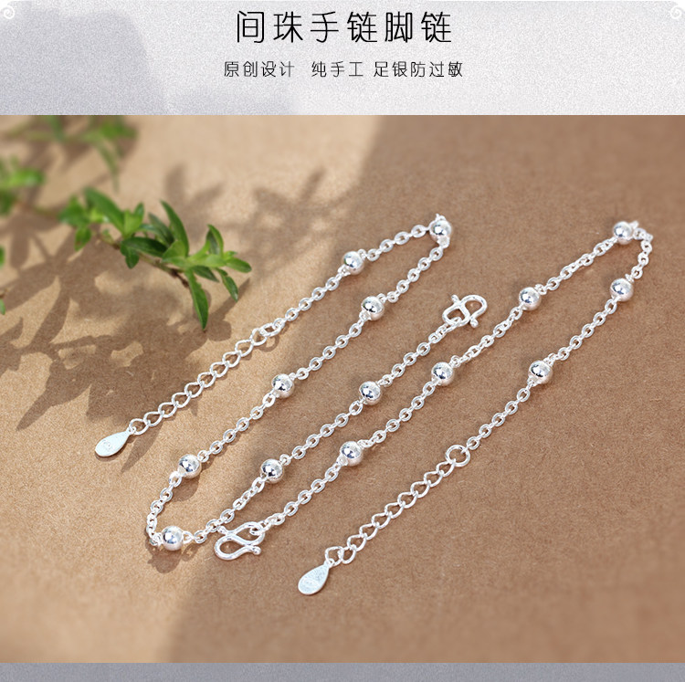 Beginner's Mind | Bracelet for Women, Pure Silver, Youthful Style, Small Round Beads, Vintage, Simple, Student, Best Friend, 99% Pure Silver, Niche Original Design.