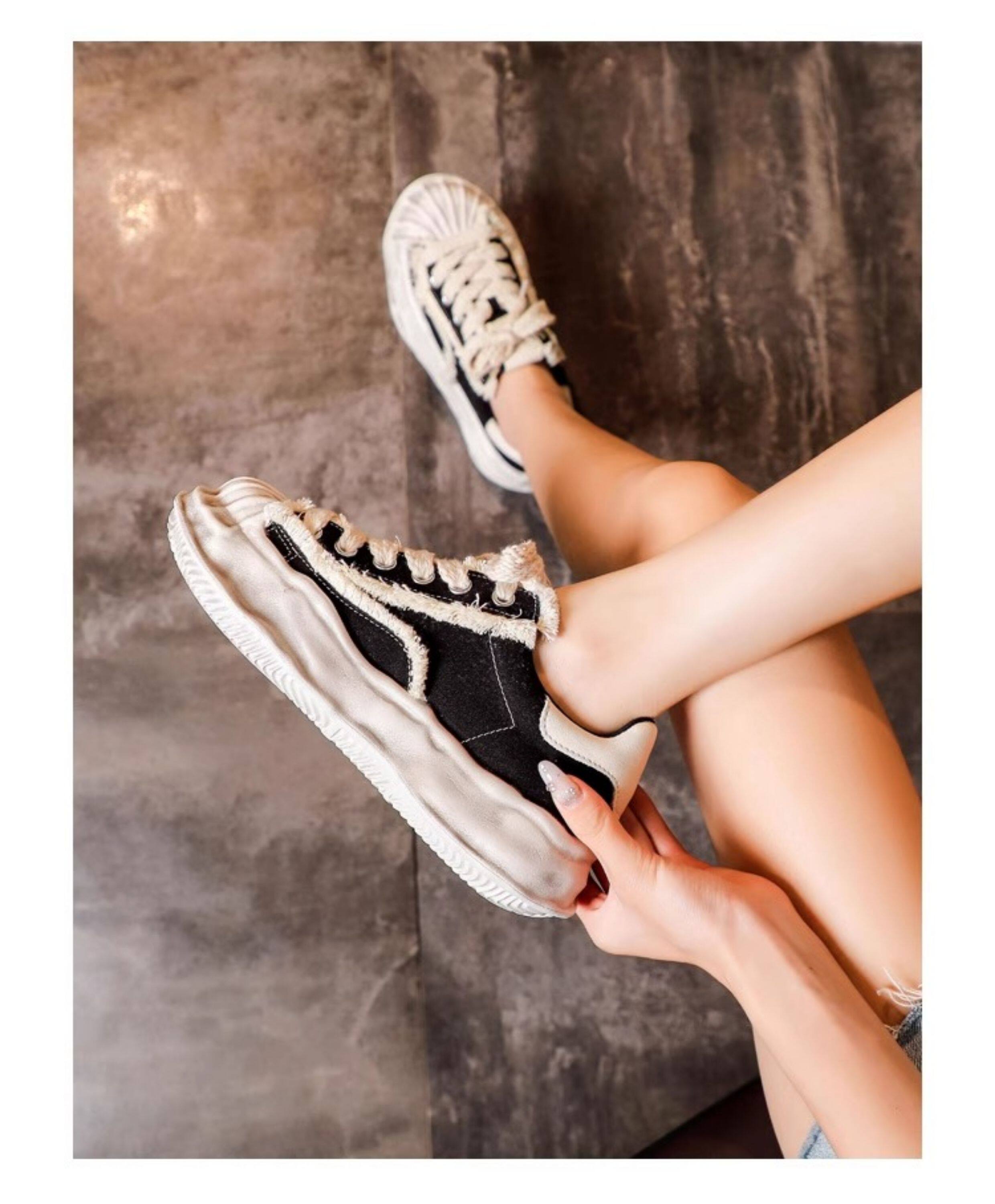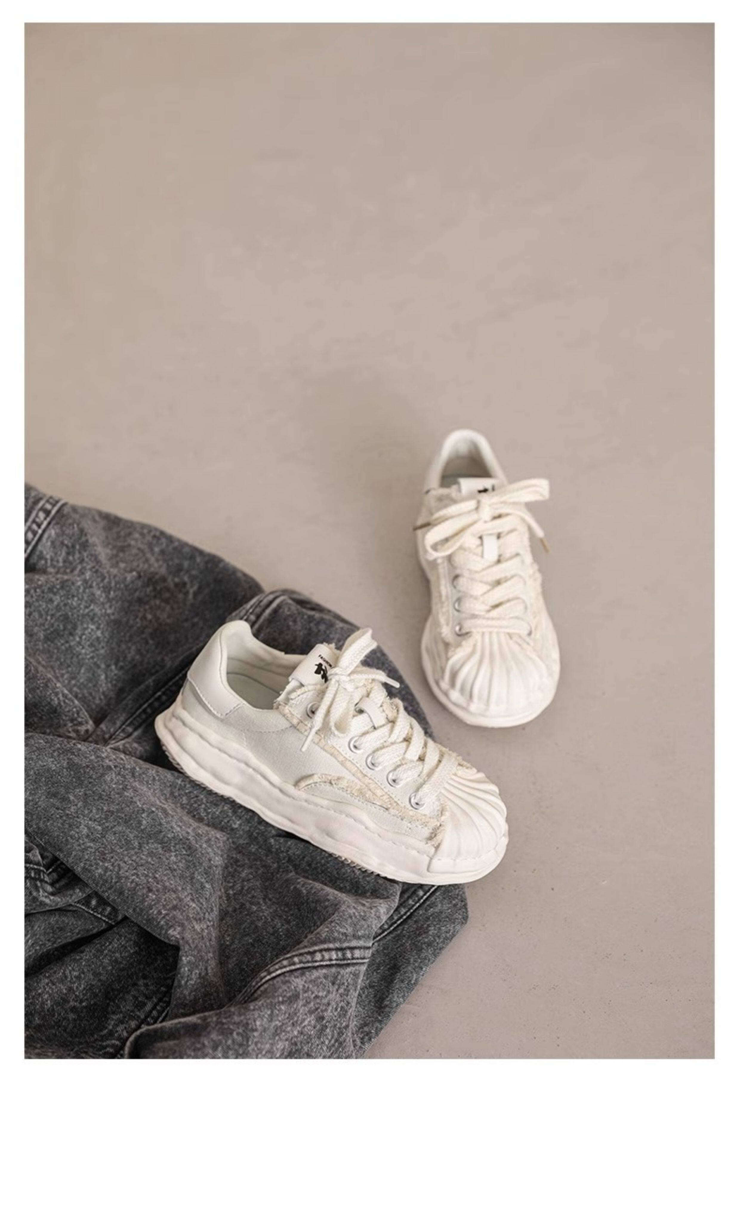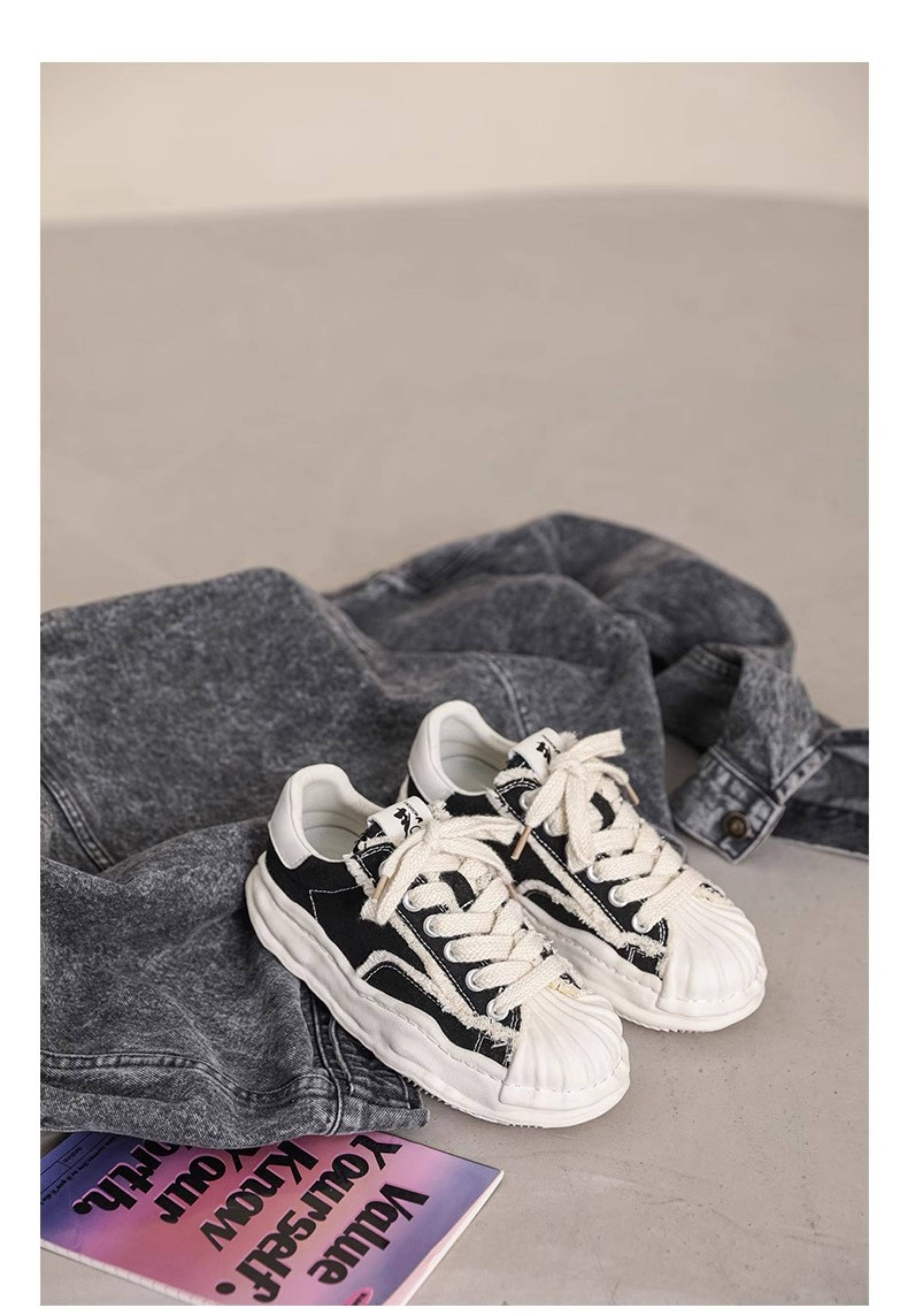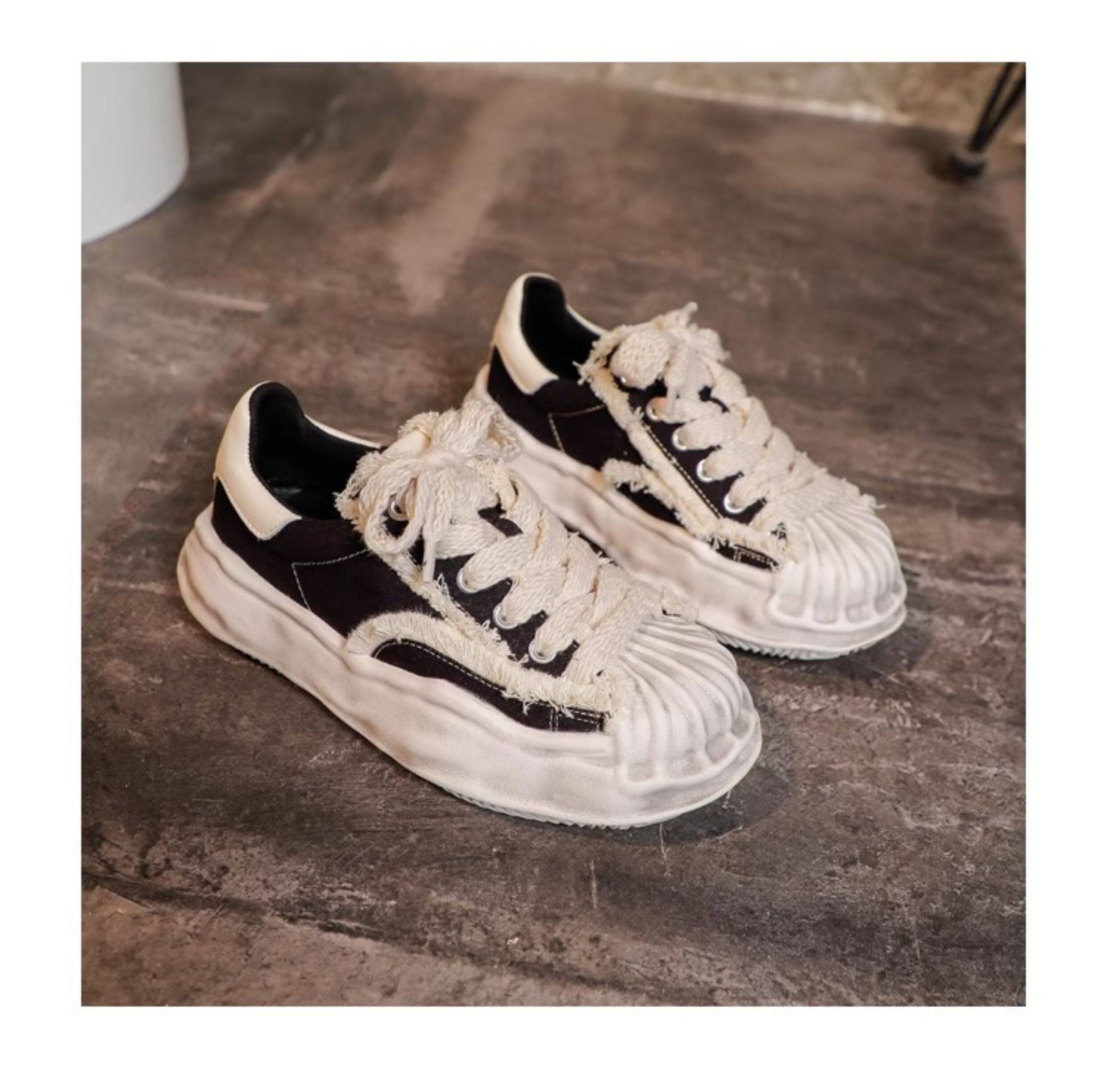 Hong Kong Retro Distressed Canvas Shoes for Women, 2025 Spring and Autumn New Thick-Soled Versatile Casual Shell Toe Shoes