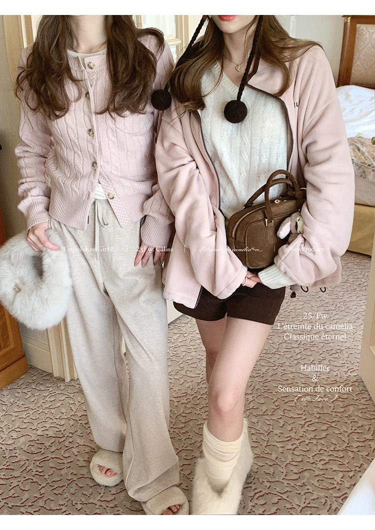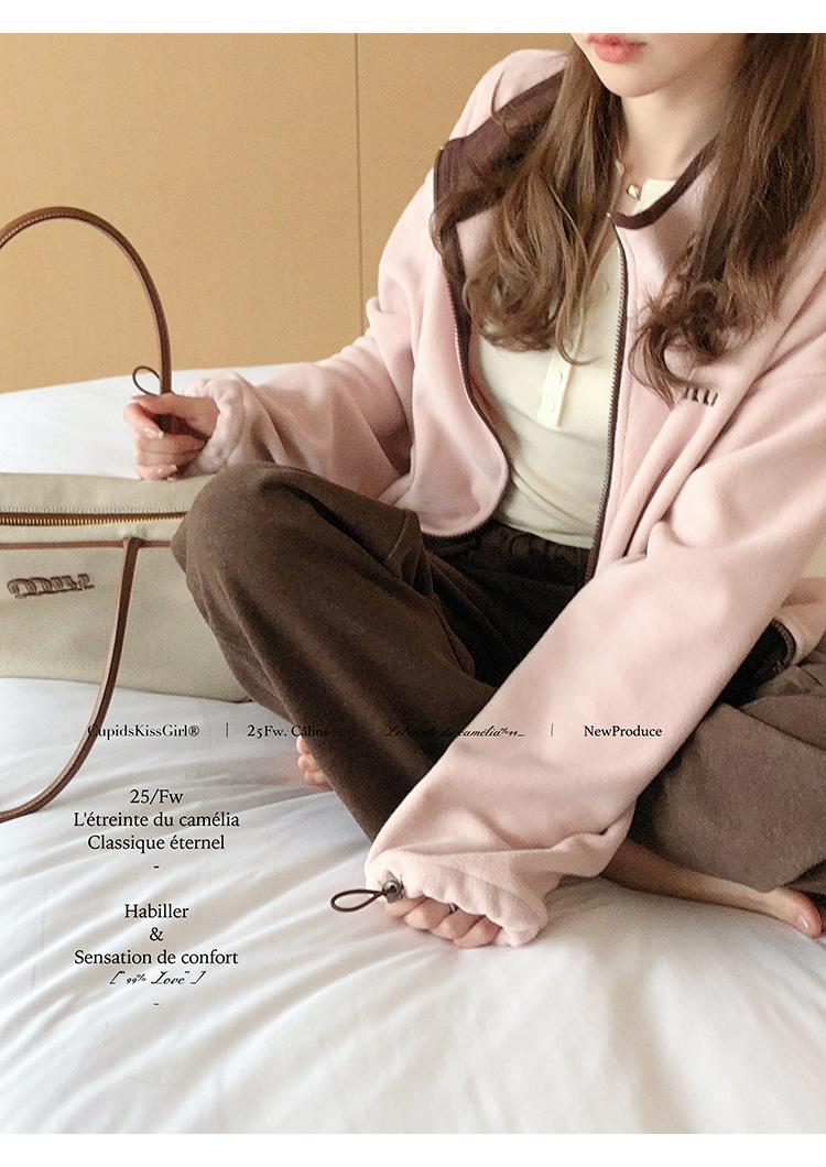 深巧和牛奶这两个颜色面料更厚重,粉色更软薄
