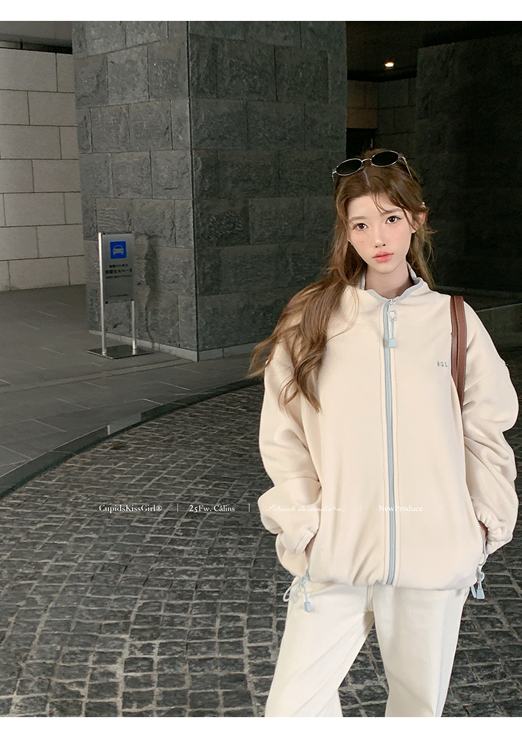 下摆和袖口都有牛筋抽绳的设计